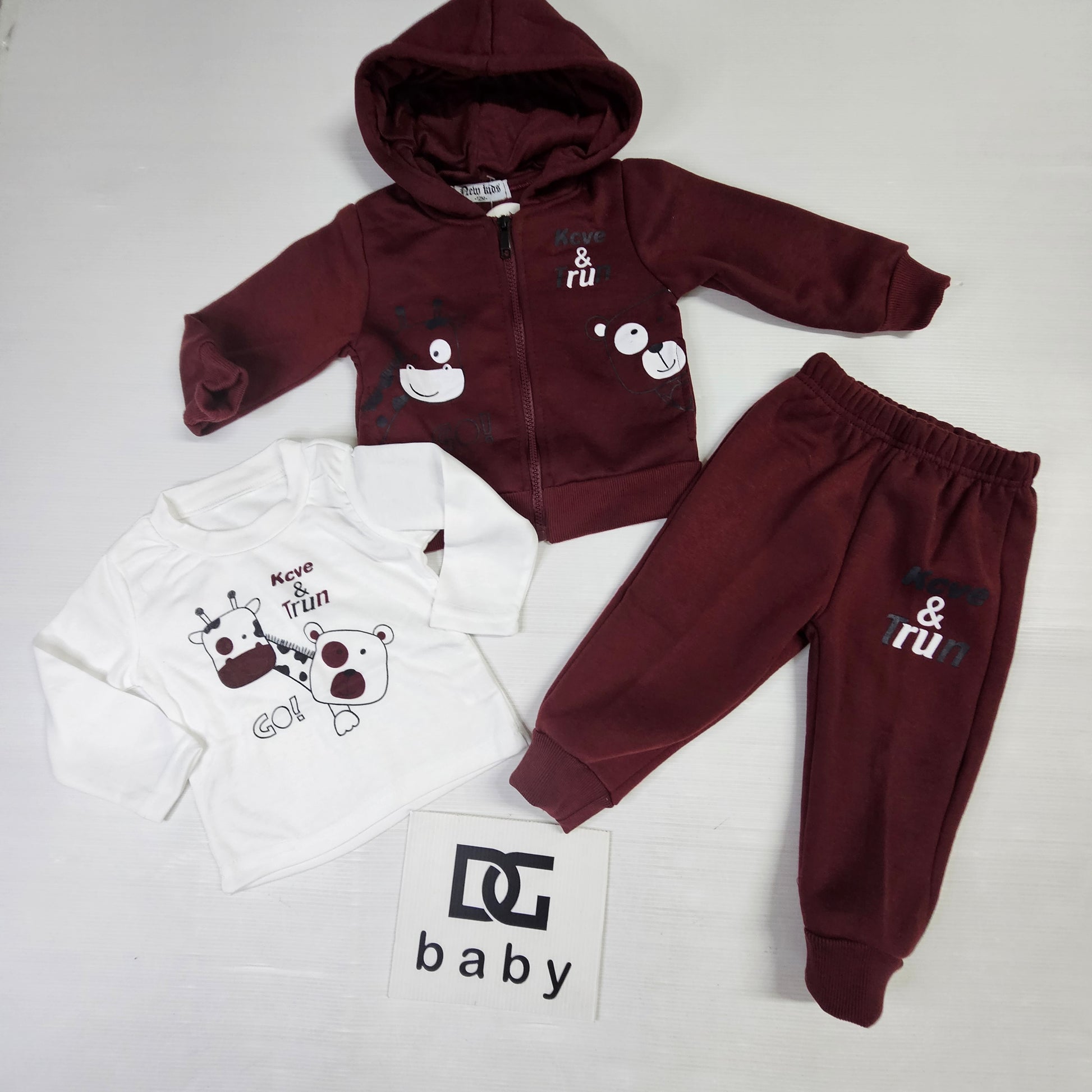 Felpa con cappuccio + t-shirt manica lunga caldo cotone abbinata + pantatuta morbido.