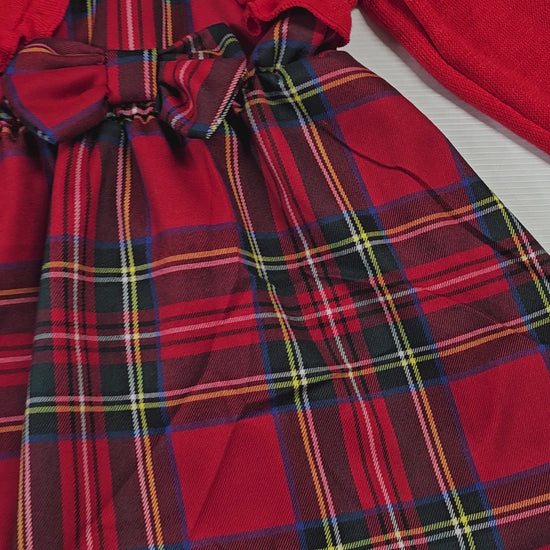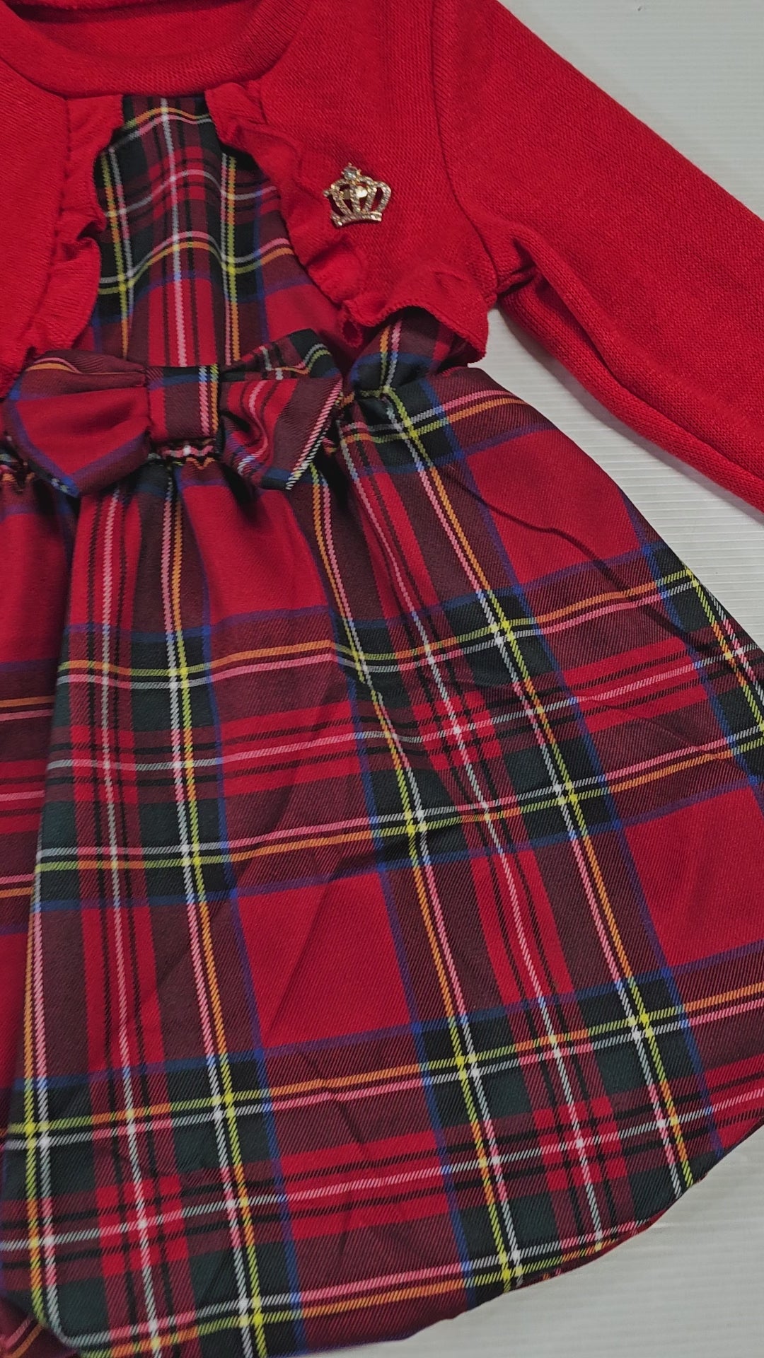 Elegante vestitino unico (3–8 anni) con finto coprispalle in maglia rosso incorporato. La gonna in fantasia tartan scozzese è arricchita da un delizioso fiocco centrale, creando un look raffinato e perfetto per feste, cerimonie e il periodo natalizio. Morbido, comodo e irresistibilmente chic!