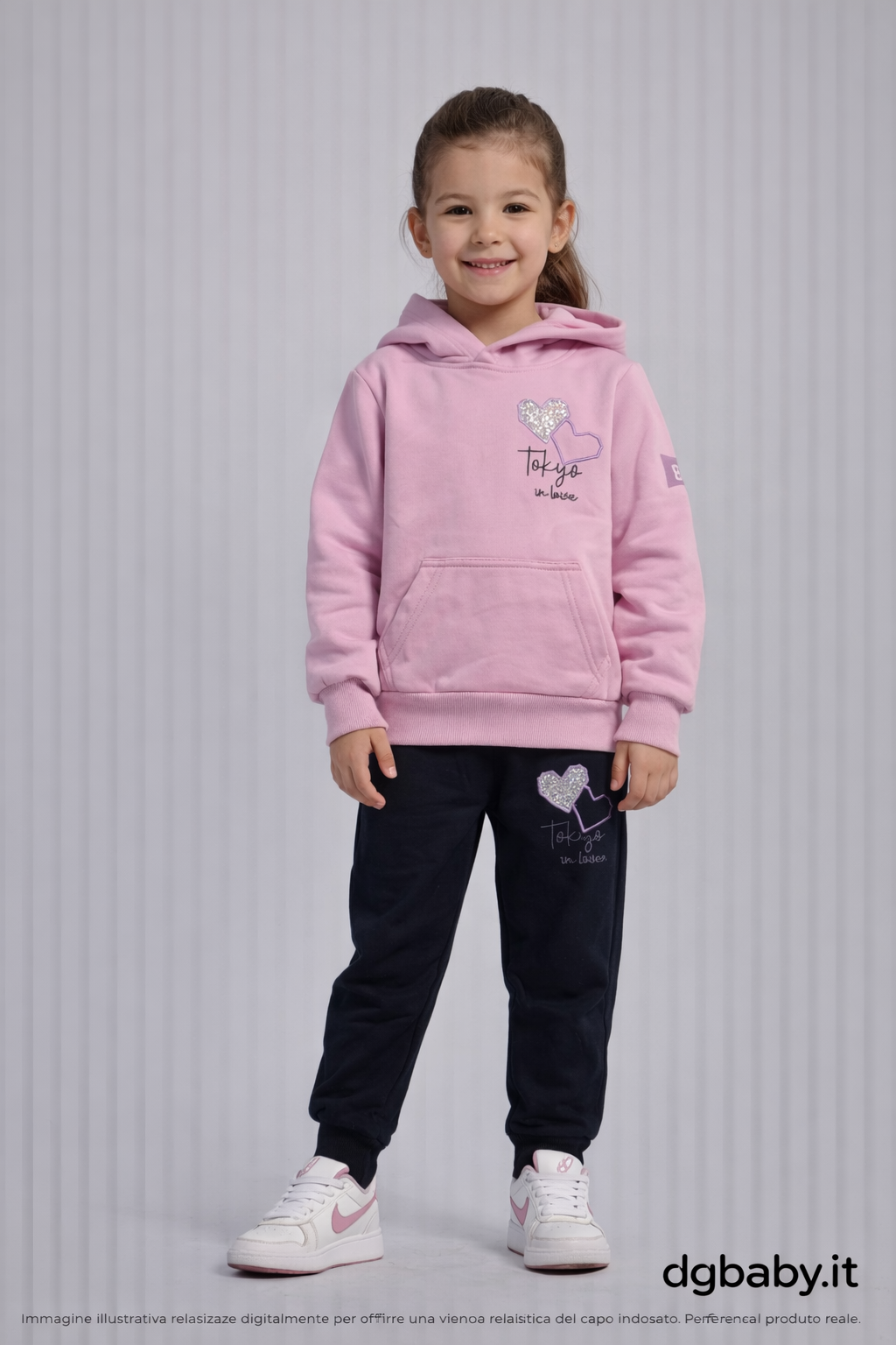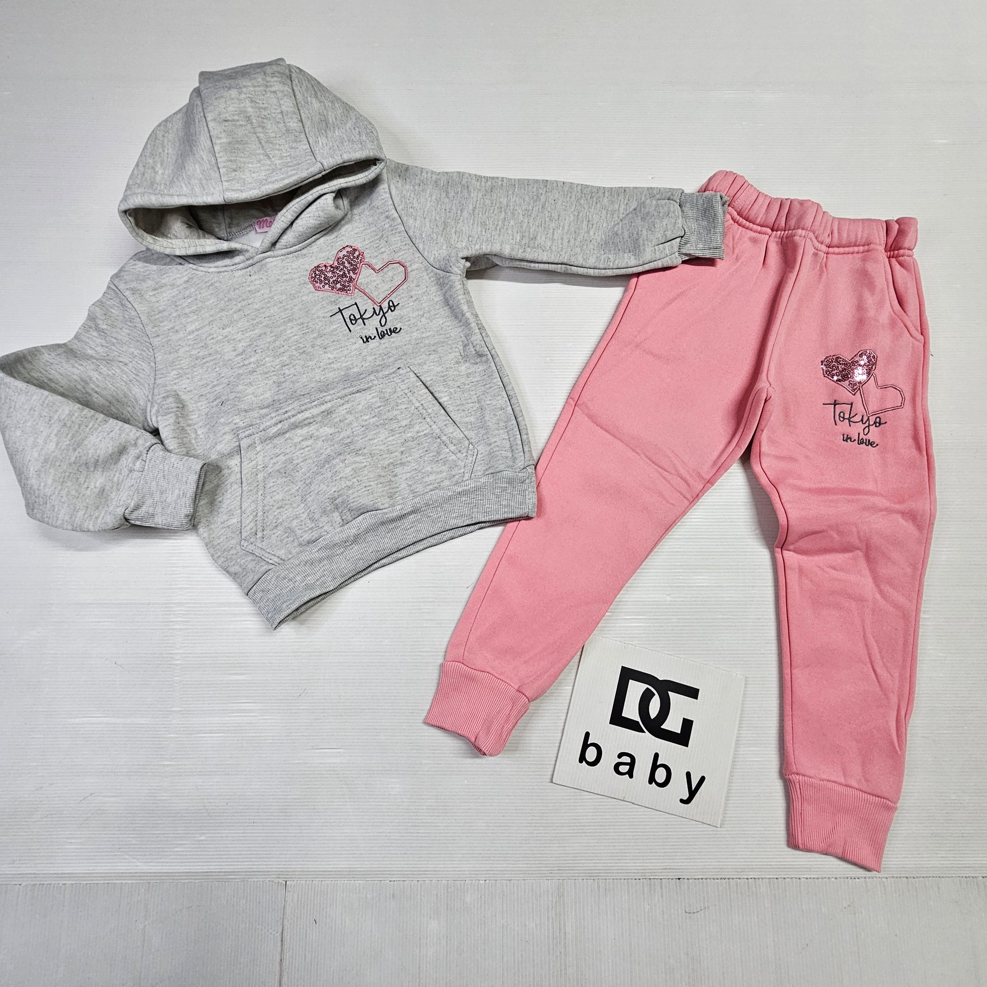 Completo felpa con cappuccio e pantalone jogger con dettaglio cuore glitter. Morbido, caldo e perfetto per tutti i giorni. VestibilitΓ  regolare.