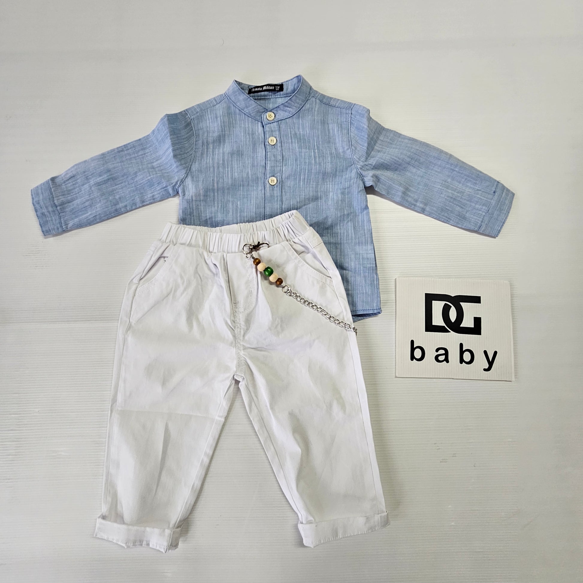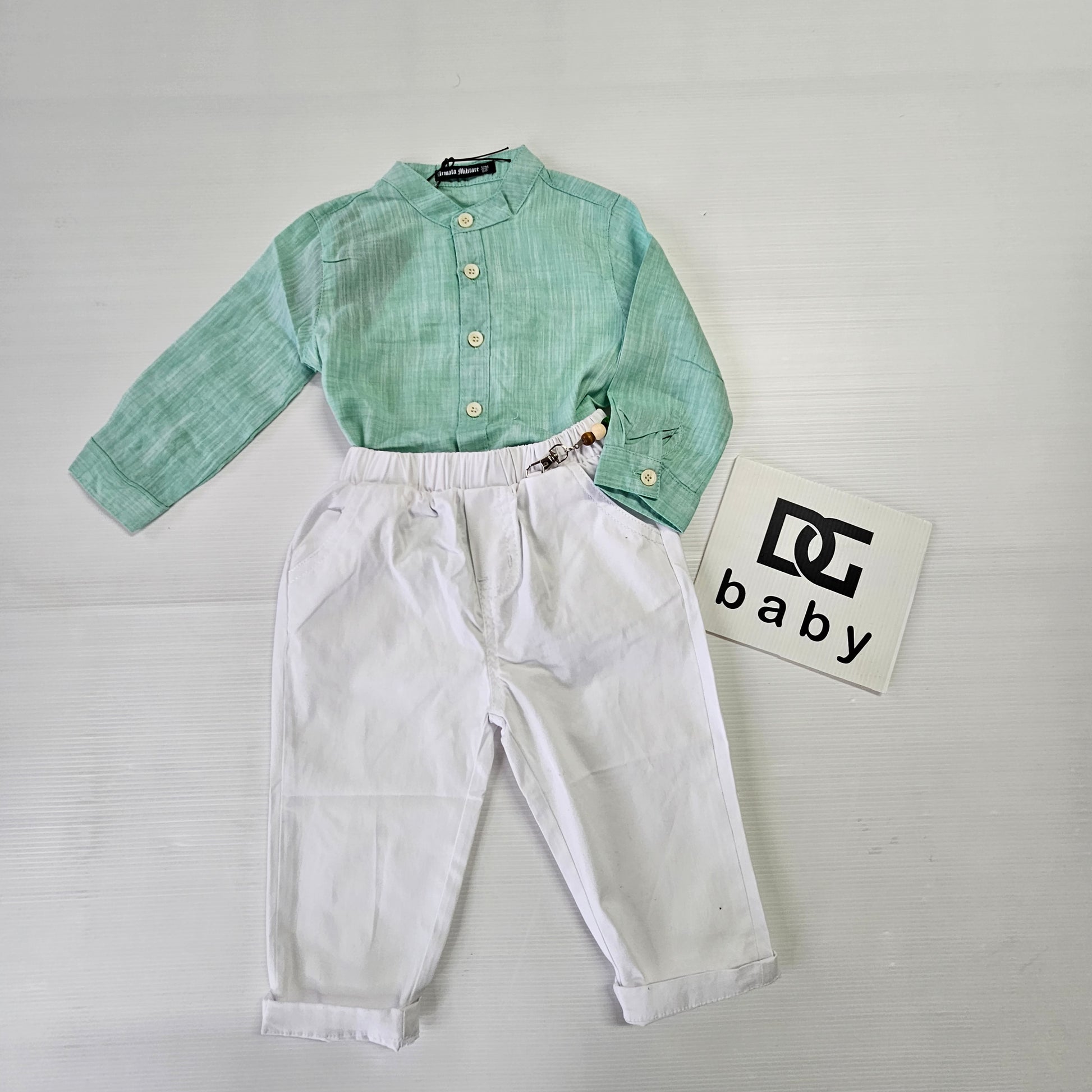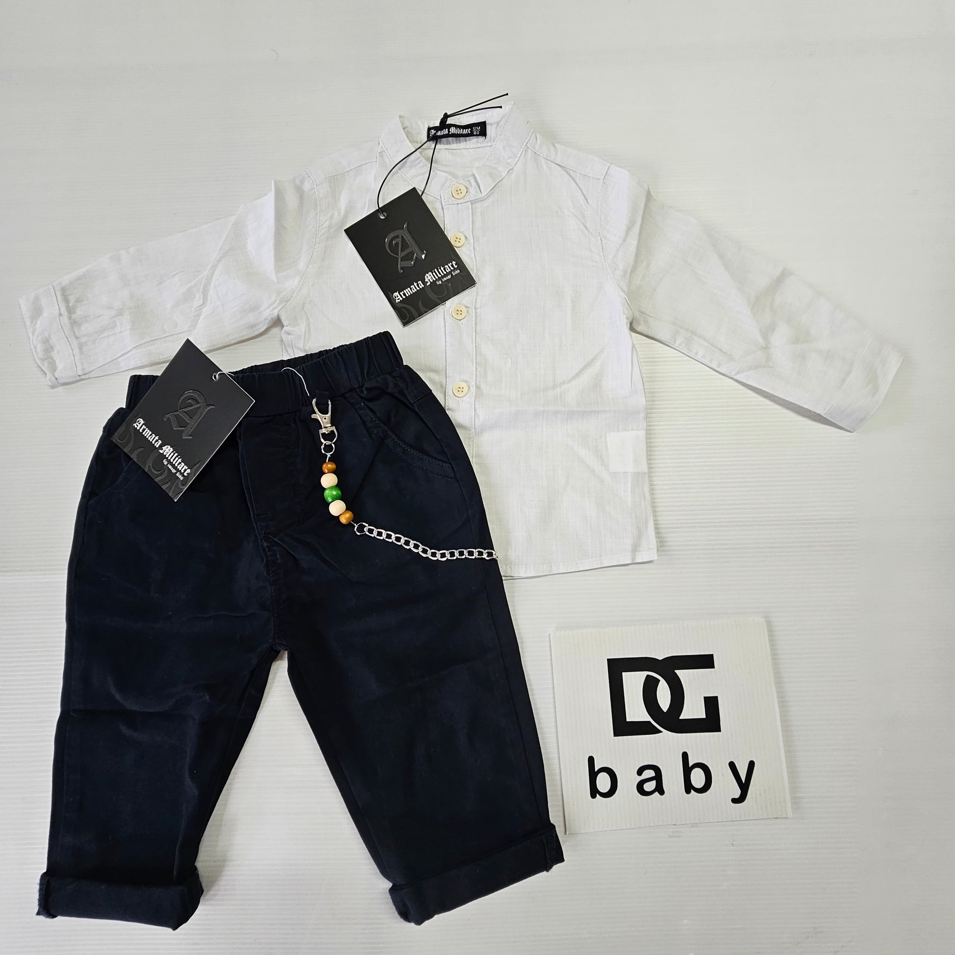 completo neonato COREANO composto da camicia in lino coreana e pantalone in cotone con elastico in vita