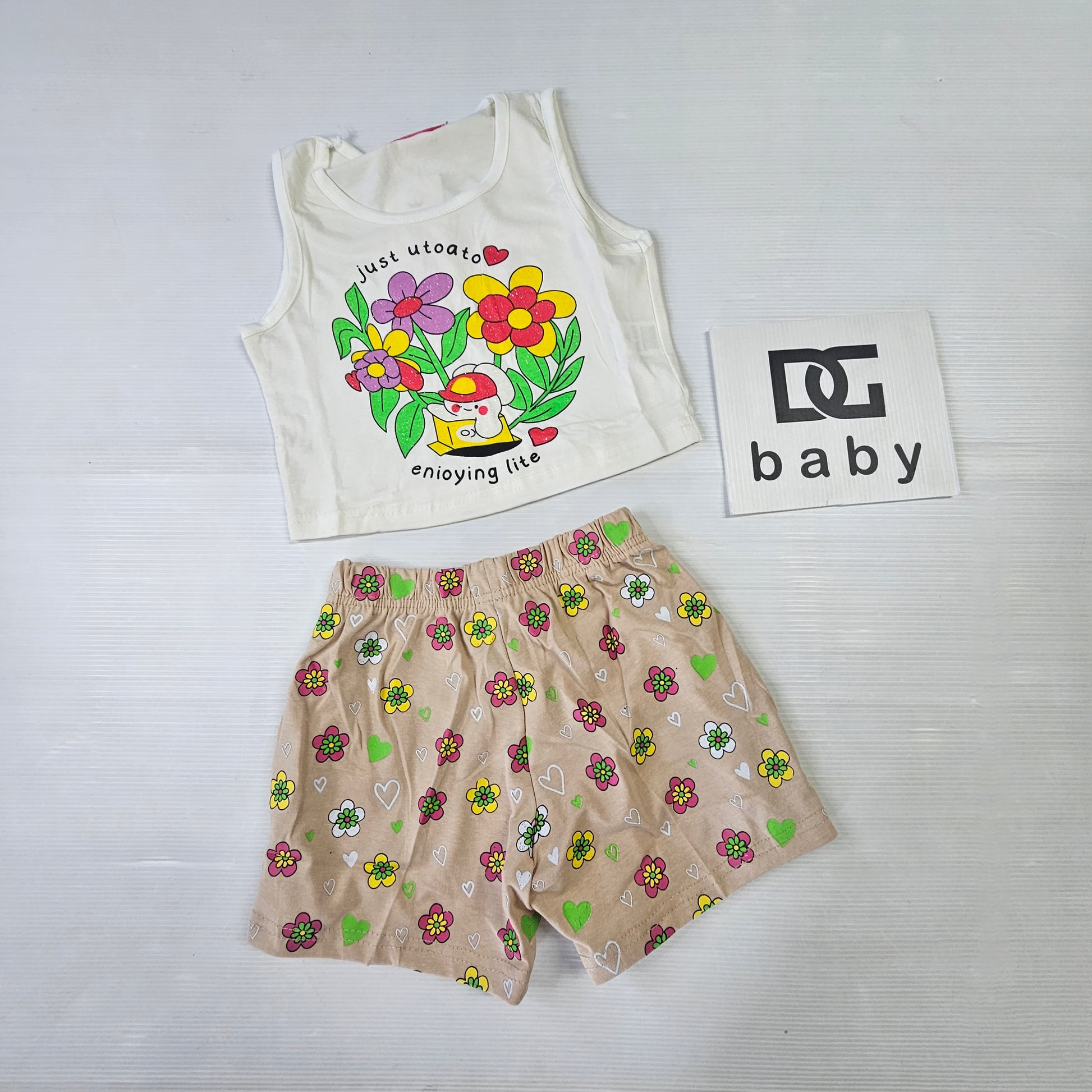completo bambina JUST FLOWERS con canotta e pantaloncino in cotone