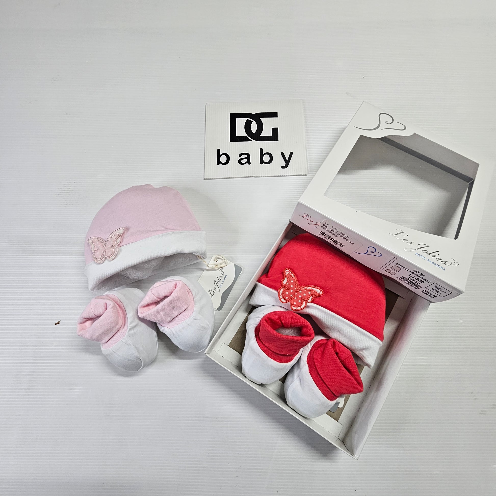 completo neonata LJ236 composto da cappellino e babbucce in cotone LES JOLIE