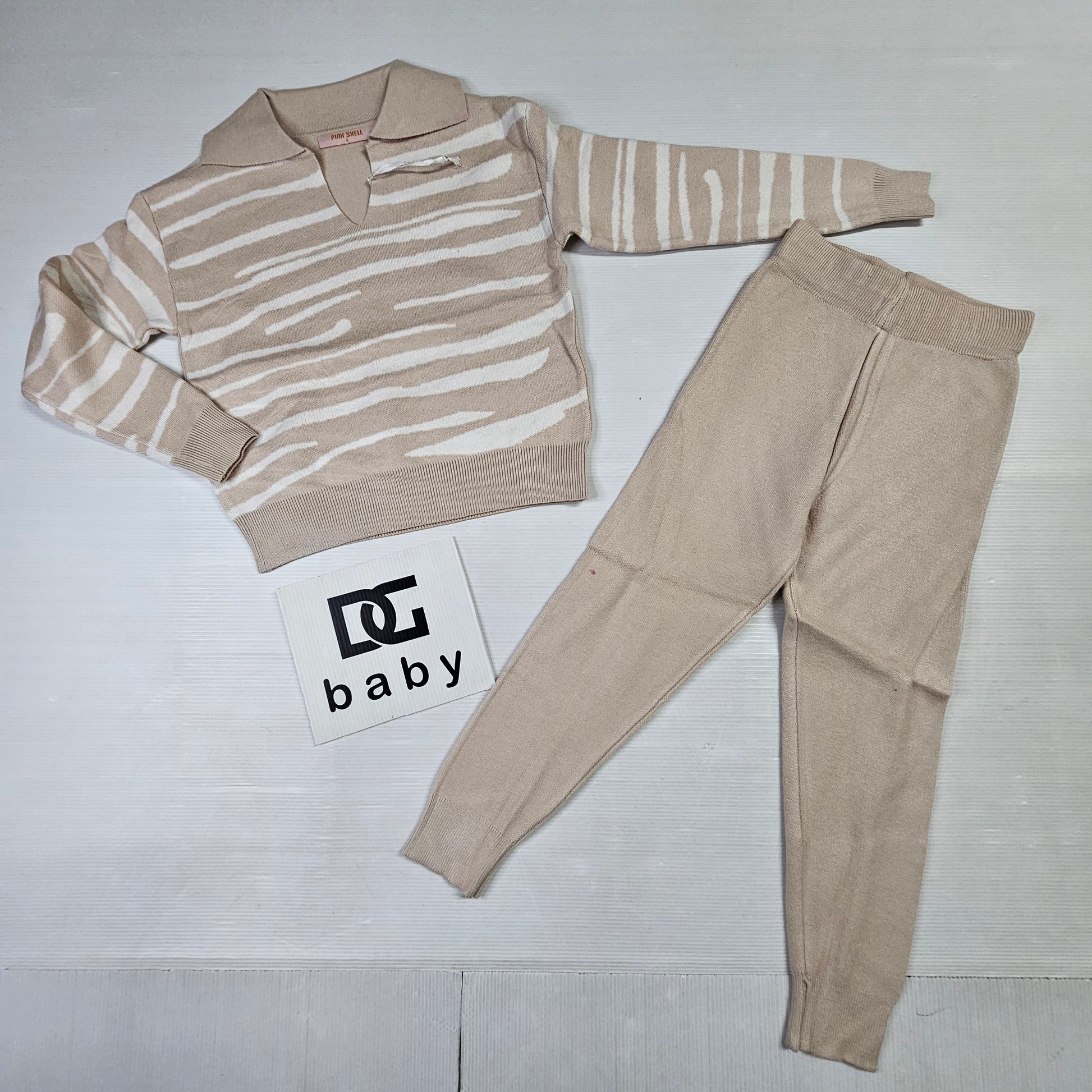 Completo in morbida maglia con fantasia zebrata 🐾 composto da maglioncino con colletto e pantalone coordinato. Caldo, comodo e super trendy ✨ ideale per scuola e tempo libero!