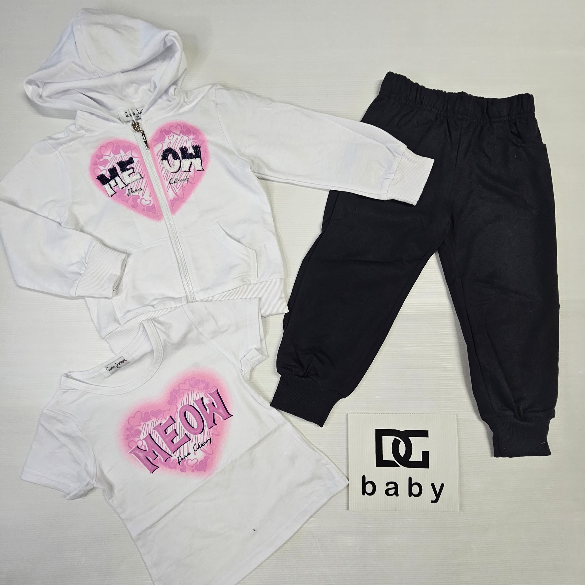 completo bambina ragazza MEOW composto da maglietta mezza manica in cotone maglia zip lunga e cappuccio e pantatuta tutto in felpa di cotone