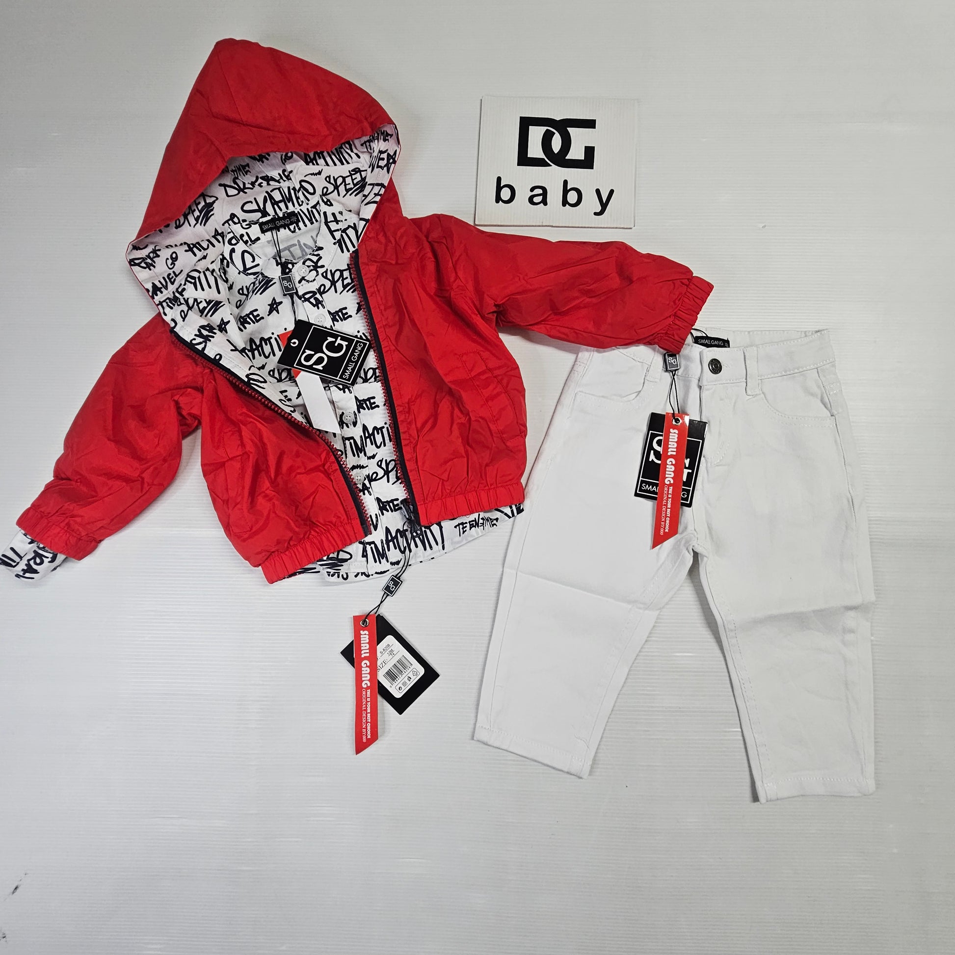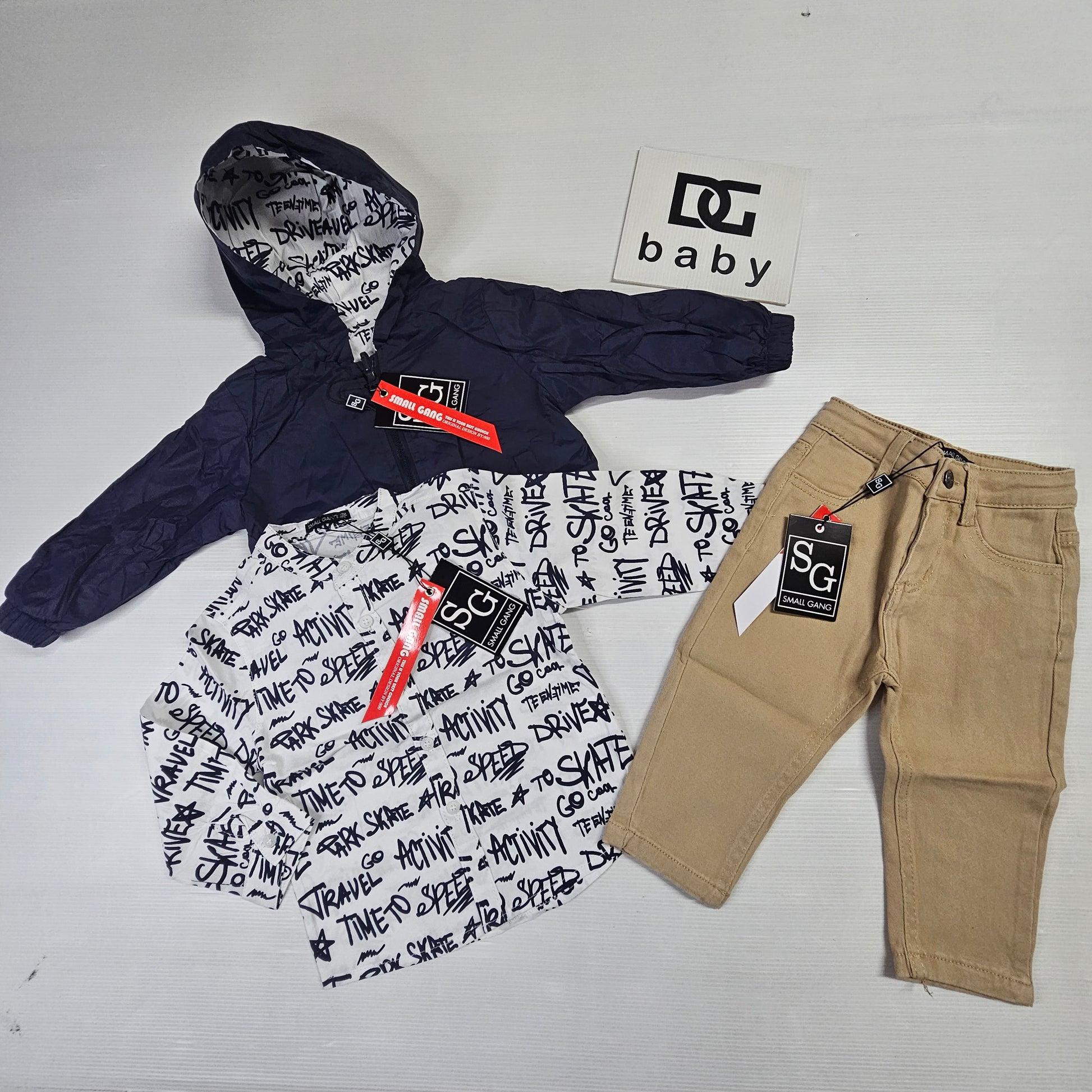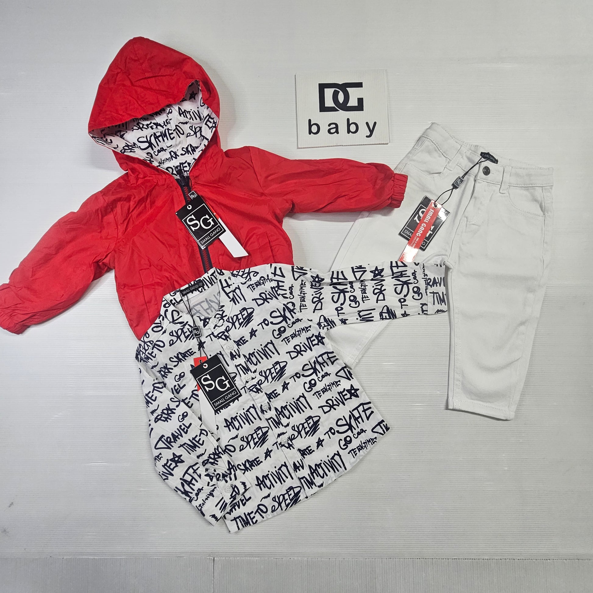 completo neonato ACTIVITY composto da giubbino, camicia in cotone fantasia e pantalone con elastico in vita