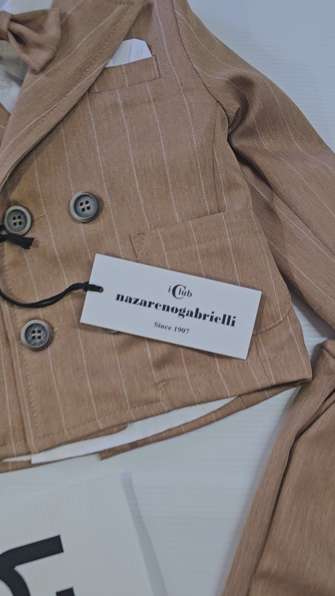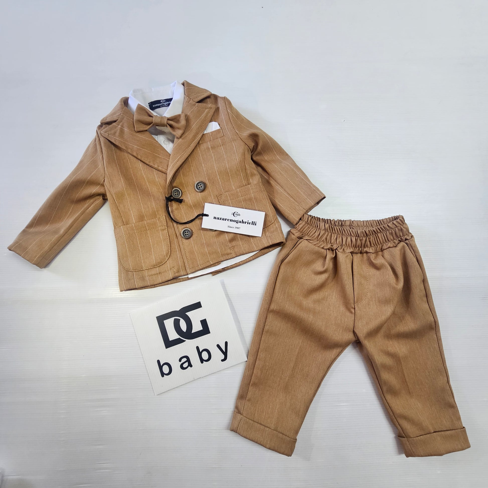 completo neonato GIANNI NEO NAZARENO GABRIELLI composto da giacca con camicia in cotone papillon e pantalone LINEA cerimonia