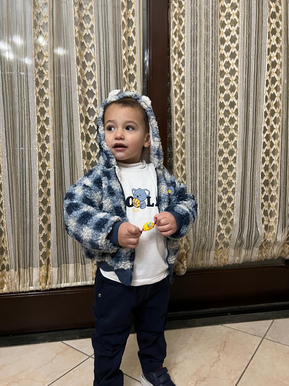 completo neonato KOALA tre pezzi composto da cardigan teddy a fantasia in pelliccetta, maglietta manica lunga in caldo cotone e pantalone caldo