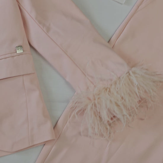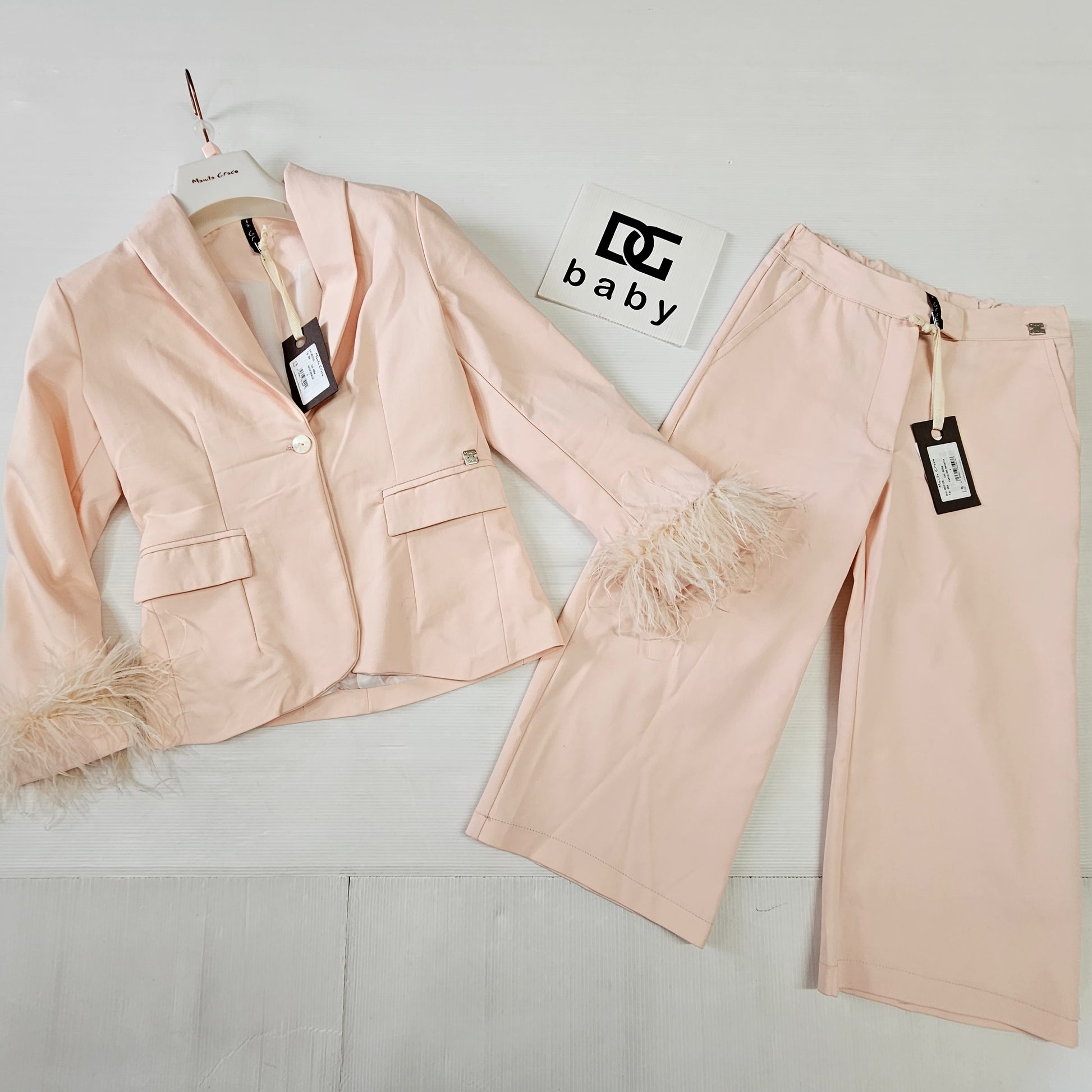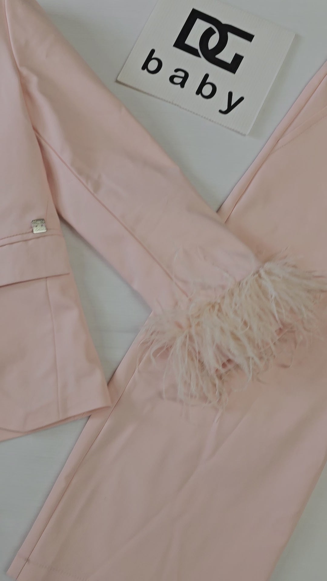 completo ragazza MG2733+2720 composto da giacca con piume alle maniche e pantalone MANILA GRACE