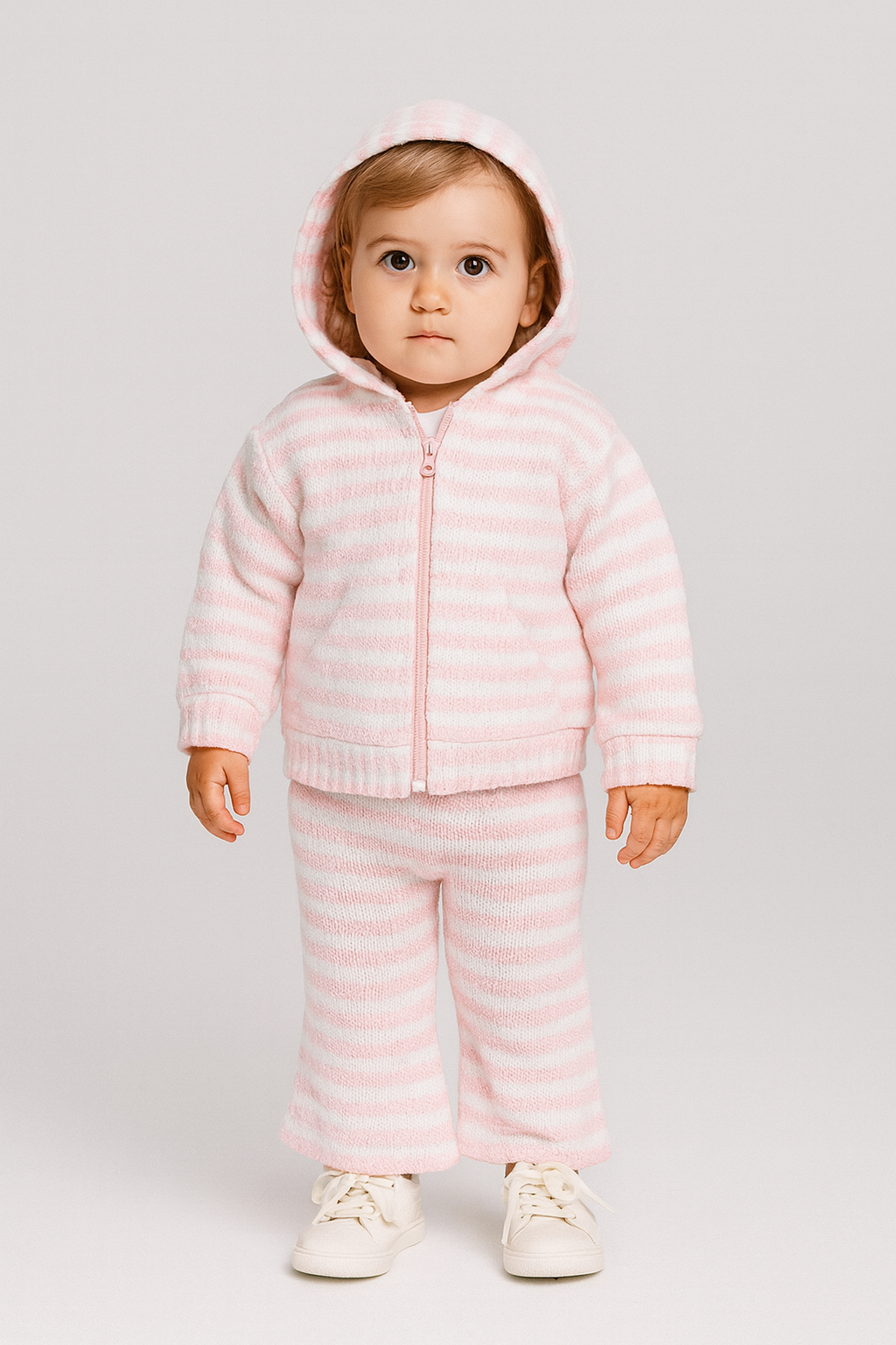 Morbido completo in maglia a righe con felpa con cappuccio e pantalone coordinato. Caldo, soffice e super coccoloso 🤍 perfetto per le giornate più fredde