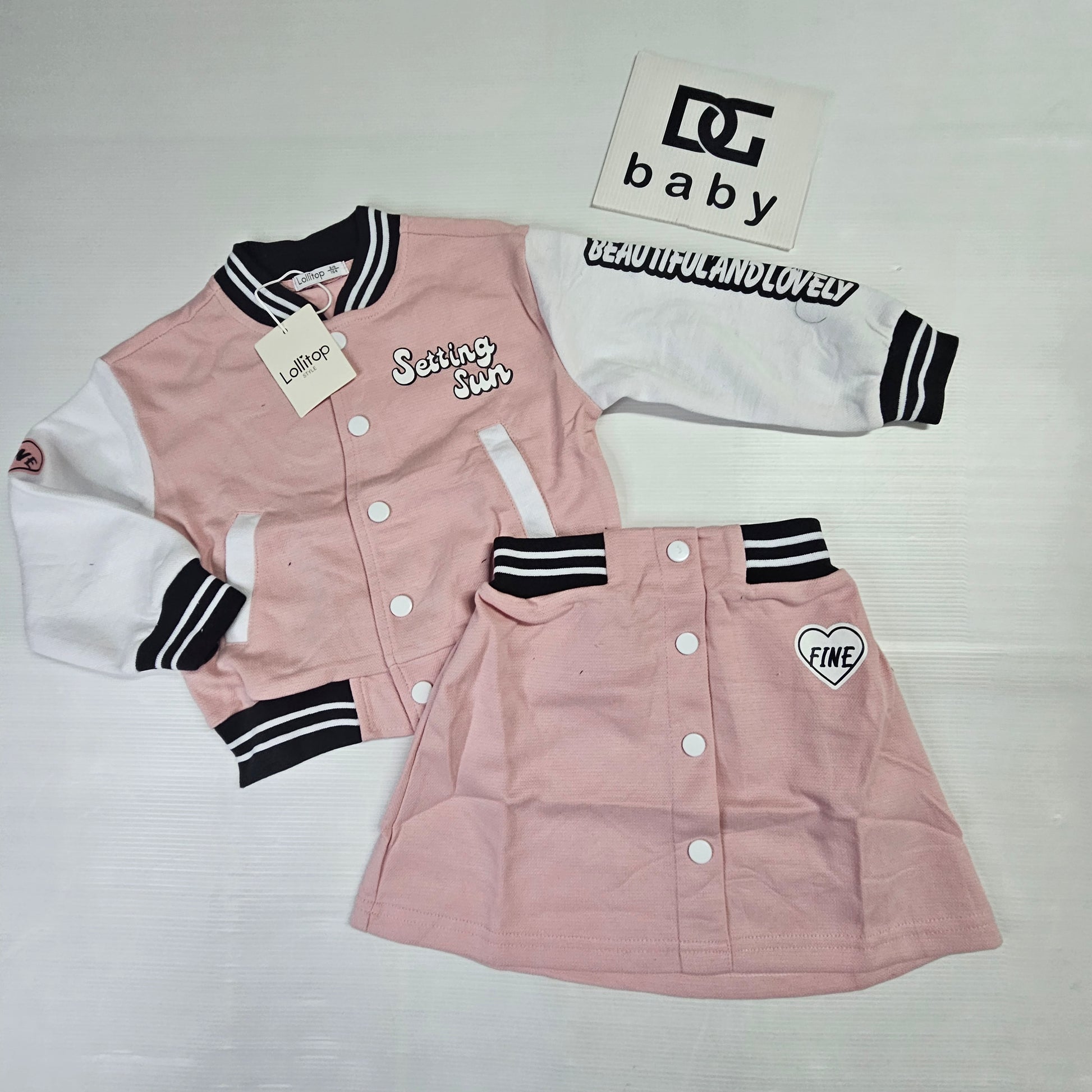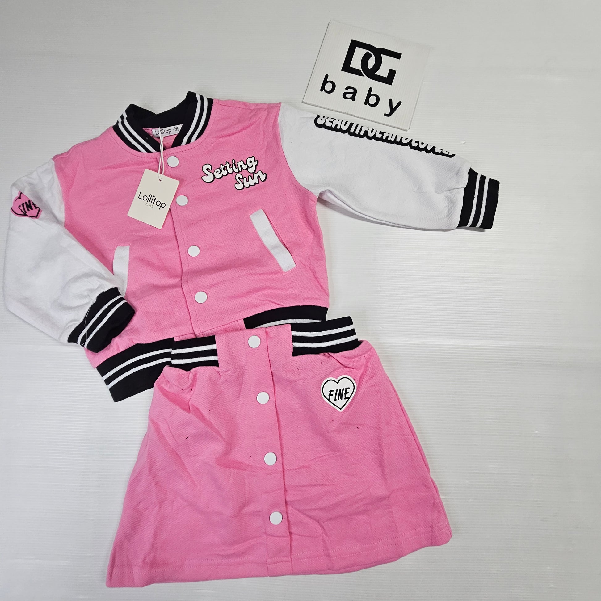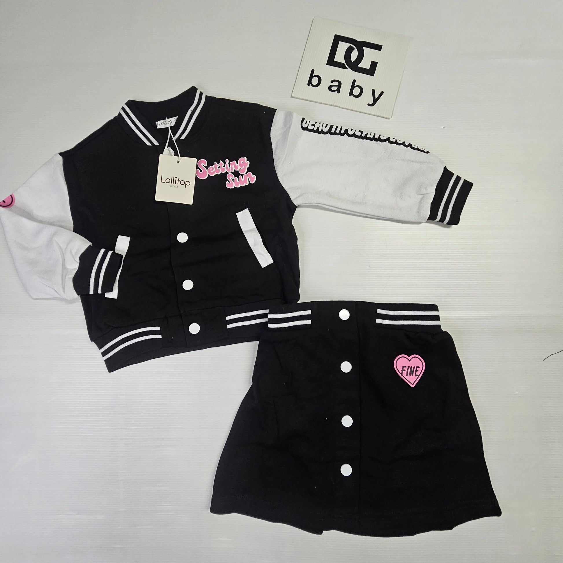 completo bambina ragazza SETTING SUN composto da maglia con bottoni e gonnellina tutto in felpa di cotone e modello college
