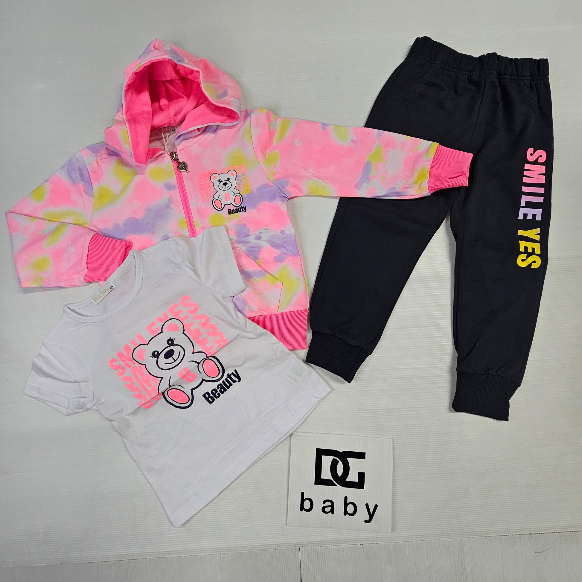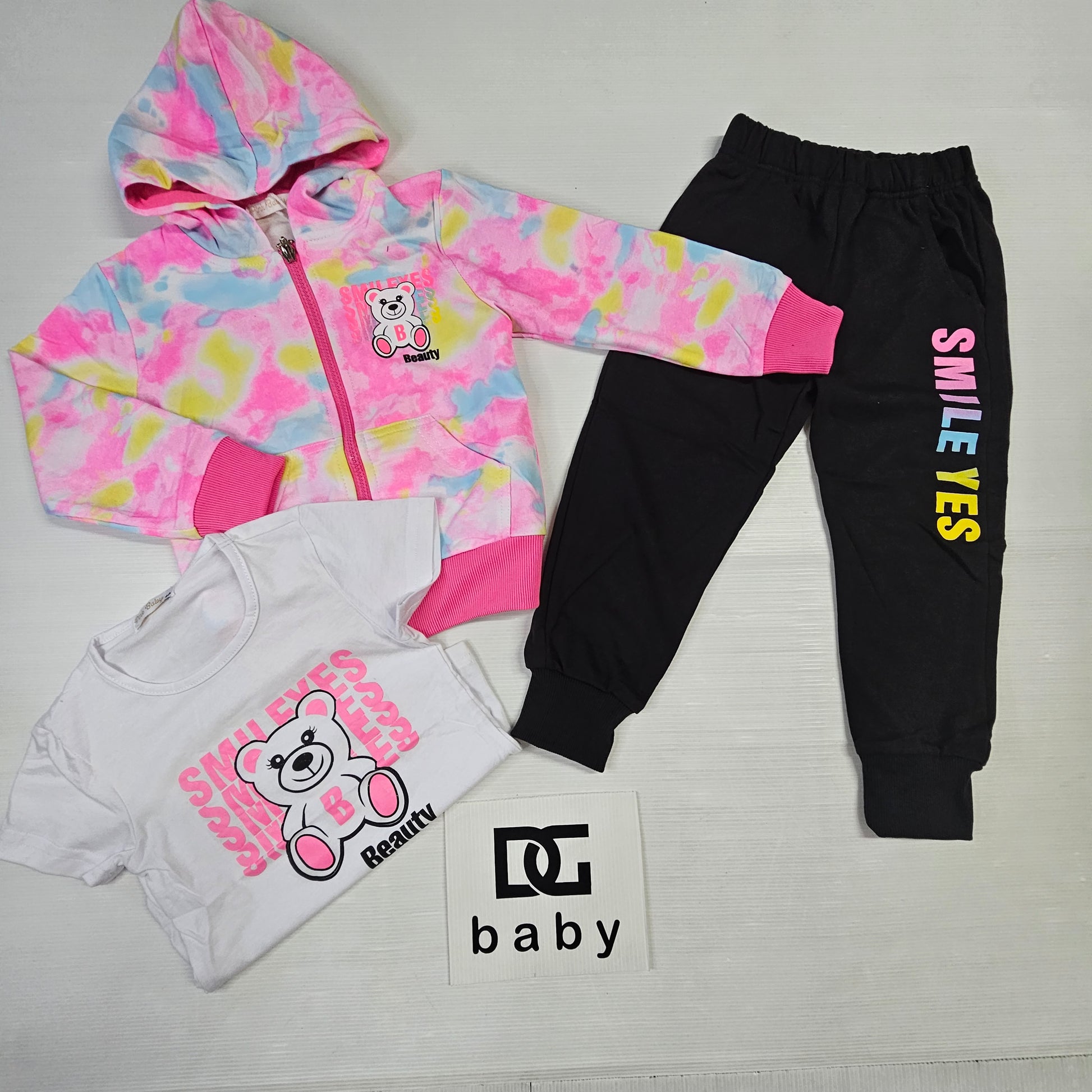 completo bambina ragazza SMILE BEATY composto da maglietta mezza manica in cotone maglia zip lunga e cappuccio e pantatuta tutto in felpa di cotone