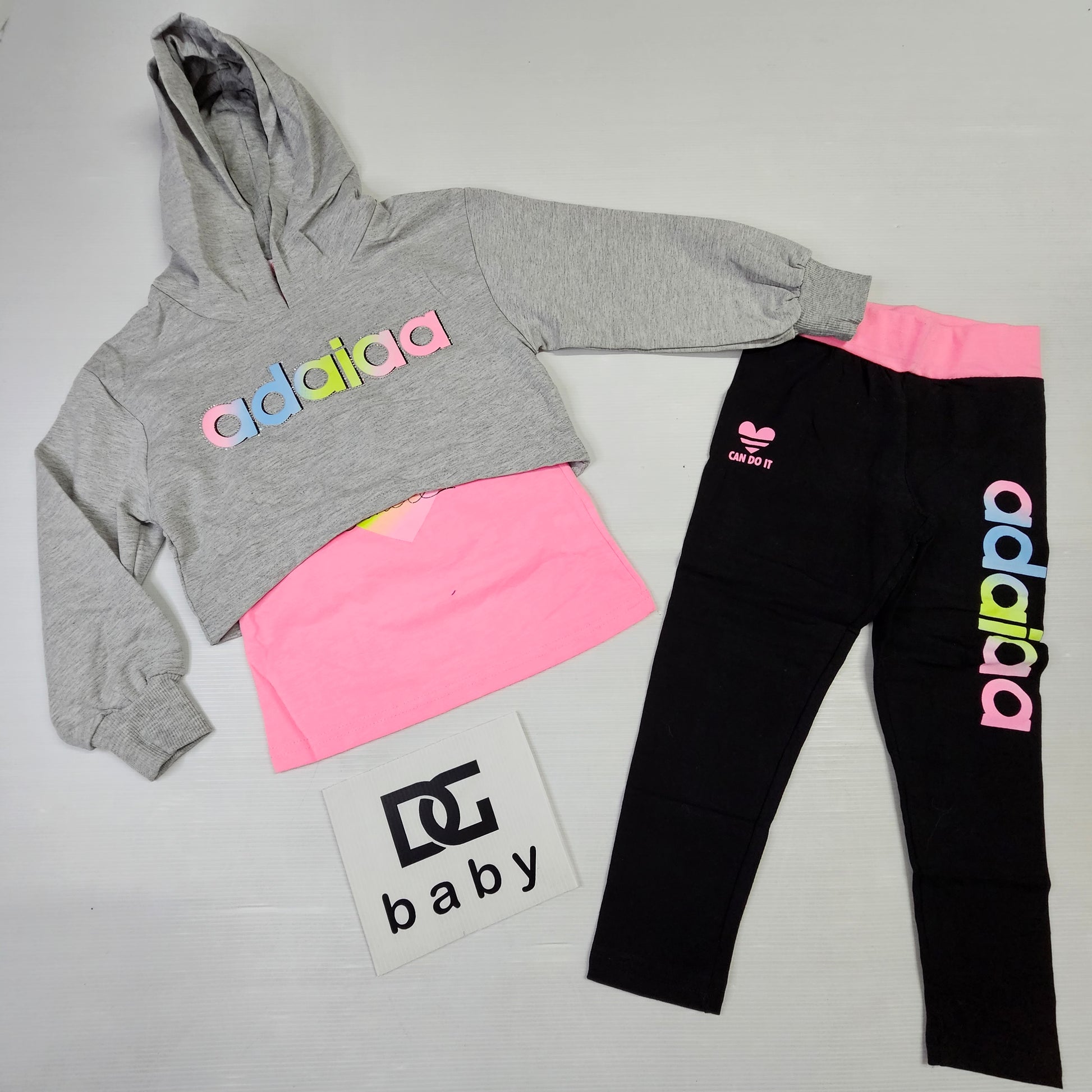 completo bambina ragazza ADAIAA COLORS TRIS con felpa con cappuccio crop canotta e leggins di cotone