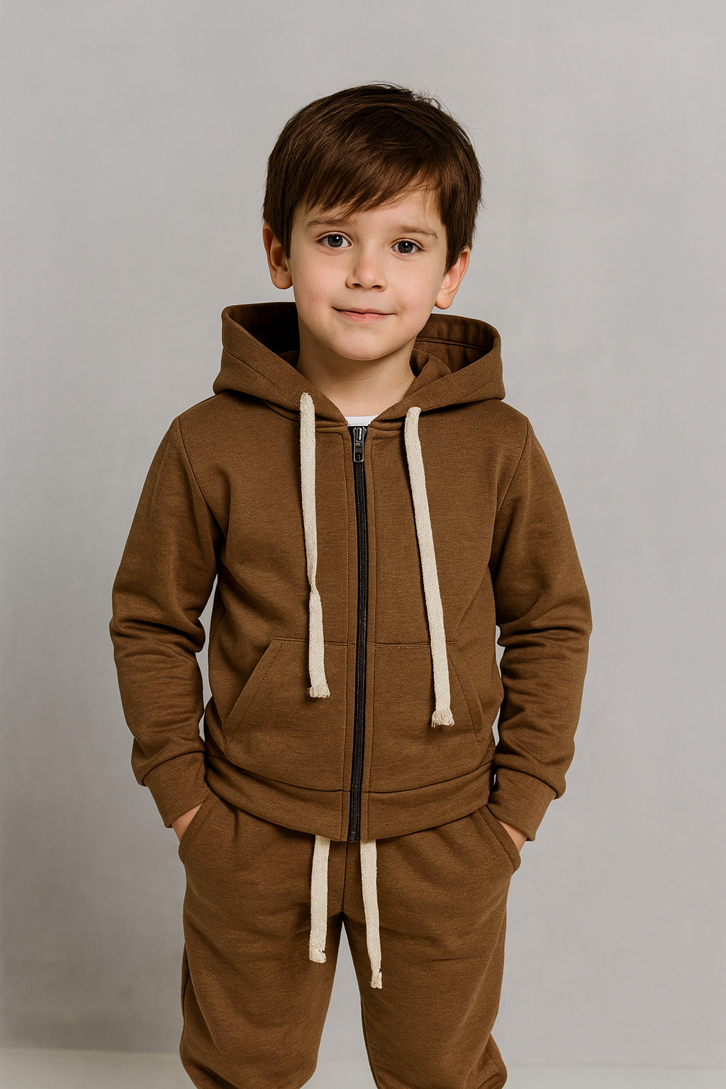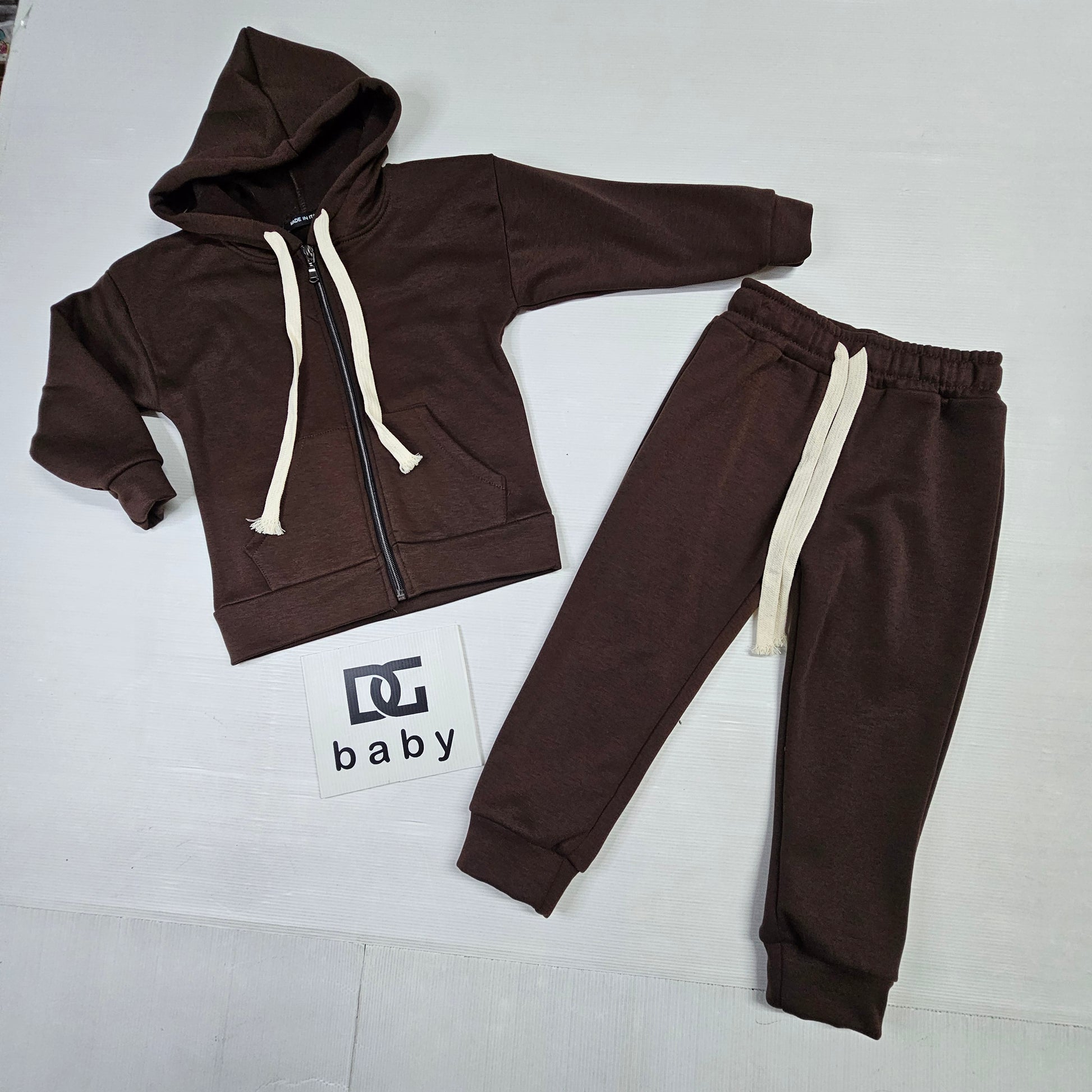 Completo due pezzi super caldo composto da felpa con cappuccio e zip frontale e pantalone coordinato. Realizzato in tessuto caldo e morbido, ideale per la stagione invernale. Il design essenziale è arricchito da coulisse a contrasto che donano un tocco sportivo e moderno. Perfetto per l’uso quotidiano, scuola e tempo libero.