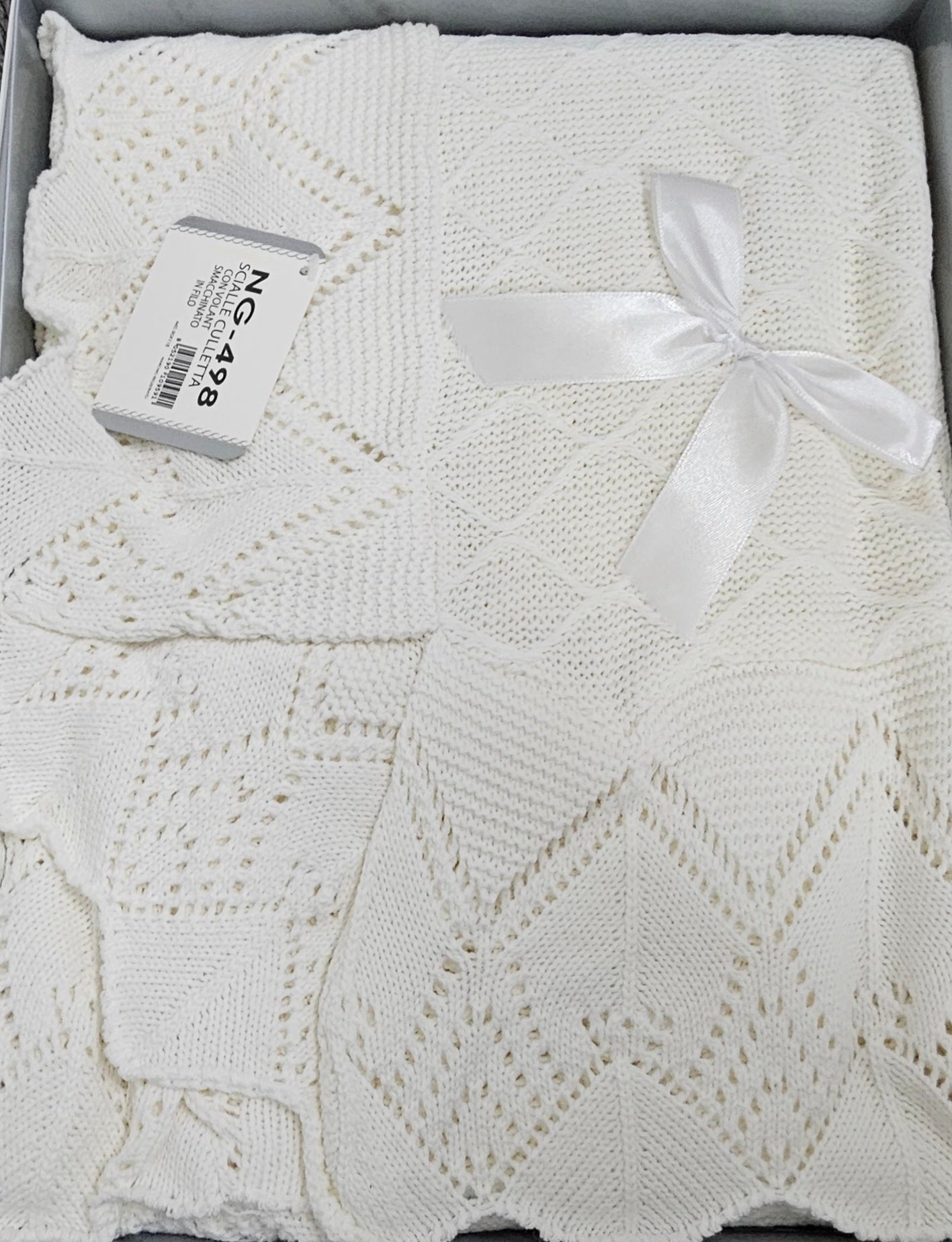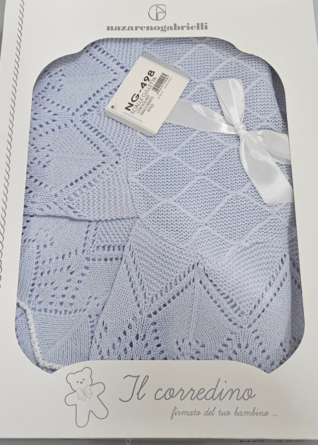 scialle copertina culletta con volant in filo NG498 NAZARENO GABRIELLI