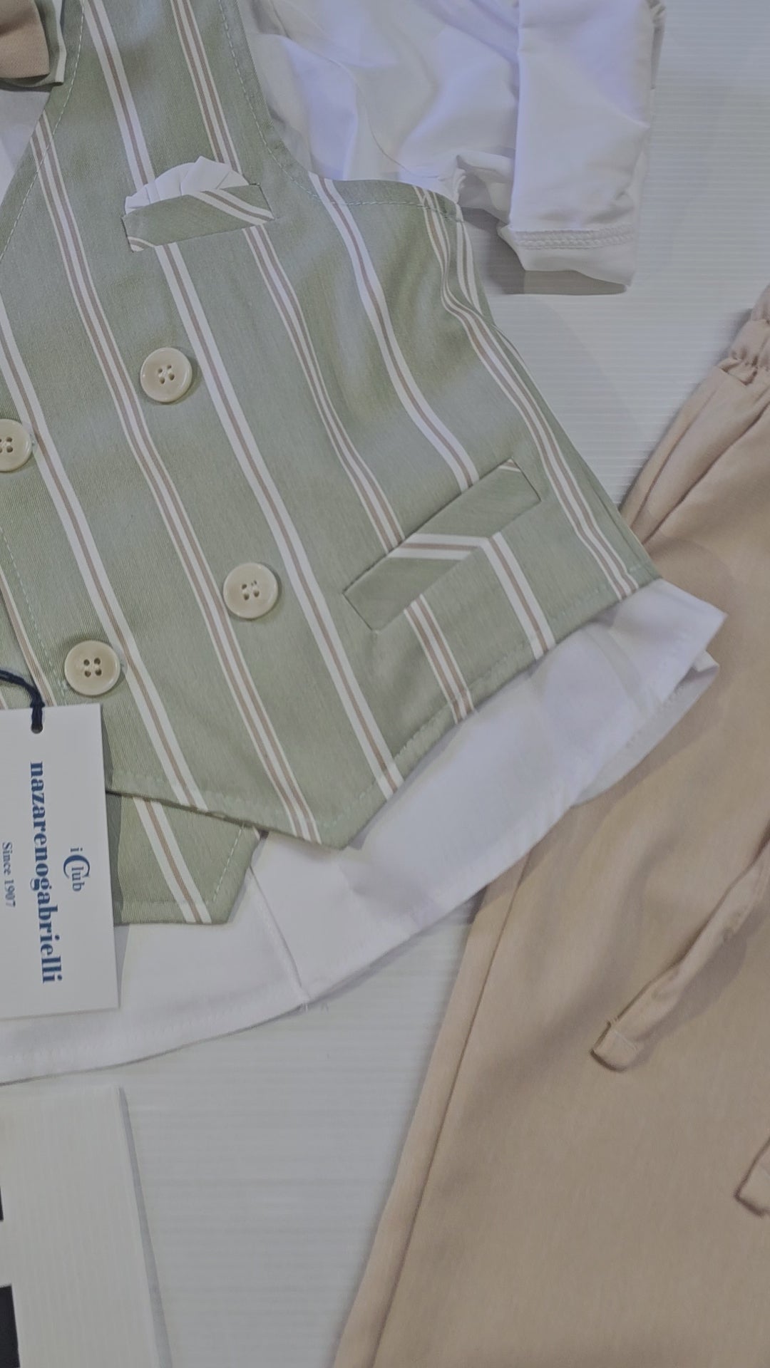 completo bambino MATTIA BOY NAZARENO GABRIELLI composto da camicia in cotone con gilet doppip petto e papillon e pantalone cok elastico e laccetto in vita LINEA cerimonia