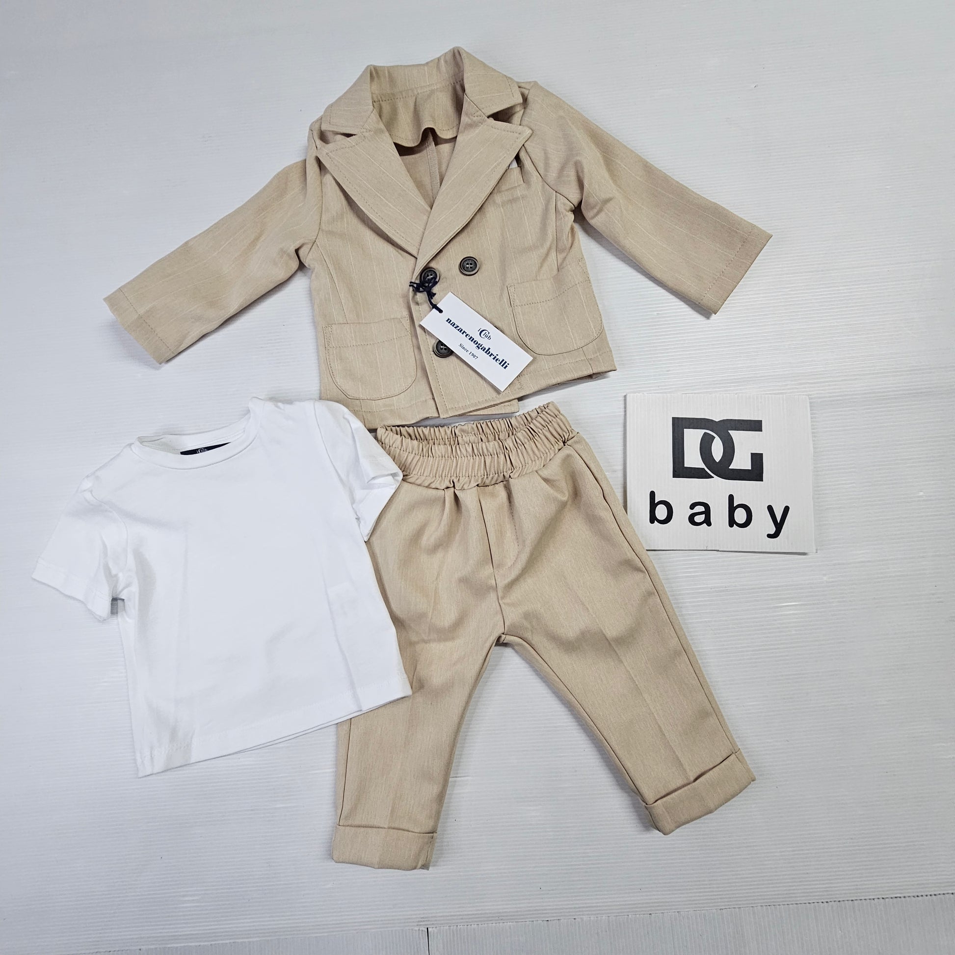 completo neonato GIORGIO NEO NAZARENO GABRIELLI composto da giacca con maglietta mezza manica in cotone e pantalone LINEA cerimonia