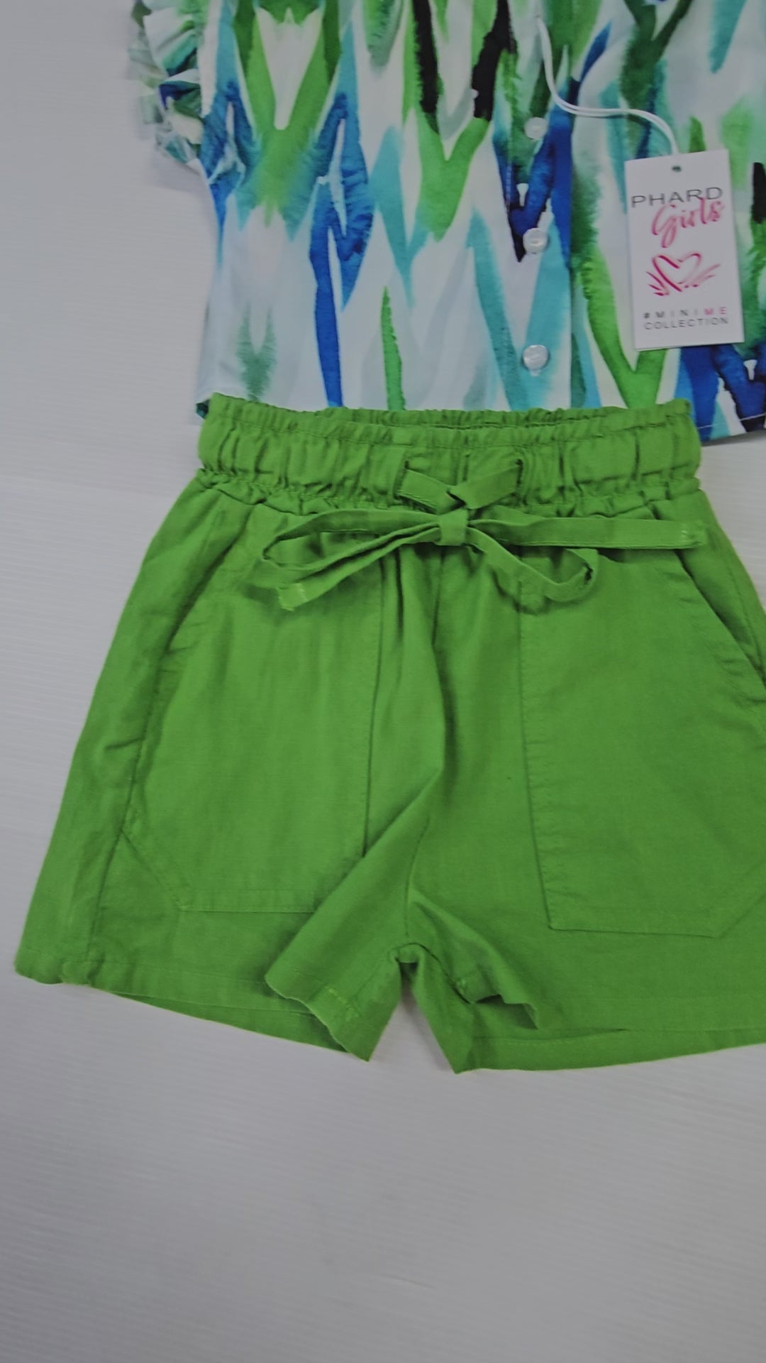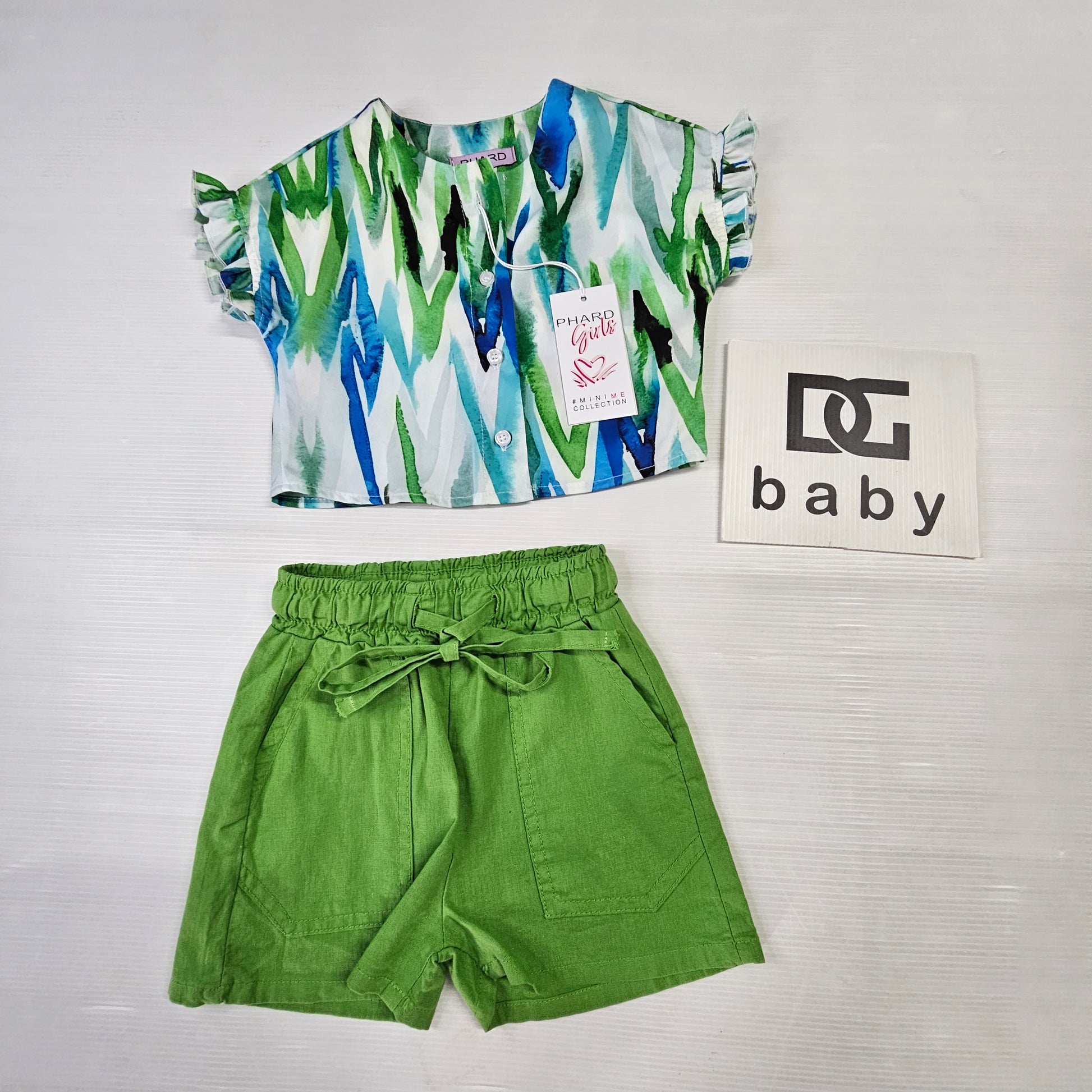 completo bambina PHARD MINIME composto da camicia smanicata fantasia e pantaloncino