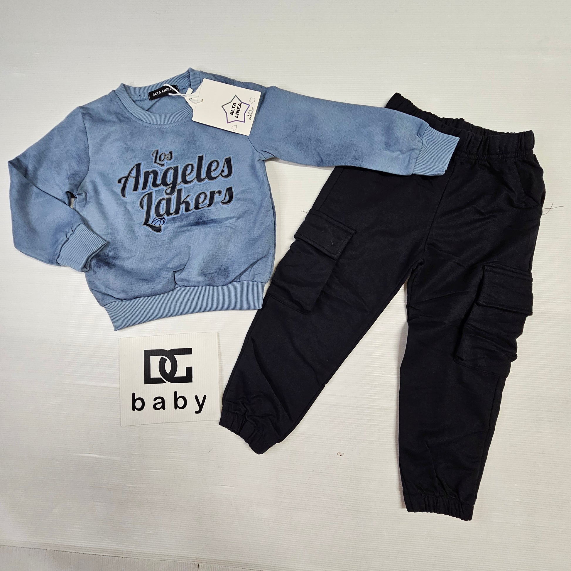 completo tuta bambino LOSANGELES LAKERS con felpa girocollo e pantatuta cargo tutto caldo