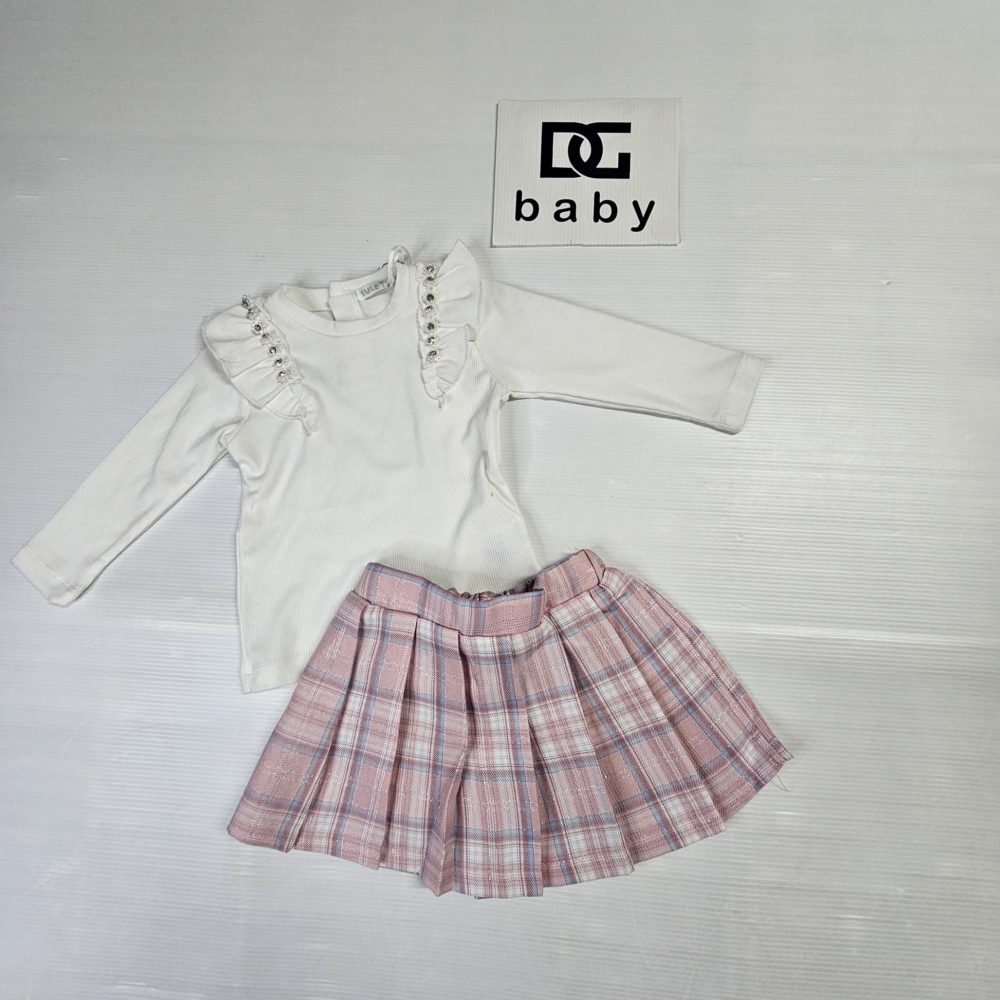 completo neonata ELSA NEO composto da maglietta manica lunga in cotone e gonnellino a pieghe elastico in vita