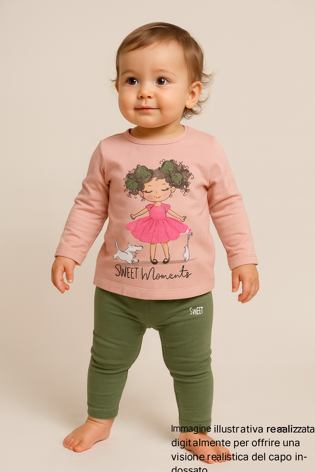completo neonata SWEET NEO composto da maglia girocollo manica lunga e leggins tutto in caldo cotone