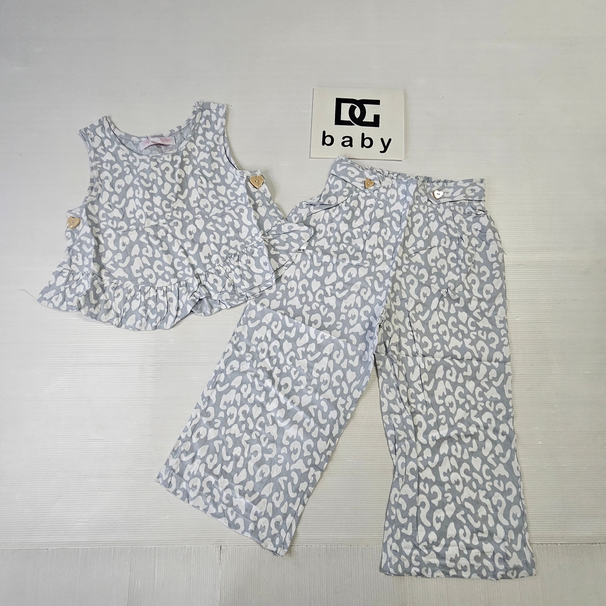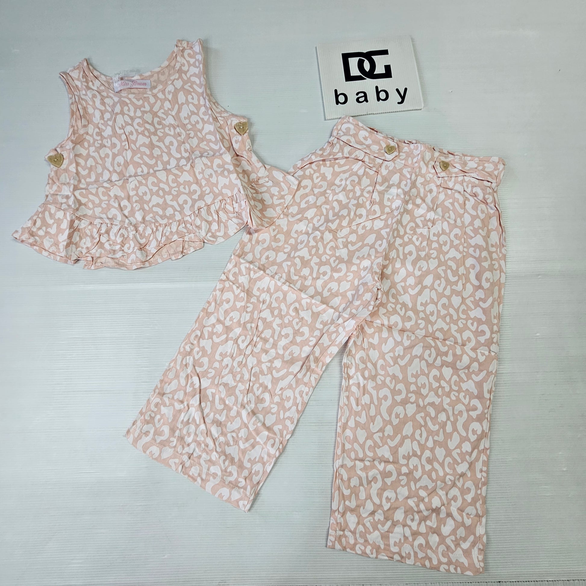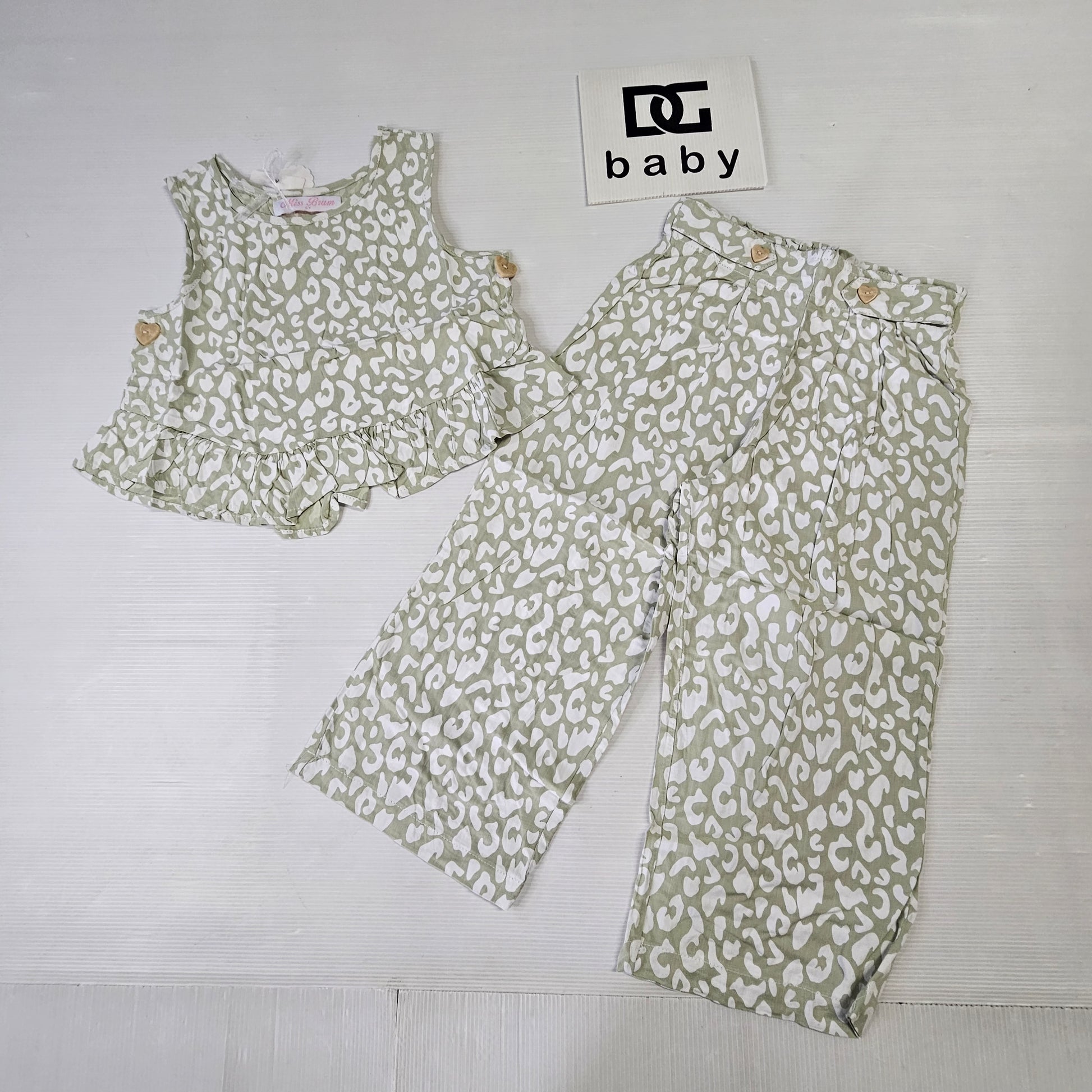 completo bambina ragazza MISS YOU GIRL composto da top canotta spalla larga e pantapalazzo a fantasia tutto in cotone