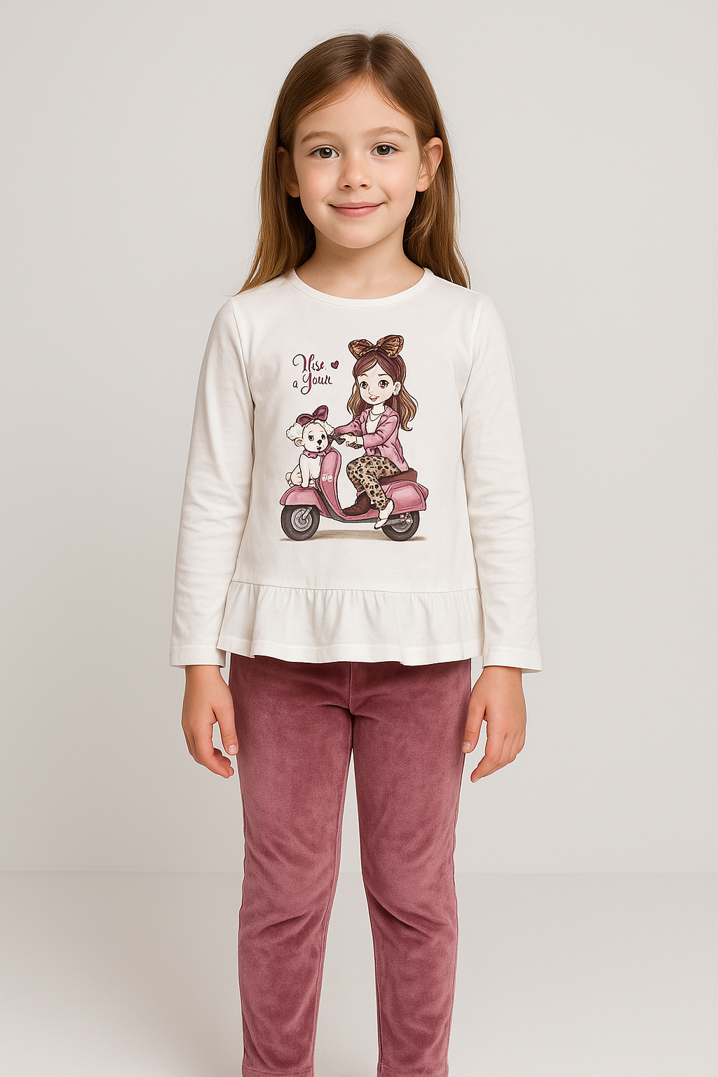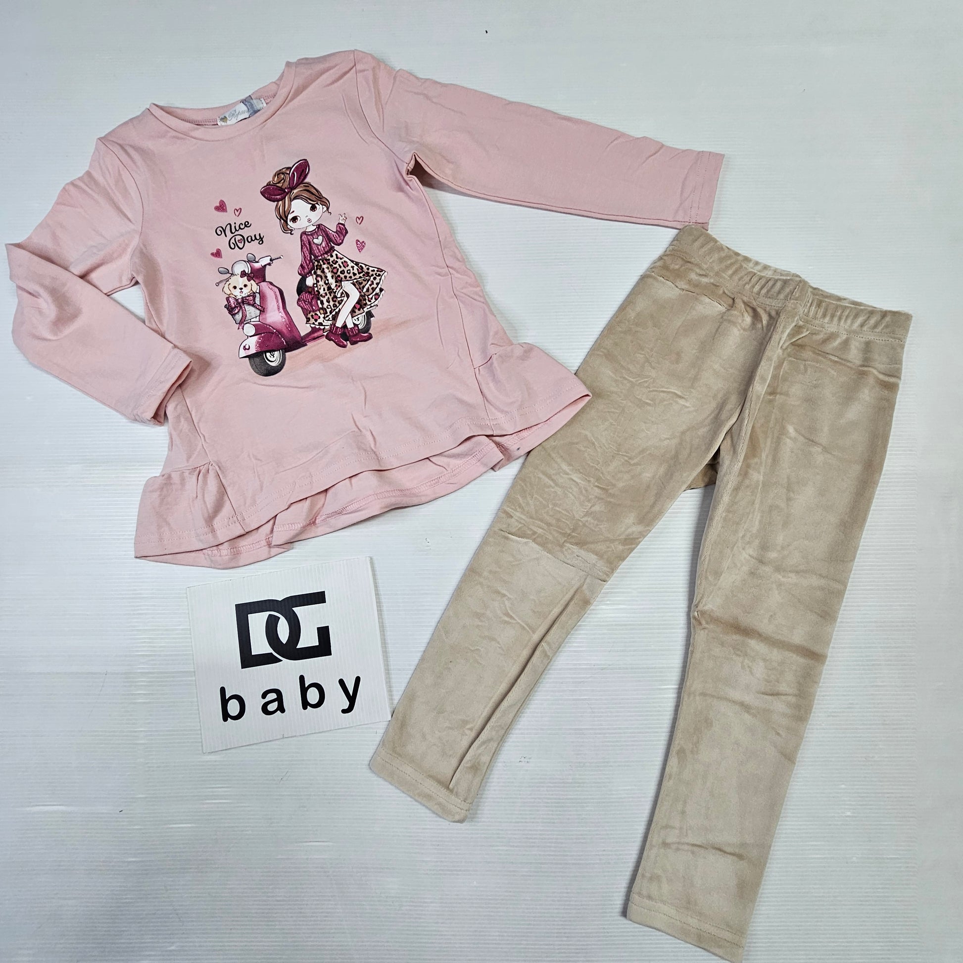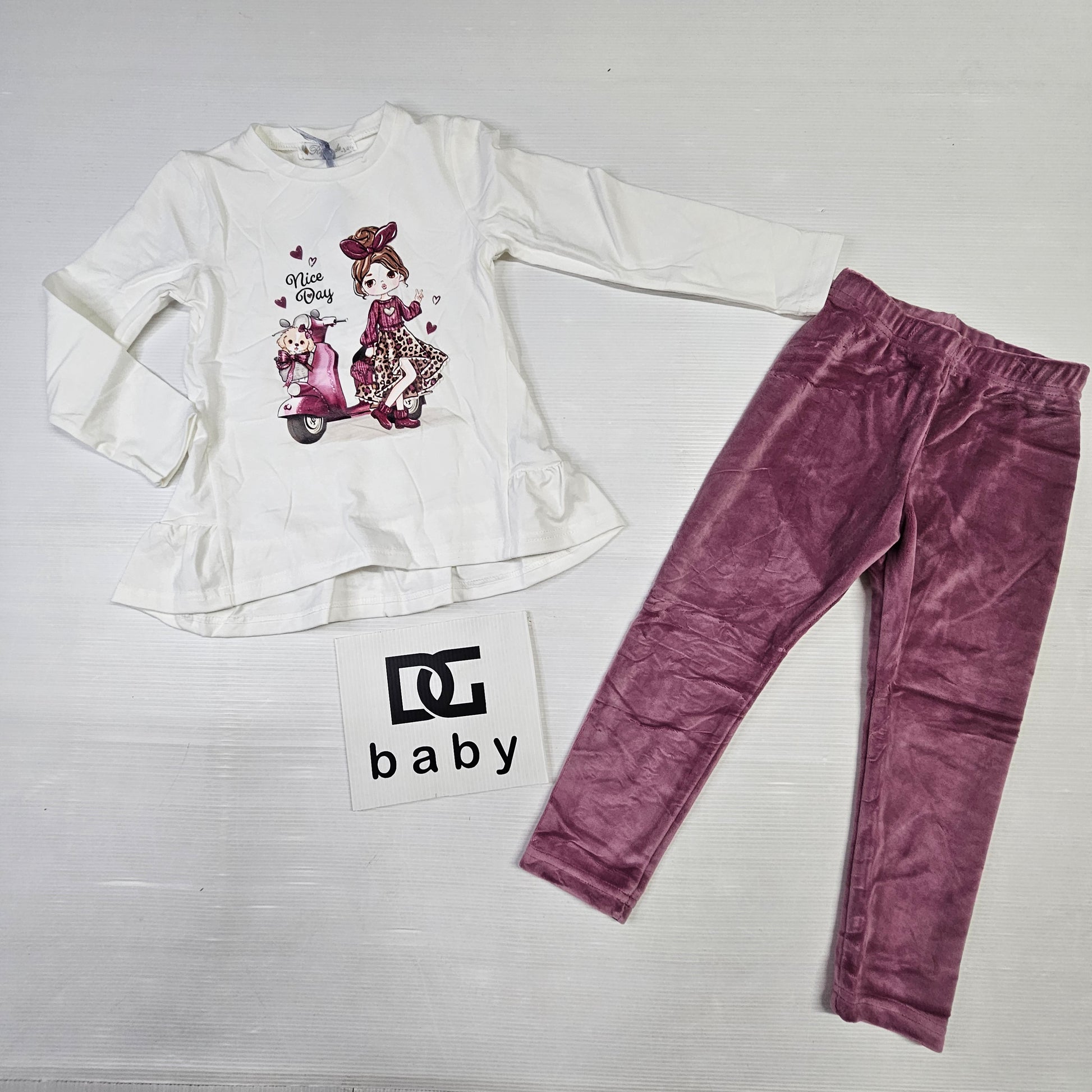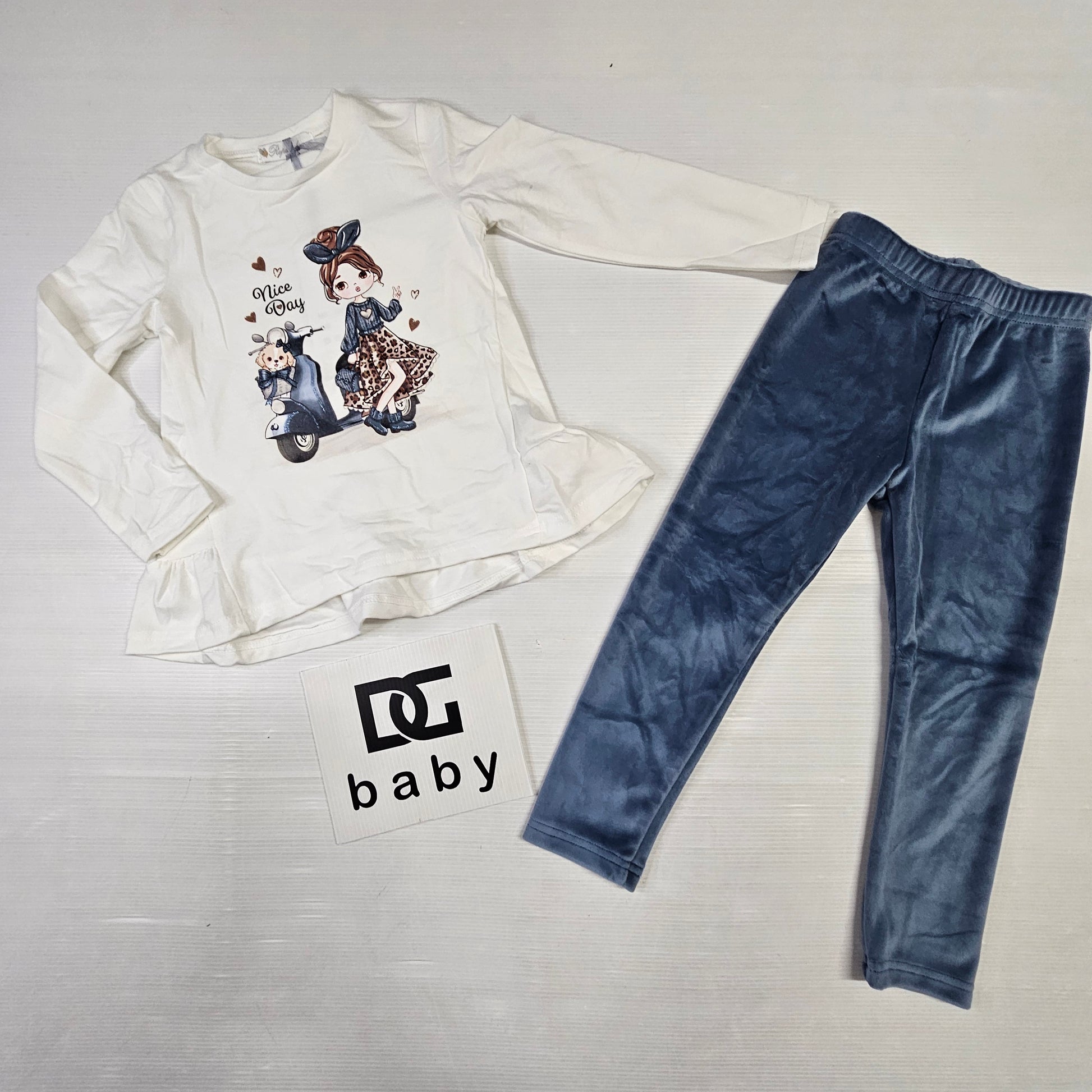 completo bambina ragazza NICE DAY con maglietta manica lunga in caldo cotone e leggins in ciniglia