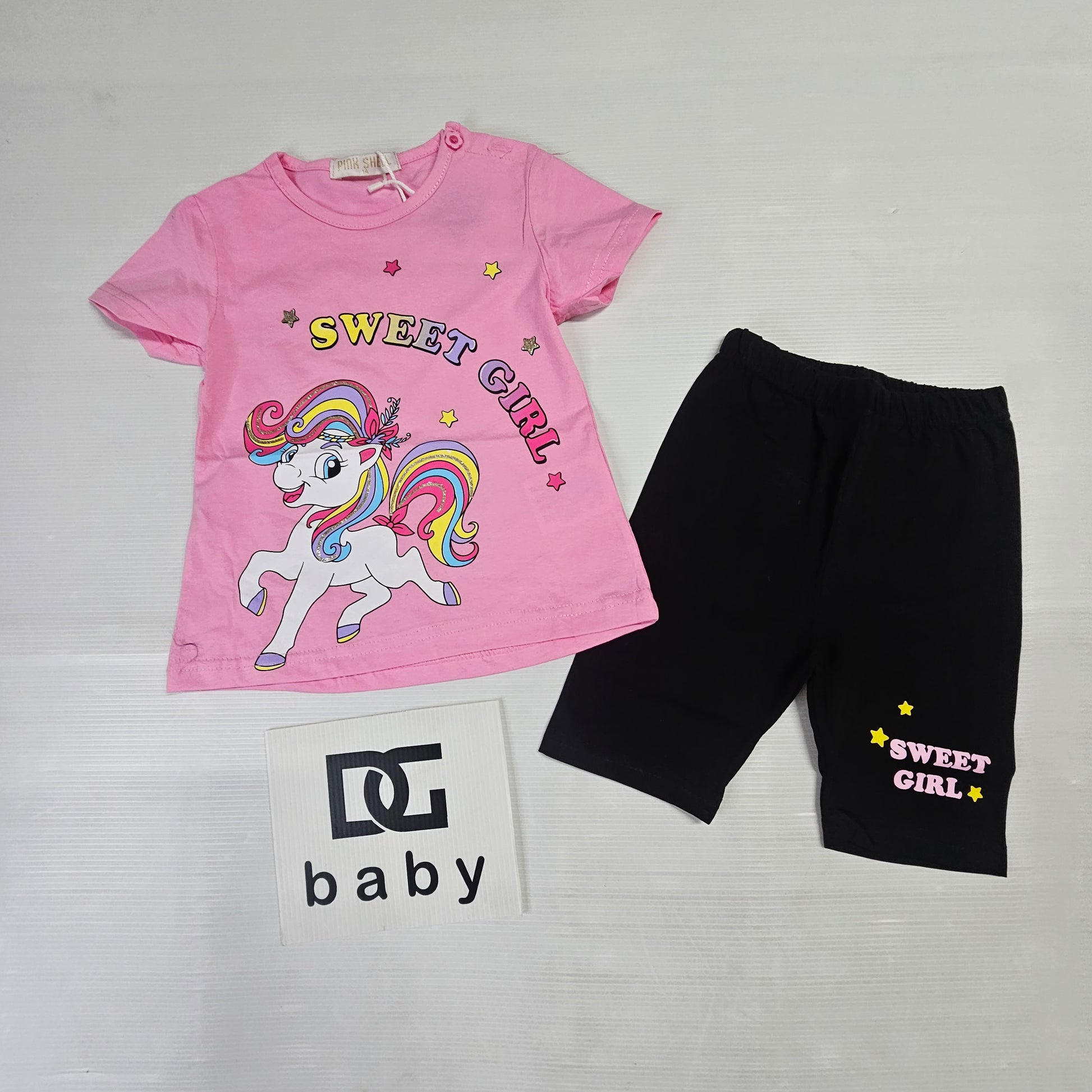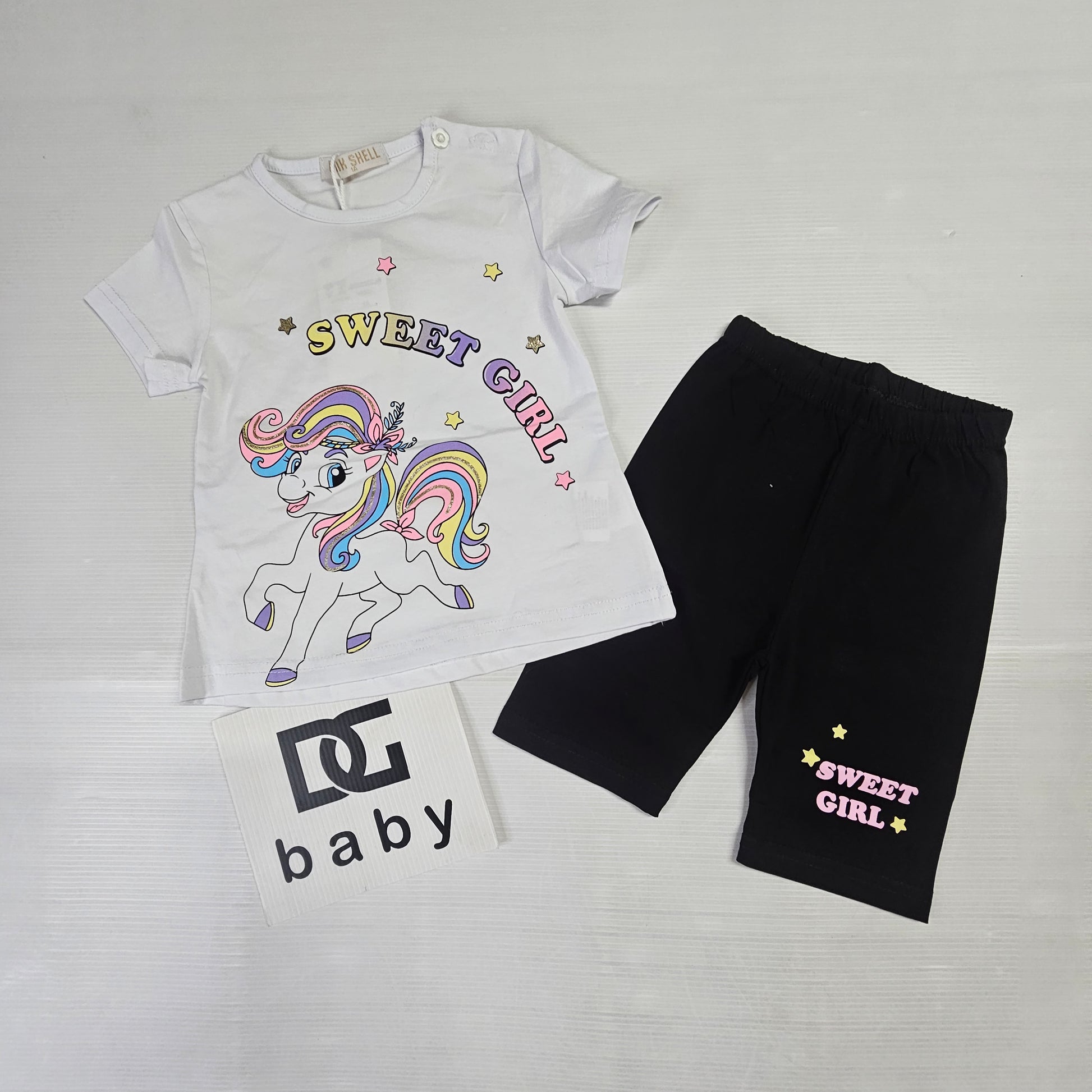completino neonata bambina SWEET GIRL maglietta manica corta e pantaloncino in cotone
