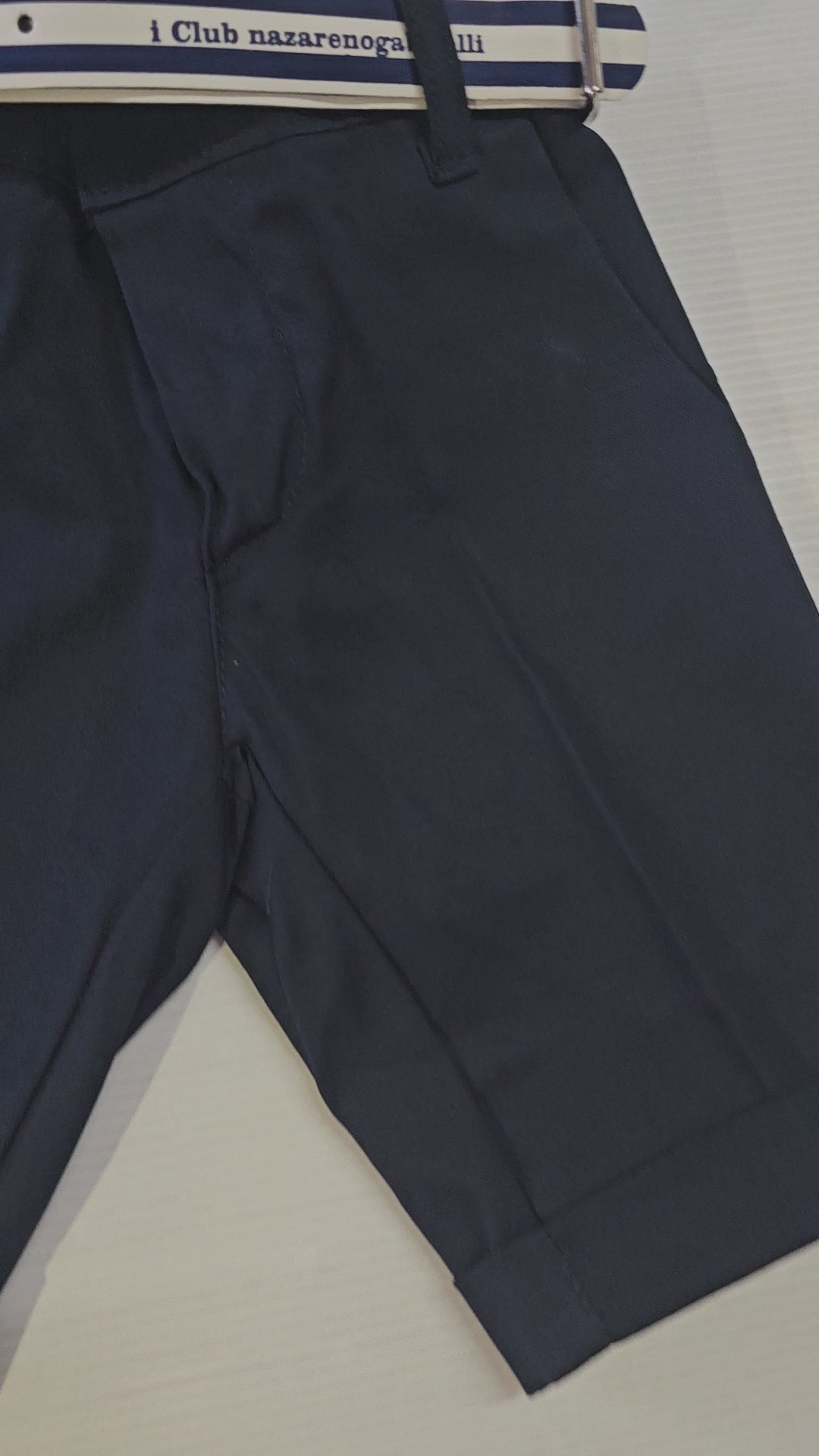 completo bambino ragazzo NAVY NAZARENO GABRIELLI composto da camicia mezza manica in cotone con gilet e papillon e pantaloncino con cintura linea cerimonia