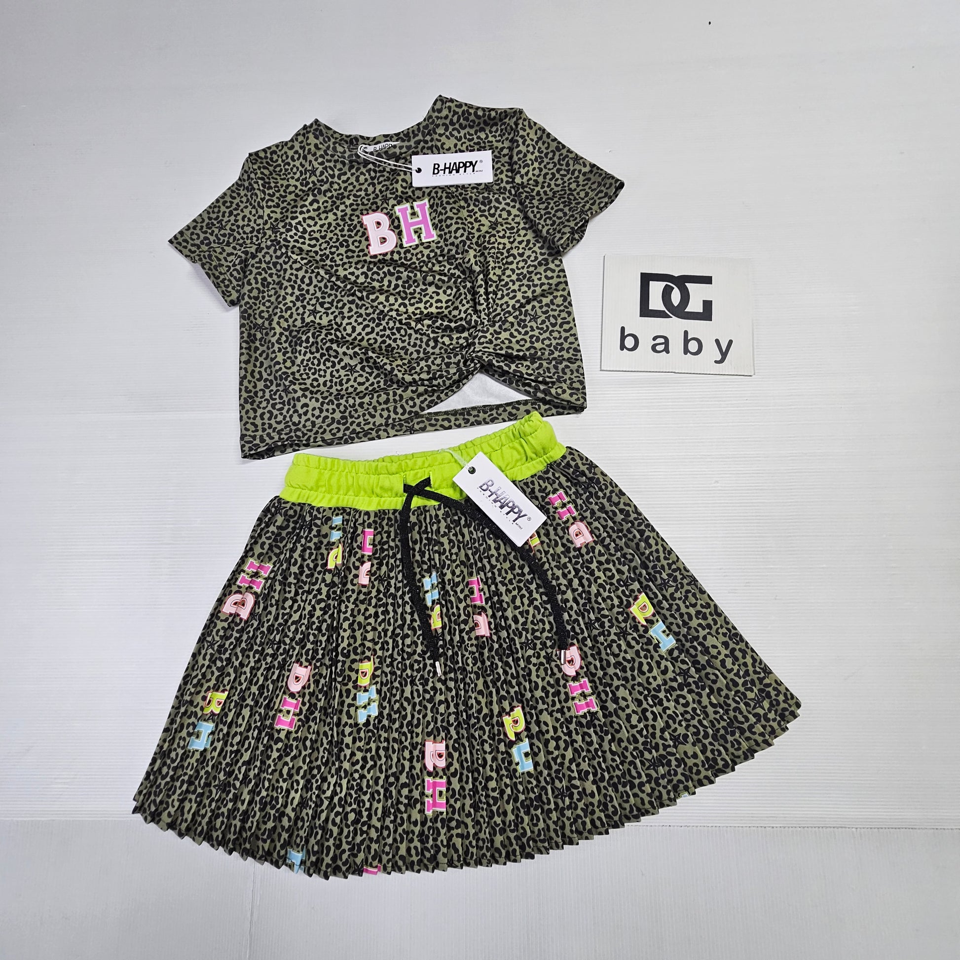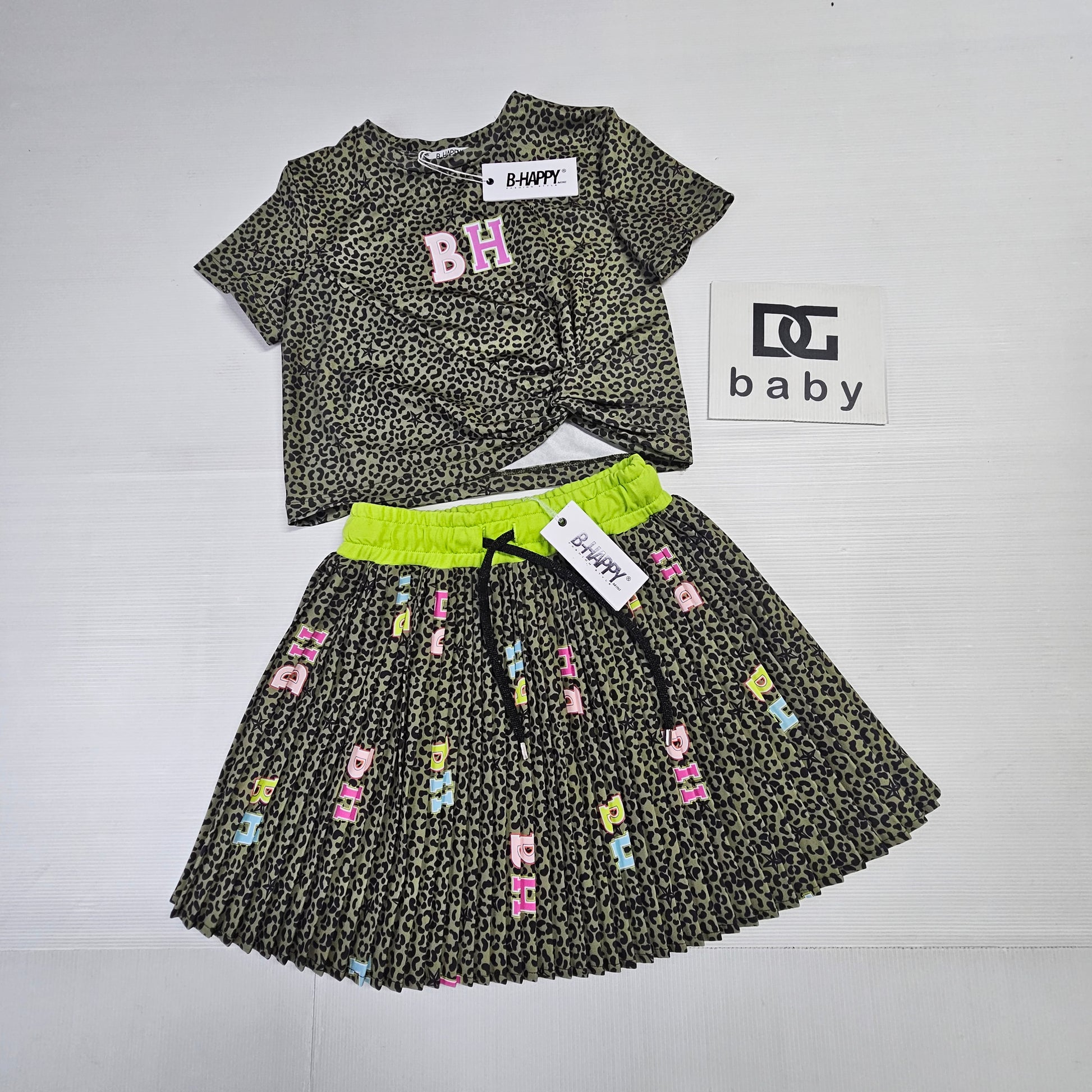 completo bambina ragazza BHM maglietta mezza manica e gonnellina con elastico in vita fantasia