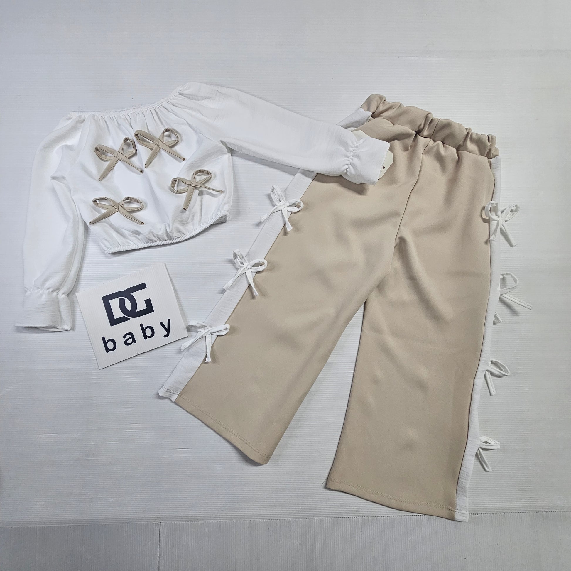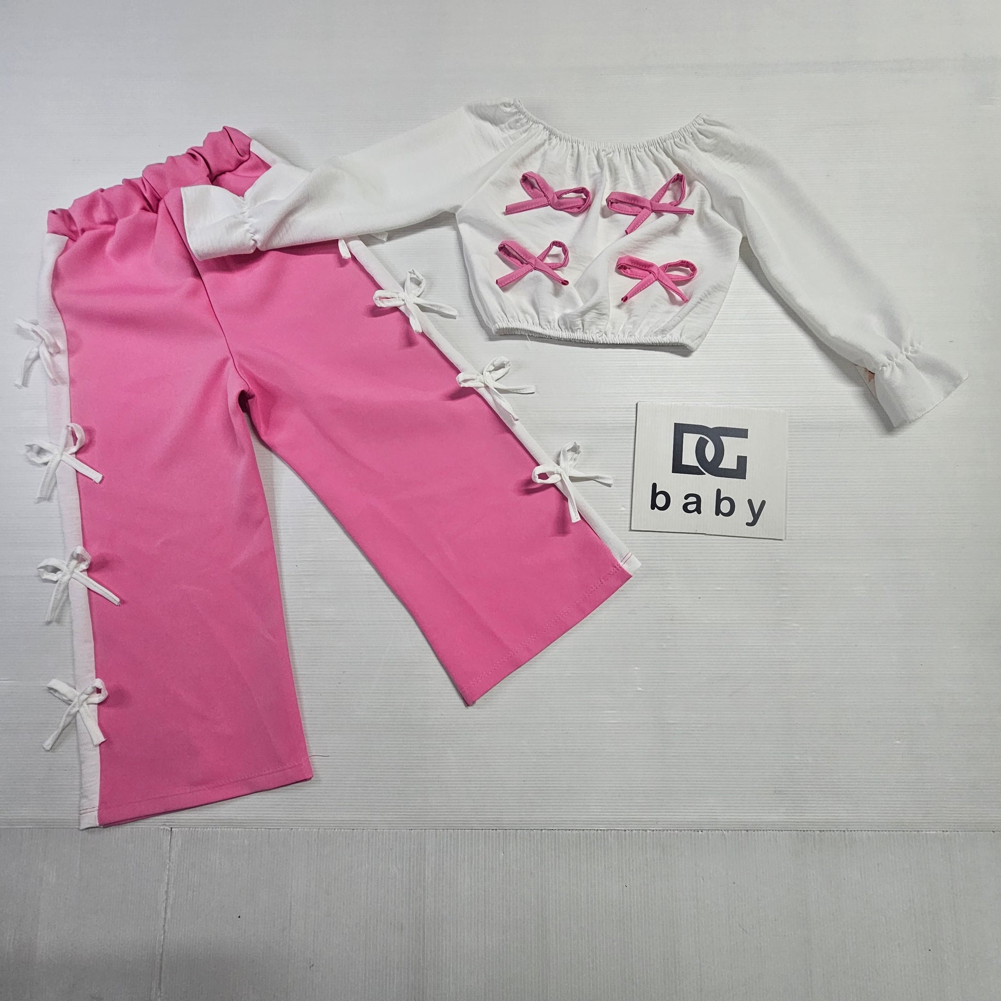 completo bambina ragazza QUATTRO FIOCCHI con felpa crop con cappuccio e pantatuta con fiocchettI nei lati