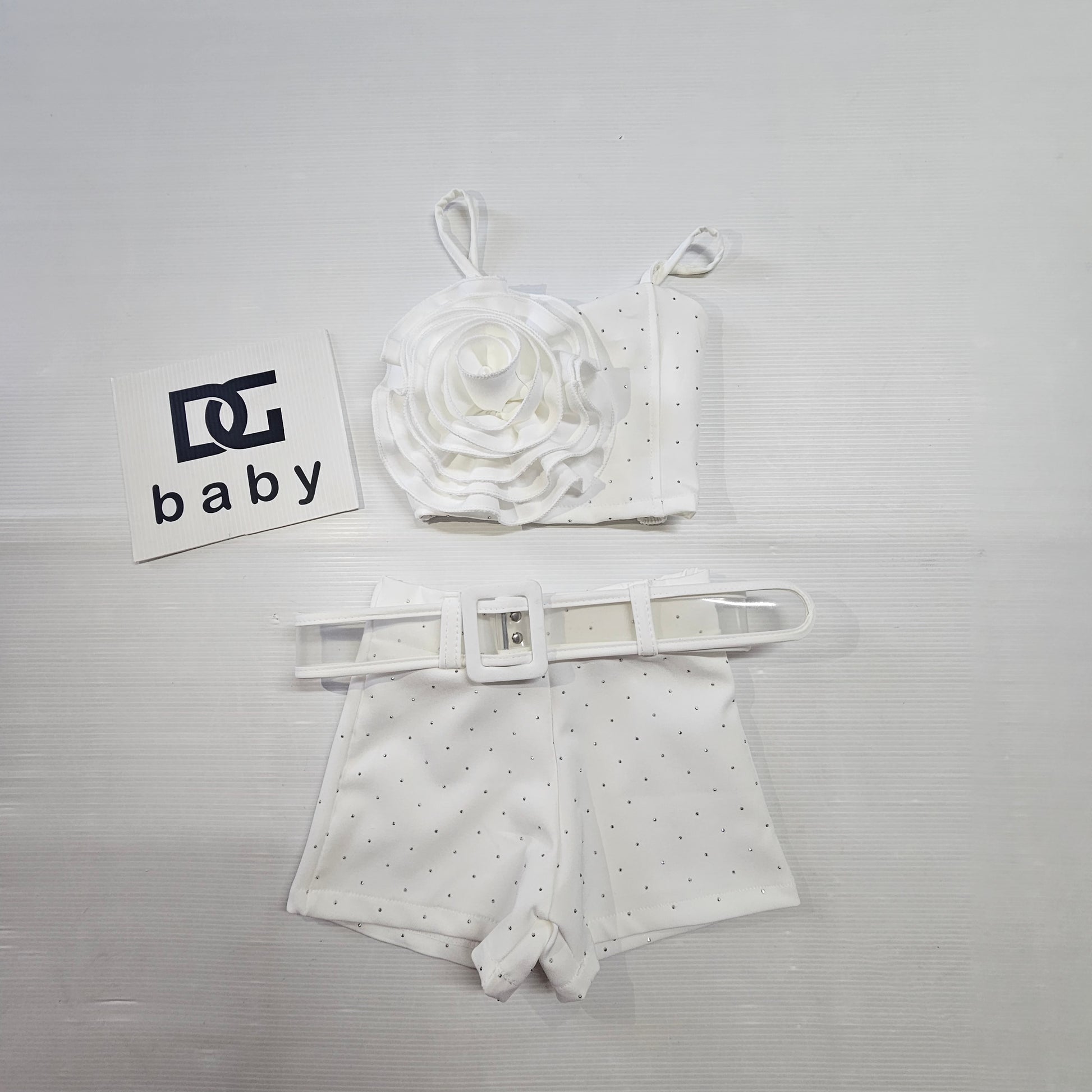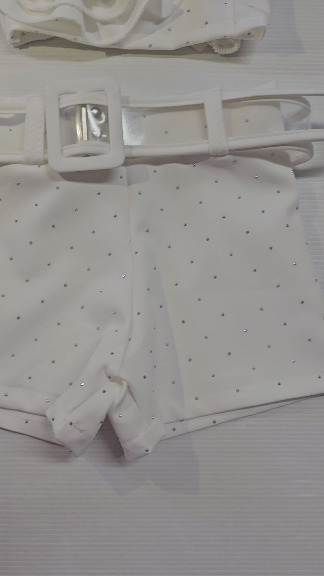 completo bambina ragazza ROSELLONE GIRL composto da canotta spallina crop e pantaloncino con strass e cintura
