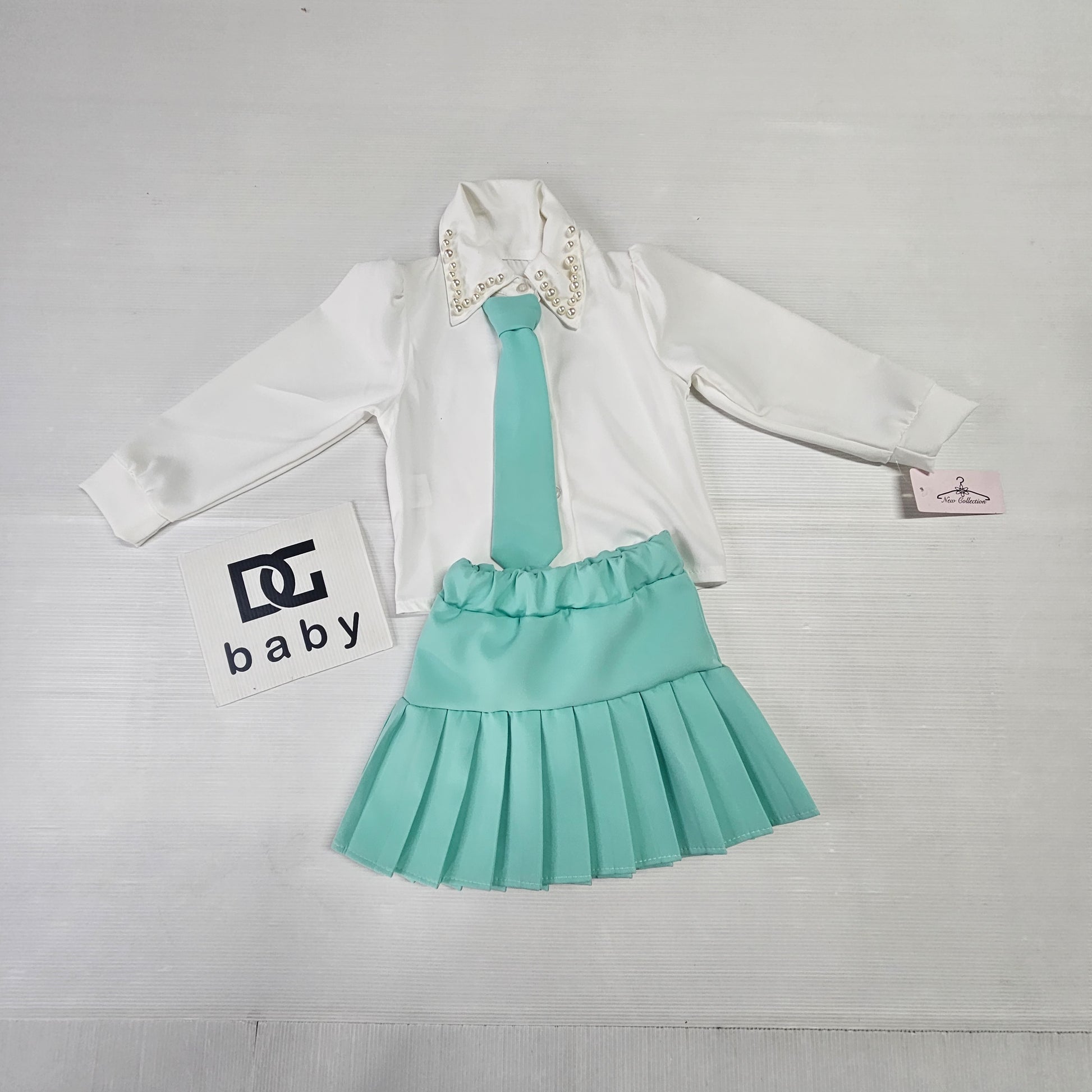 completo neonata TIFFANY CRAVATTA composto da camicia con cravatta e gonnellina con pieghe