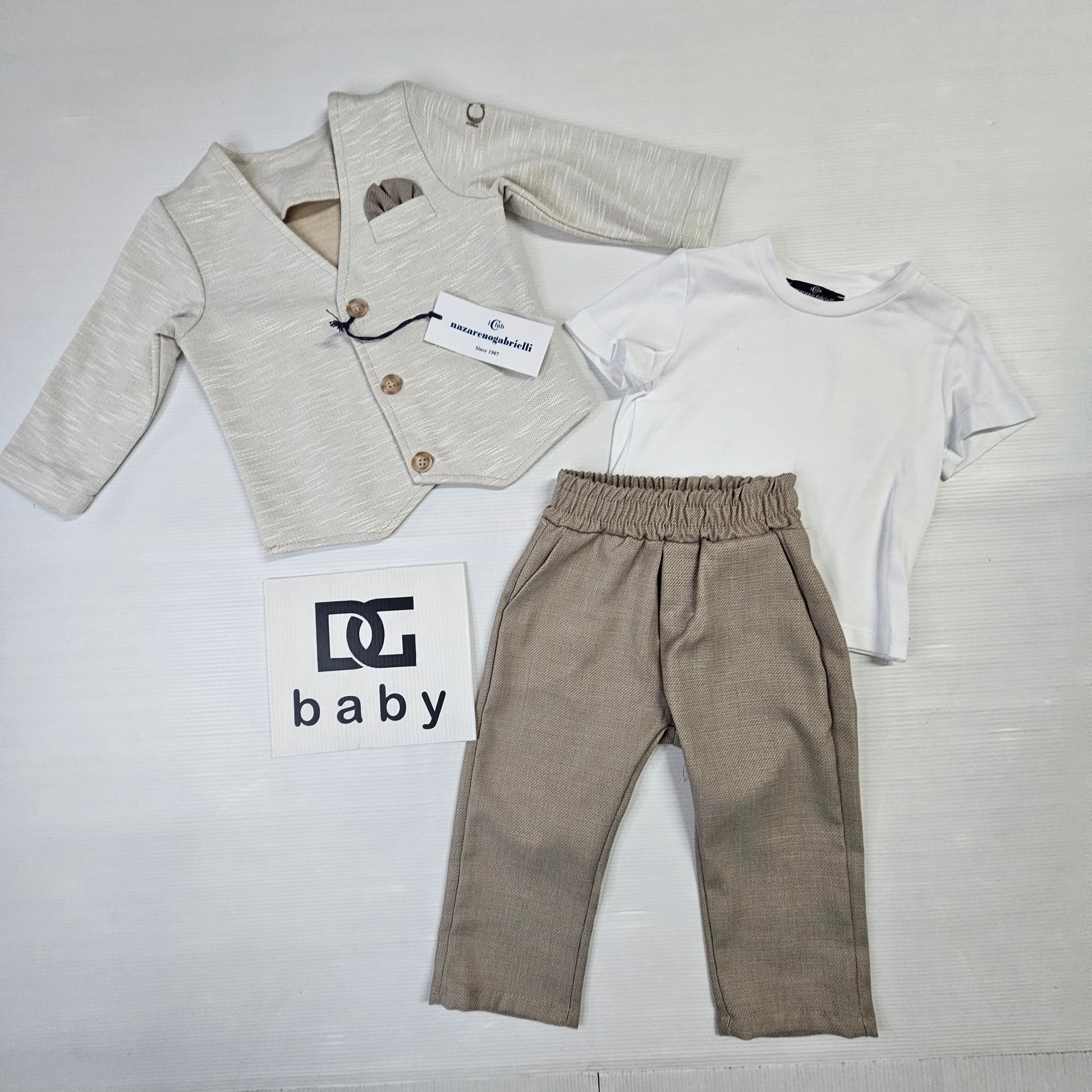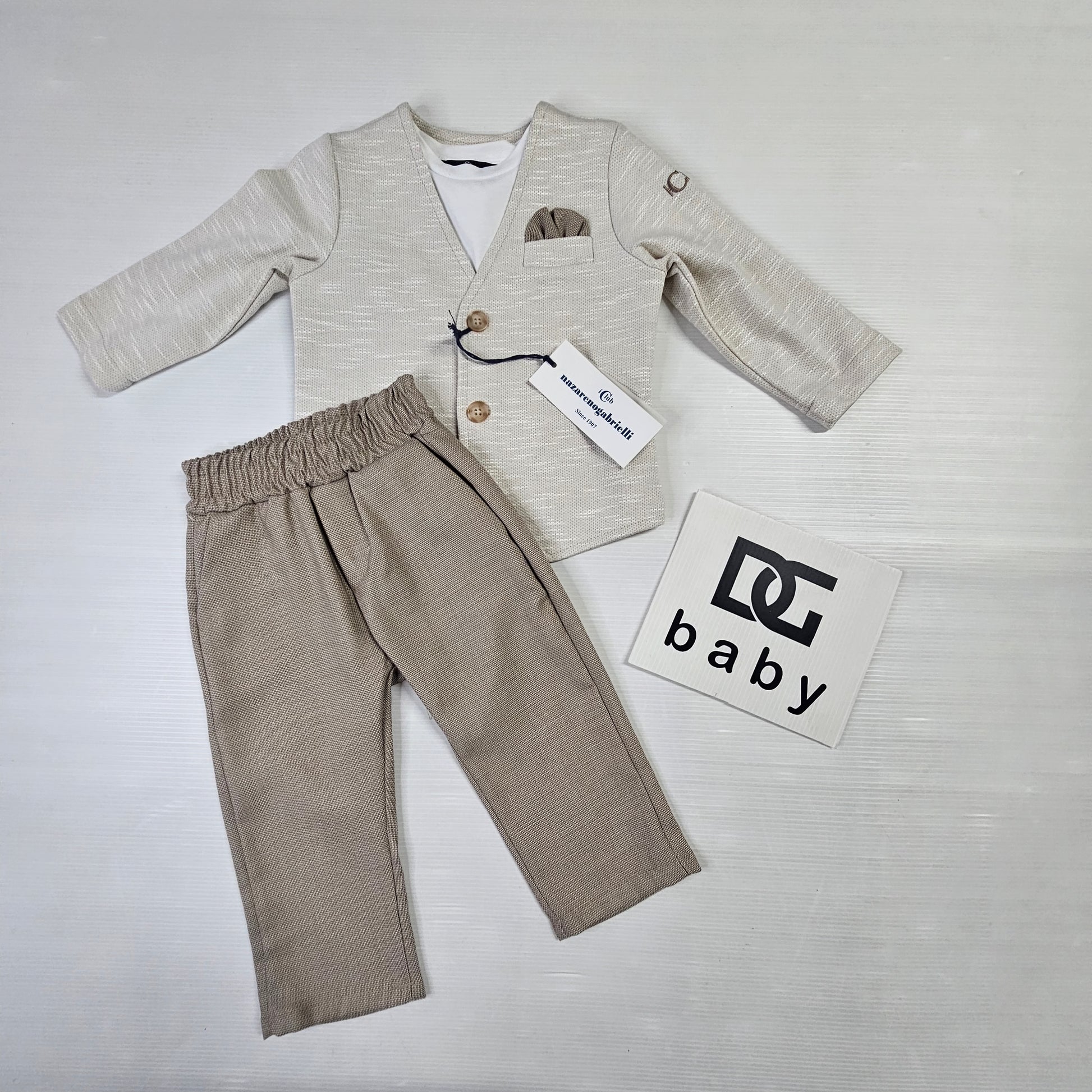 completo neonato SAGARI da cerimonia composto da pantalone in cotone , maglietta mezza manica in cotone e giacca NAZARENO GABRIELLI