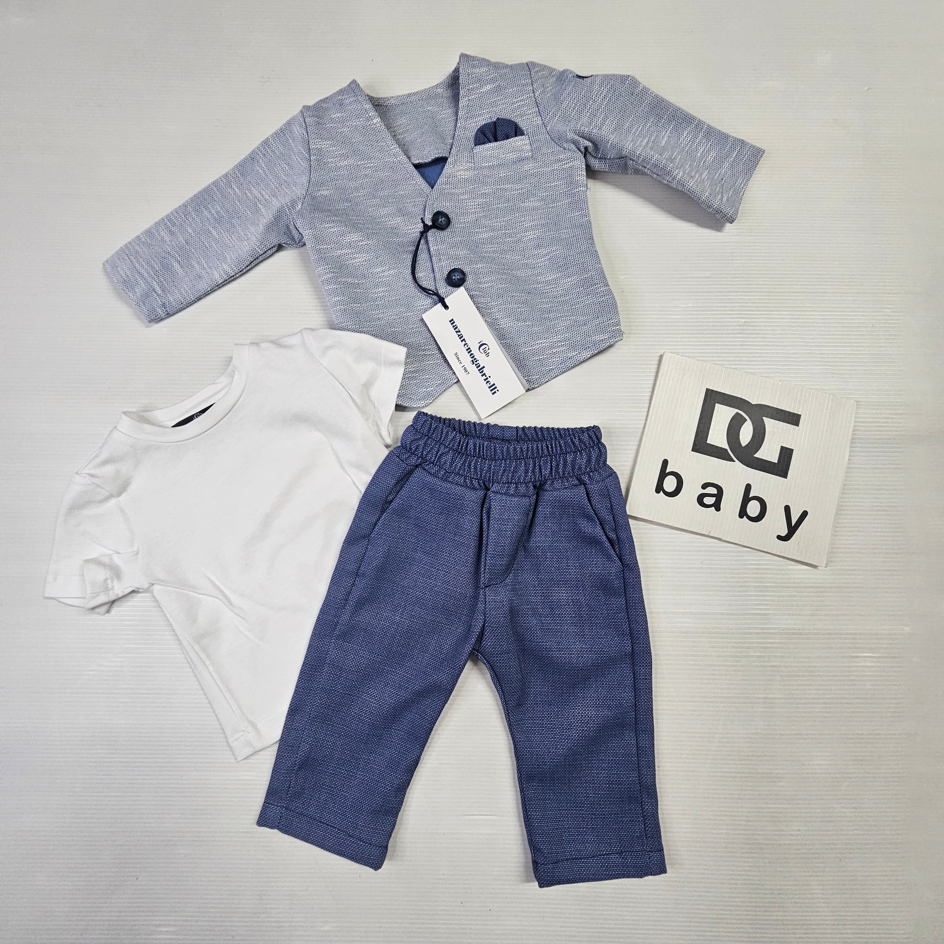 completo neonato AZZURRO da cerimonia composto da pantalone in cotone , maglietta mezza manica in cotone e giacca NAZARENO GABRIELLI