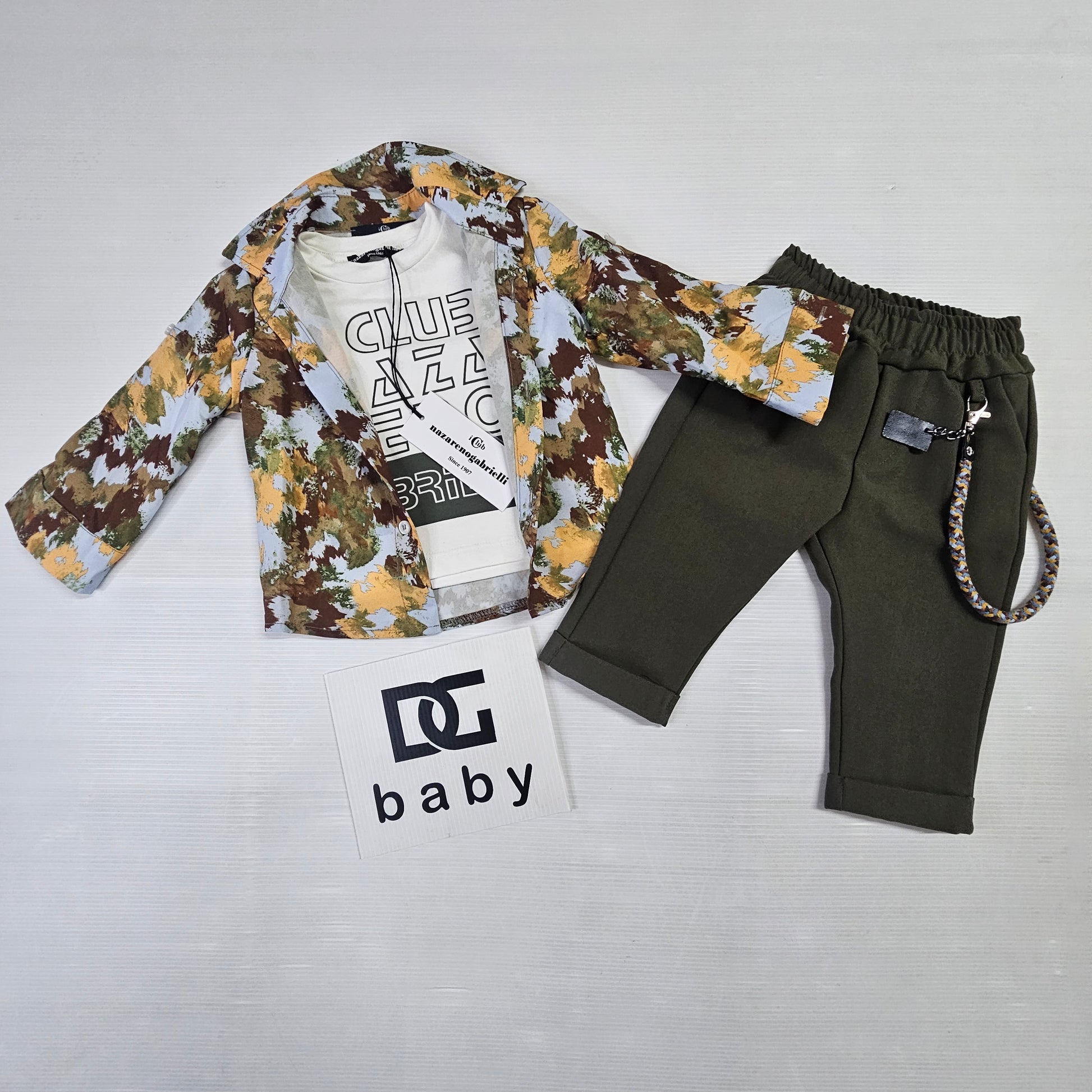 completo neonato DUBAI da cerimonia composto da pantalone in cotone , maglietta mezza manica in cotone e camicia a fantasia NAZARENO GABRIELLI