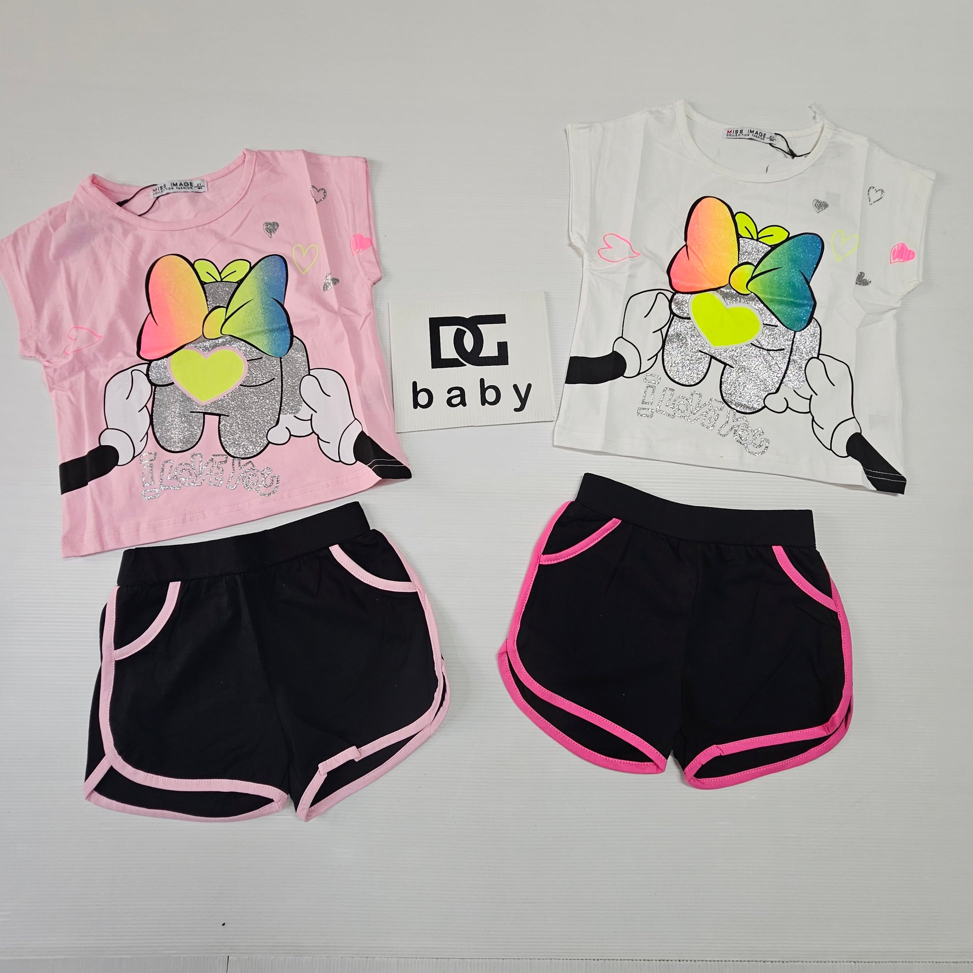 completo bambina ragazza I LOVE YOU con maglietta mezza manica e pantaloncino tutto in cotone