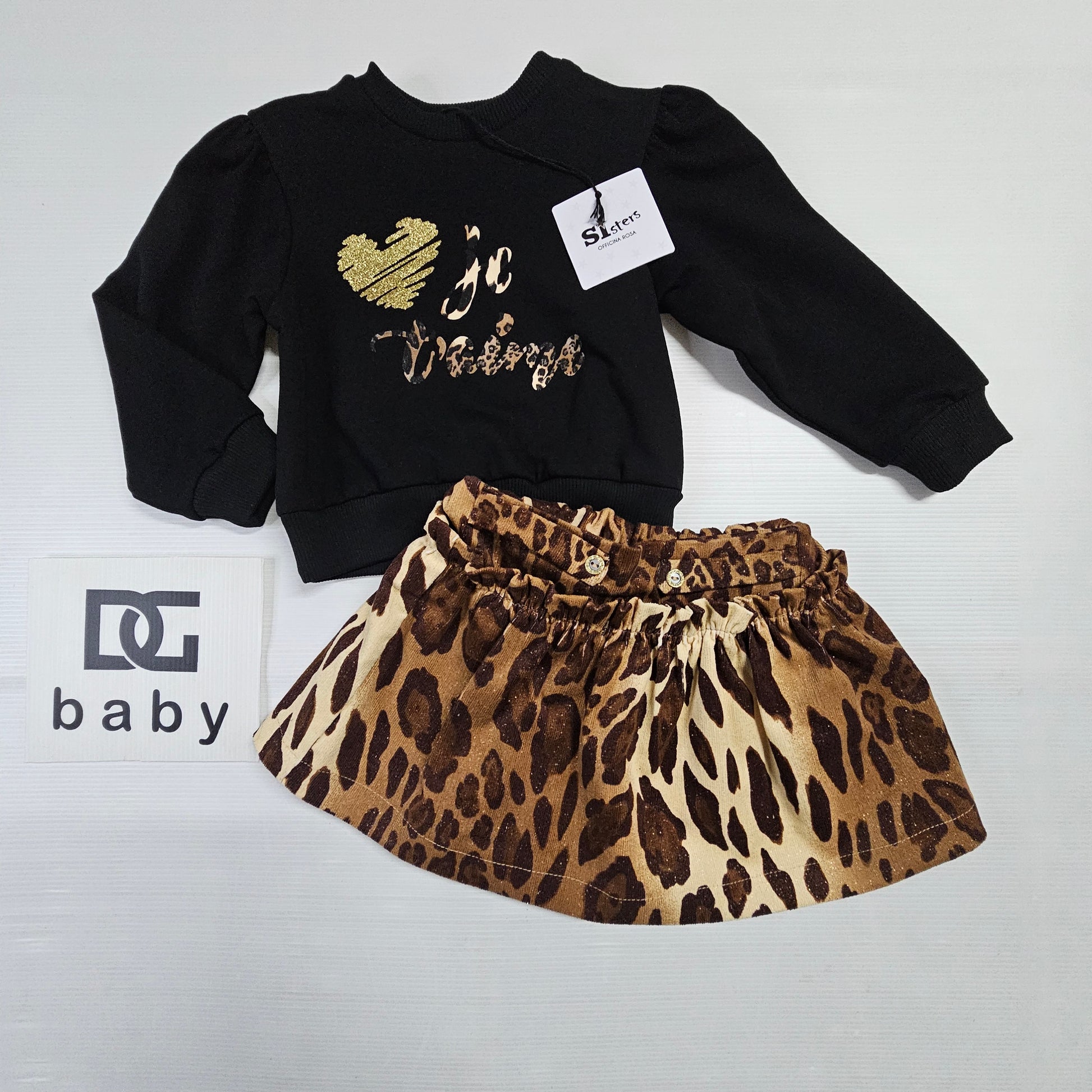 completo bambina SISTER MACULATO con felpa girocollo e gonnellina con elastico