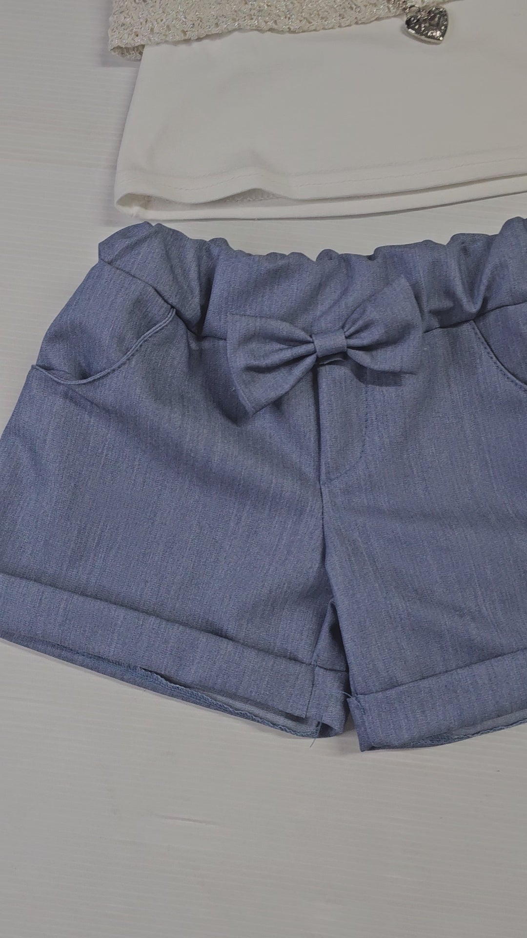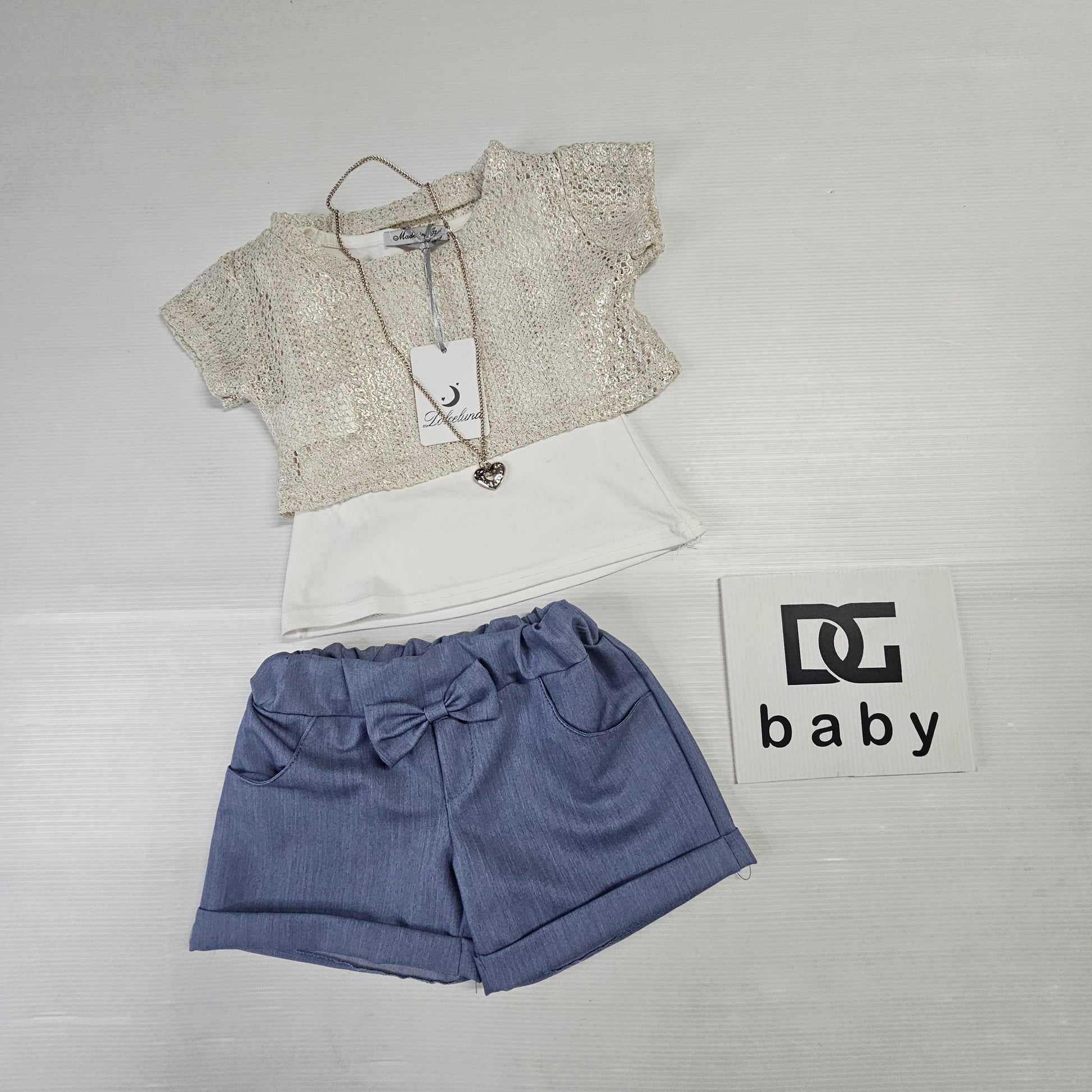 completo bambina DOLCELUNA MARA composto da maglietta crop mezza manica con top e pantaloncino con elastico in vita
