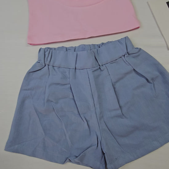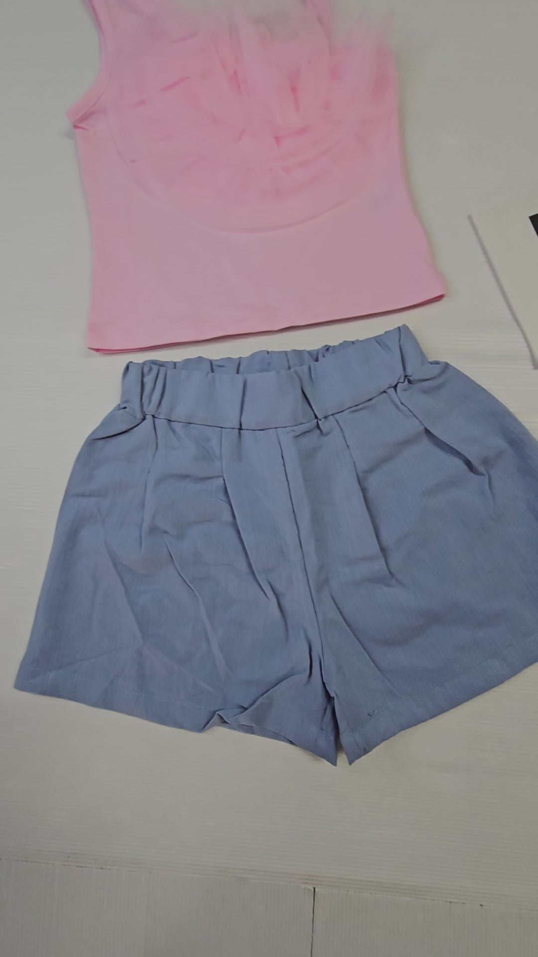 completo bambina ragazza MONOSPALLA ROSA con canotta e pantaloncino in cotone