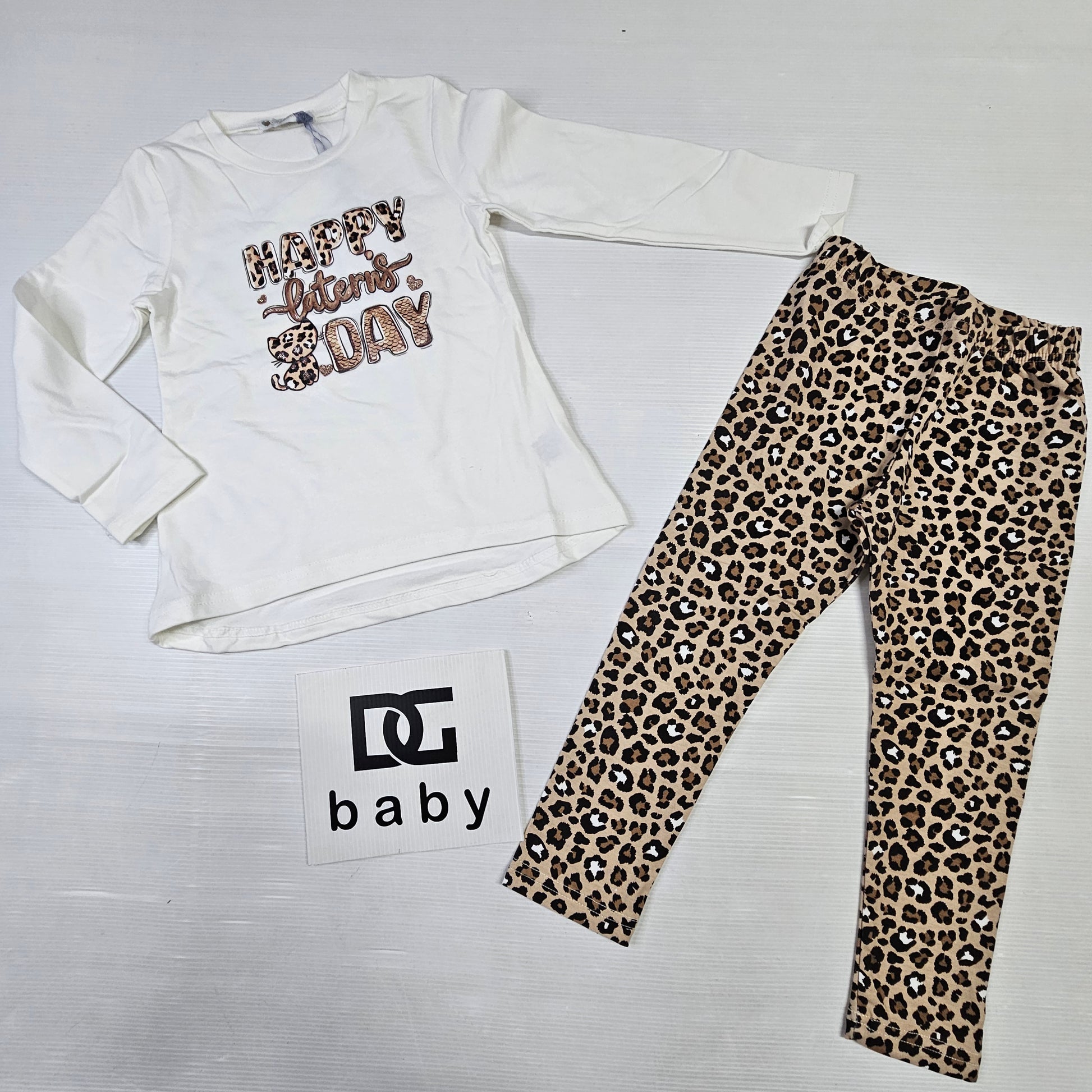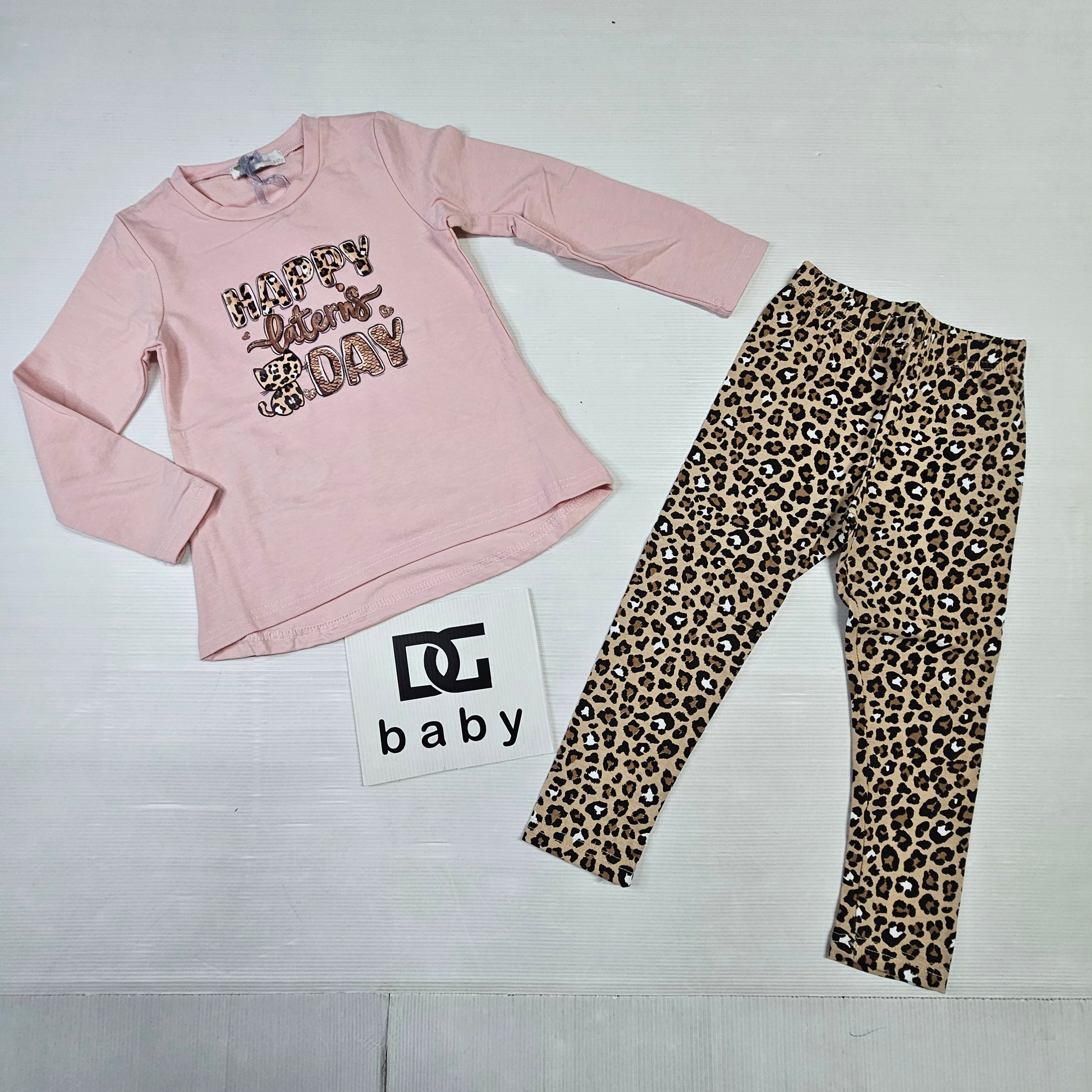 completo bambina ragazza HAPPY DAY con maglietta manica lunga e leggins fantasia tutto caldo cotone