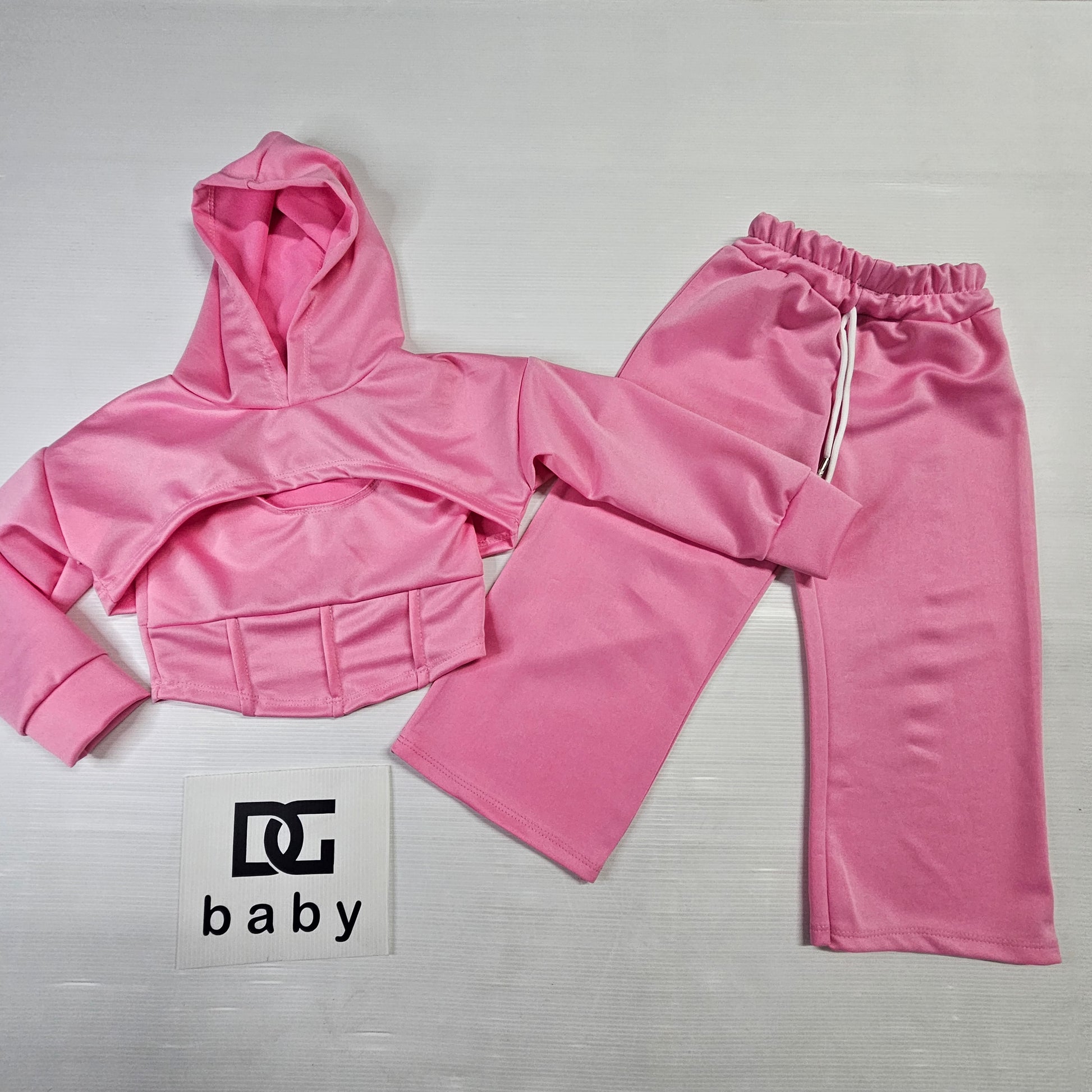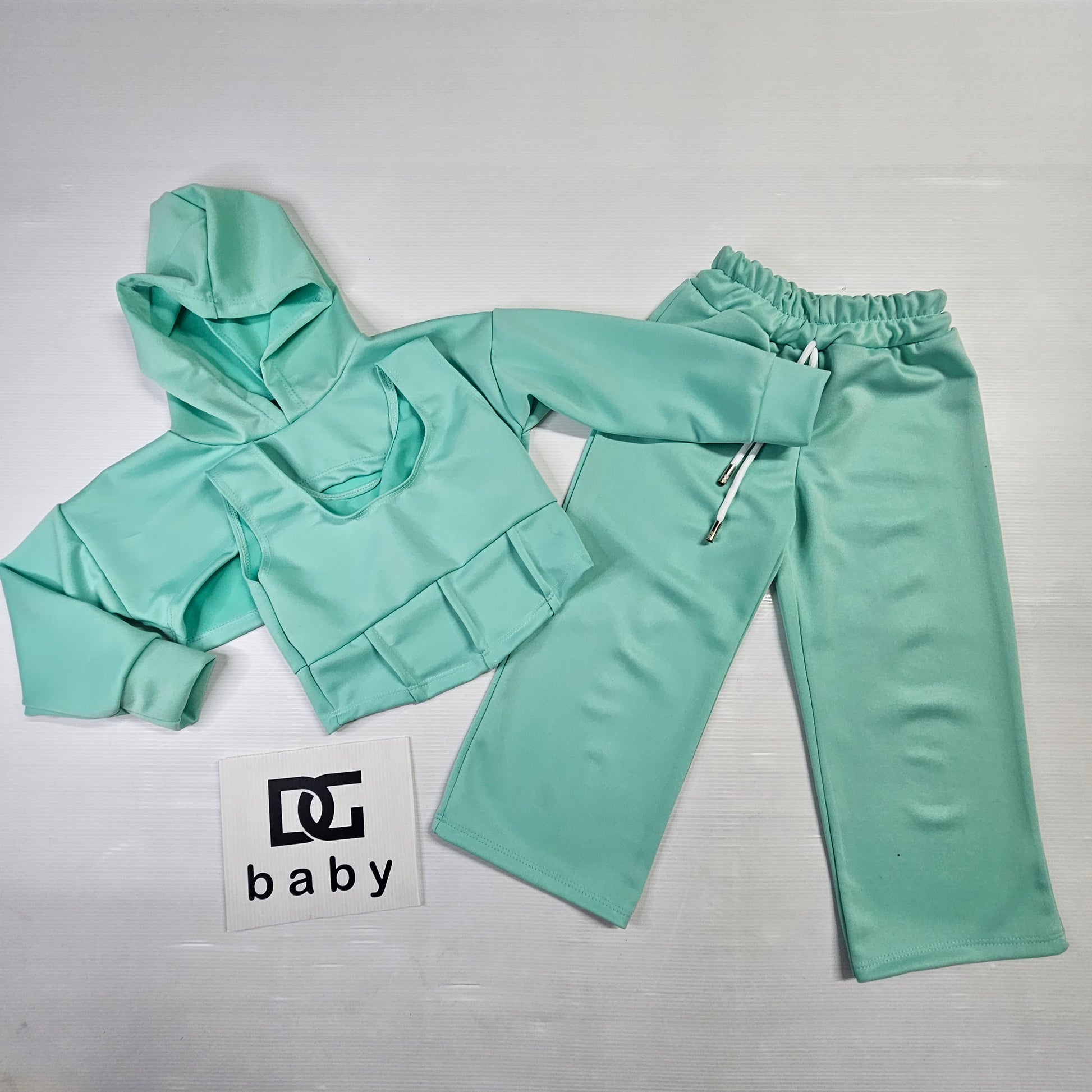 completo bambina ragazza CORPETTO TRE PEZZI composto canotta spalla larga corpetto, felpa cappuccio modello crop e pantapalazzo