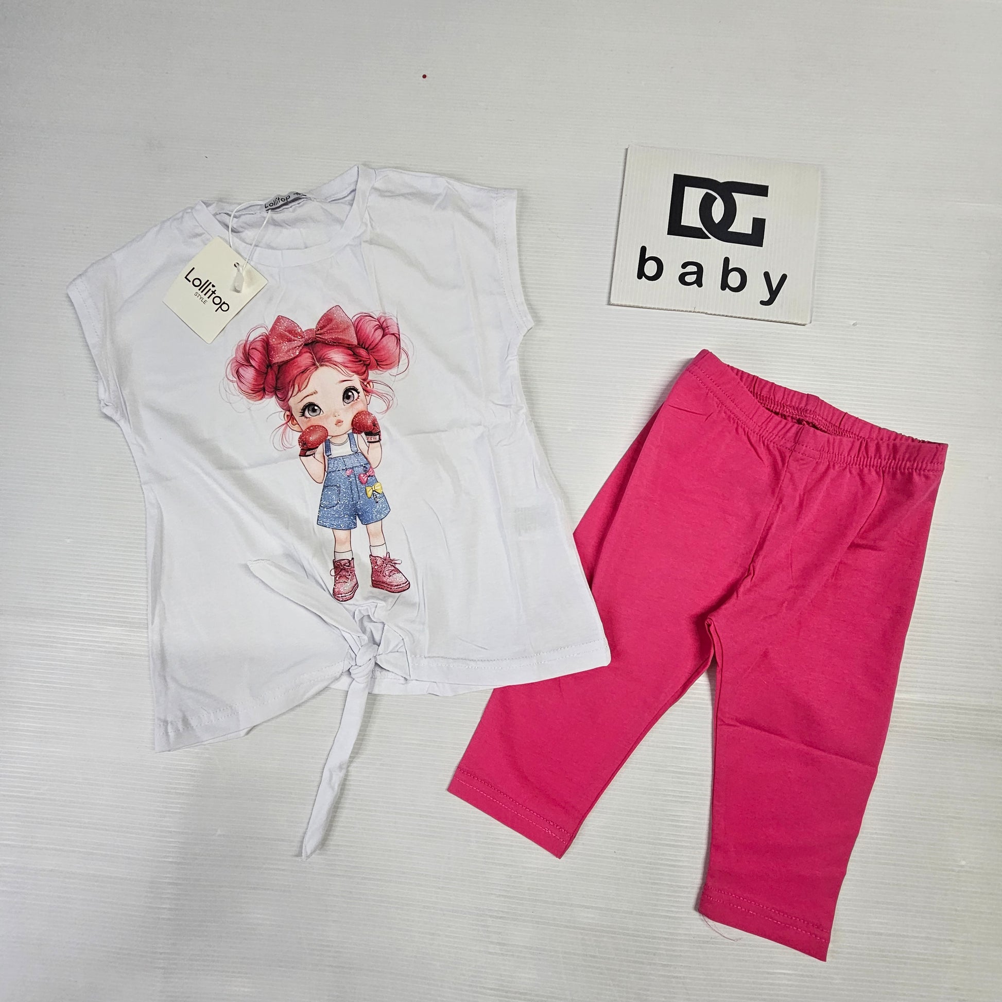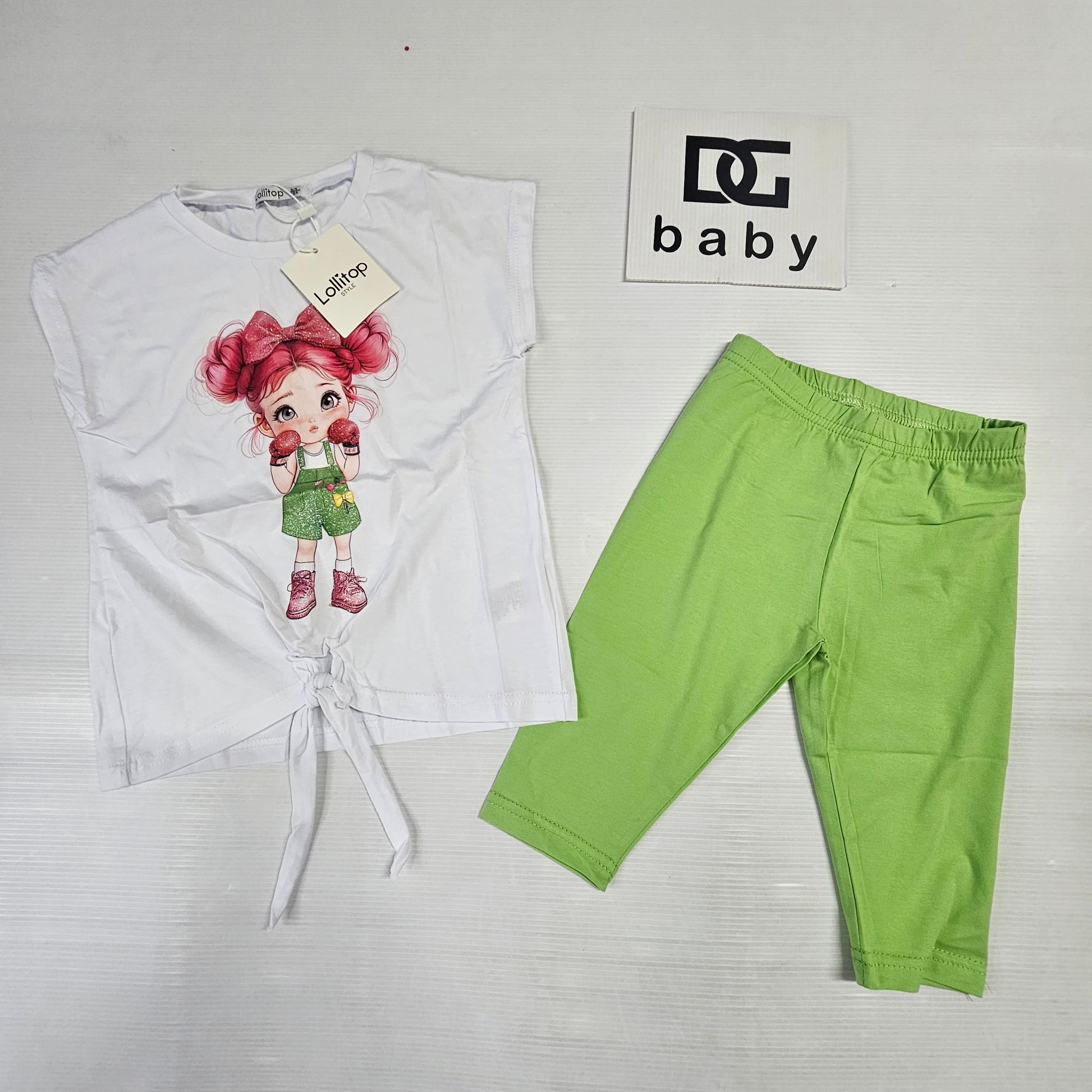completo bambina ragazza FANTASY LOLLY composto da maglietta manica corta in cotone e pinocchietto