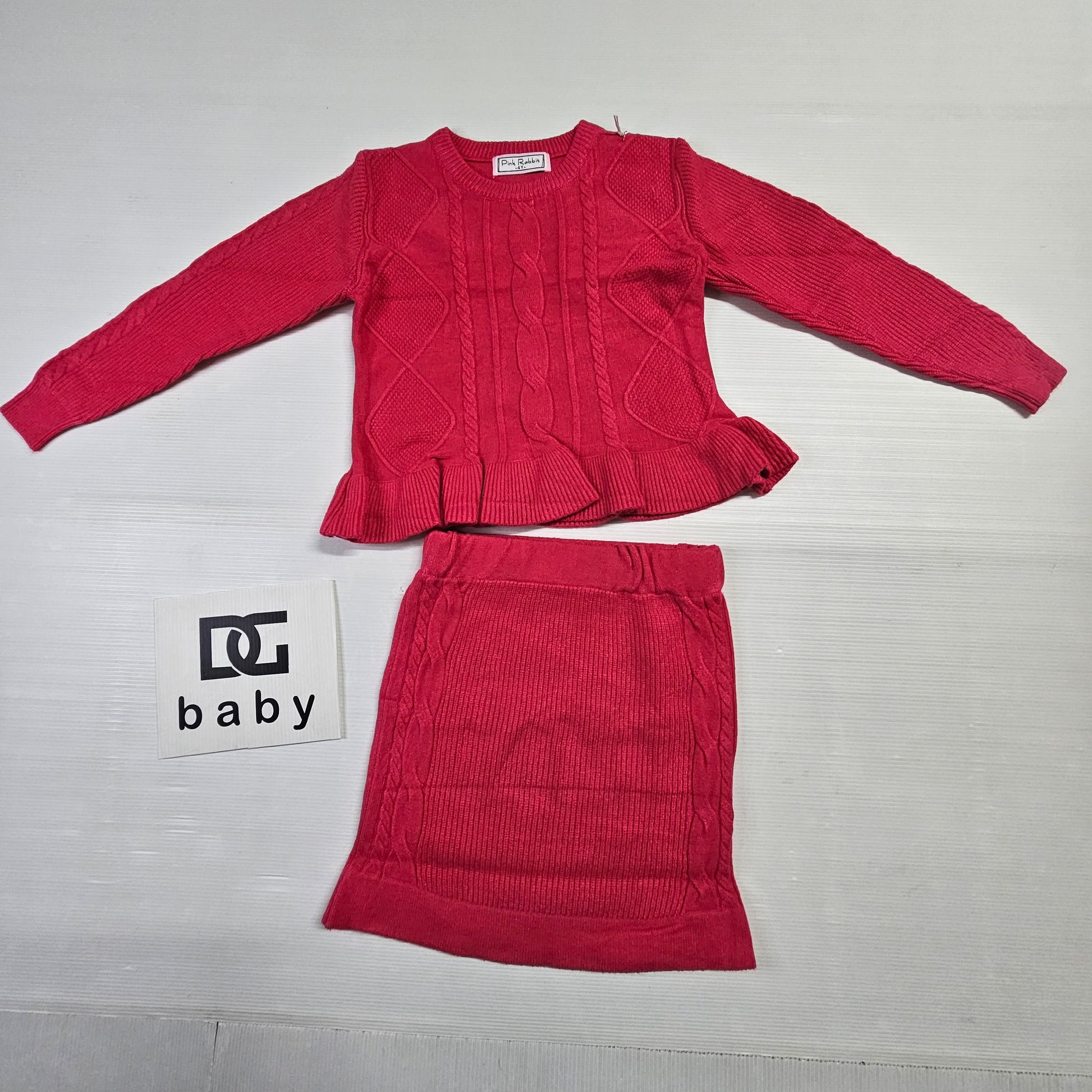 completo bambina ragazza TRECCE coN maglietta girocollo  e gonna tutto in lana rasata