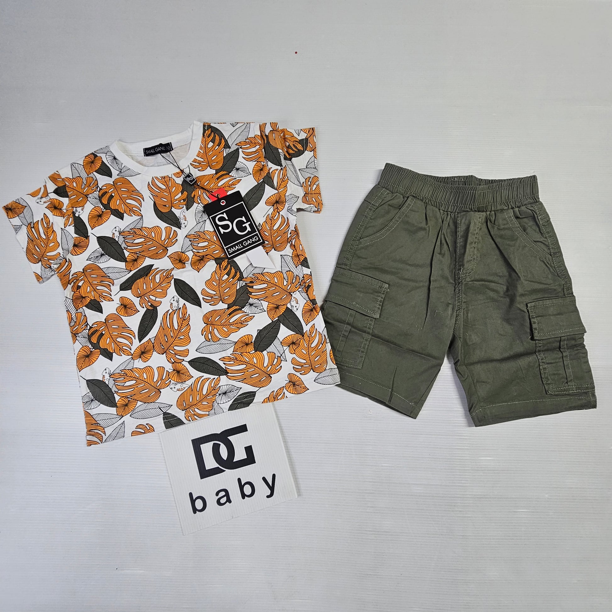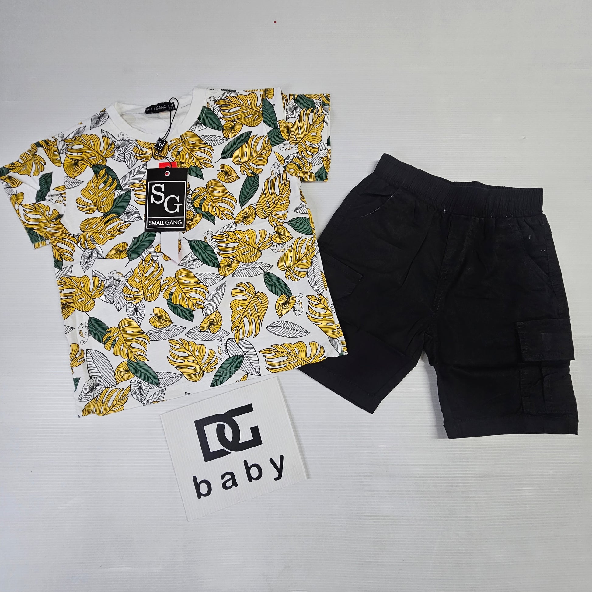 completo bambino FOGLIE SMALL GANG maglietta mezza manica e pantaloncino cargo