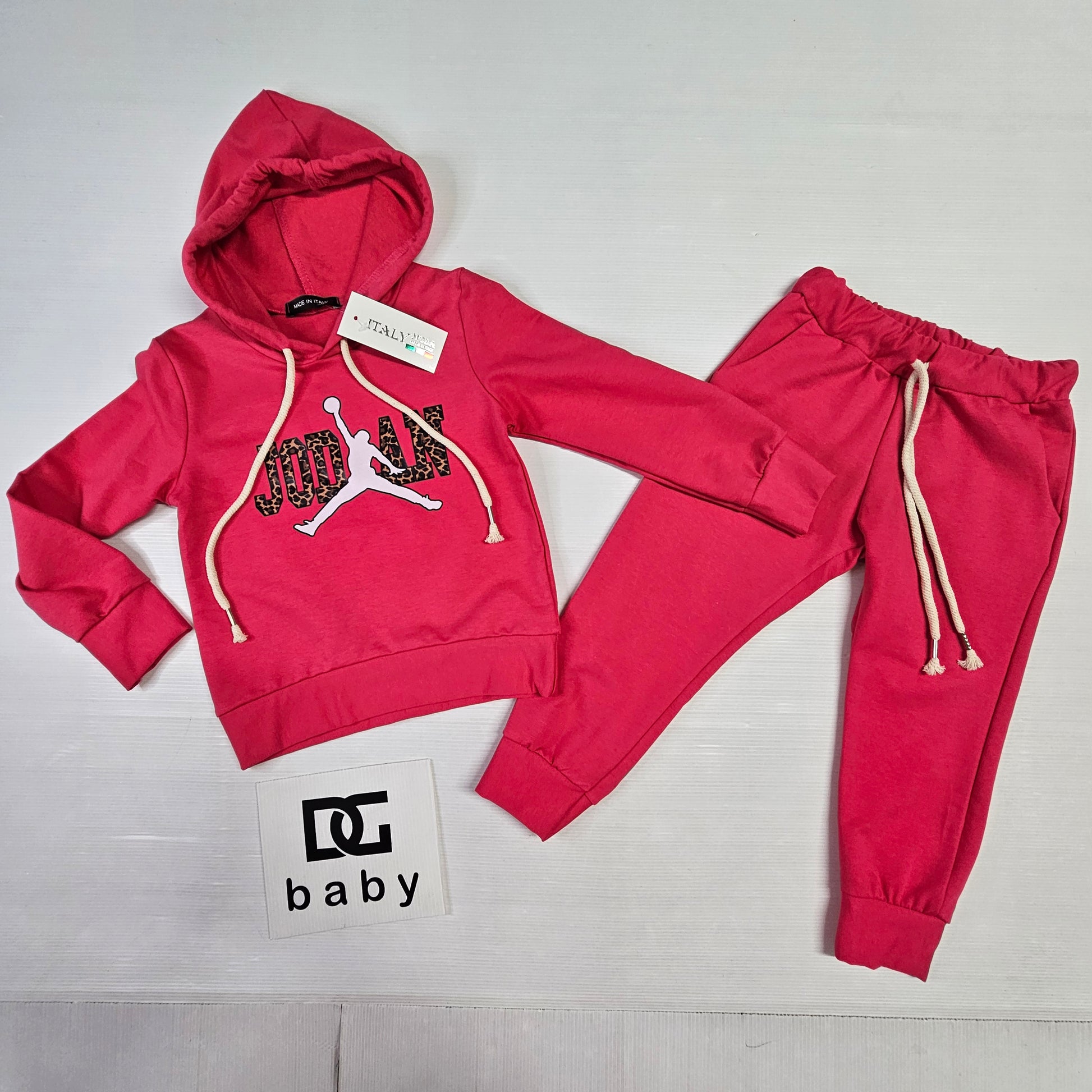 completo tuta bambina ragazza JODAN composto da felpa con cappuccio e pantatuta