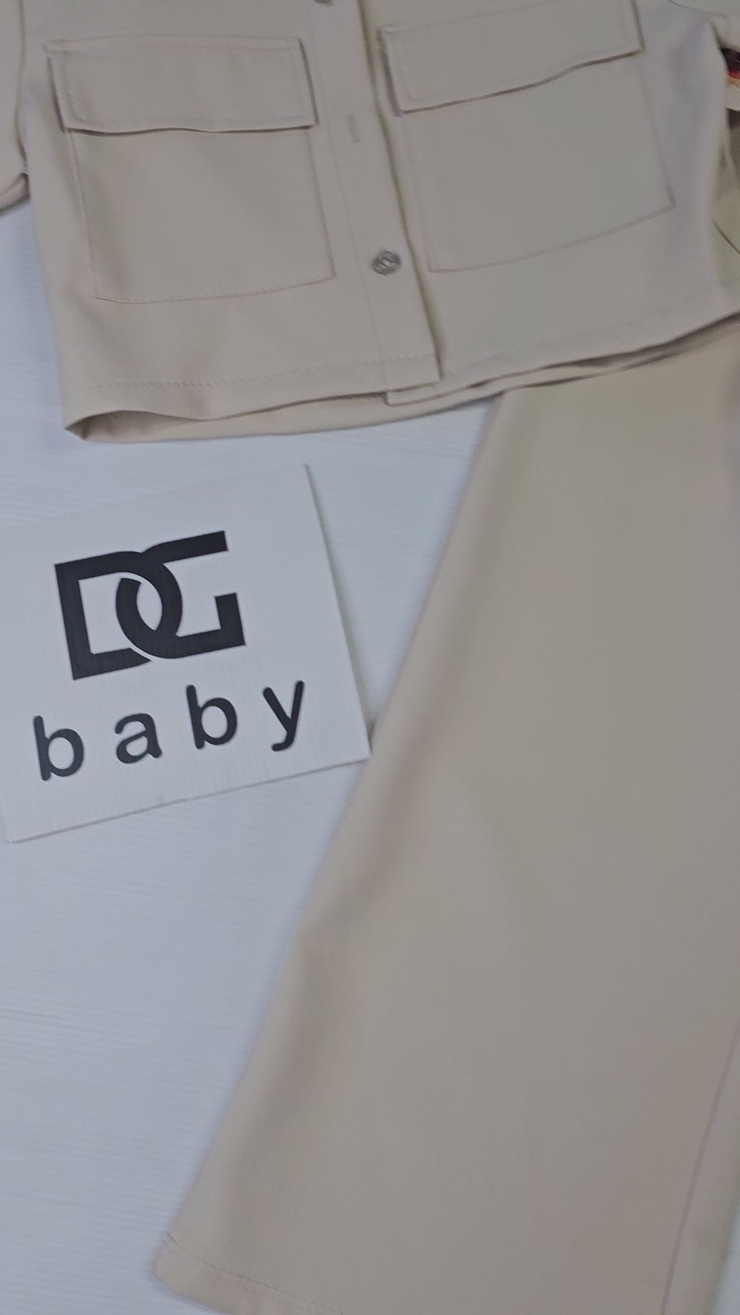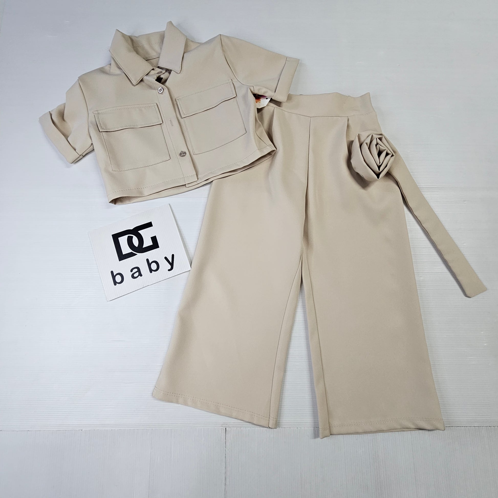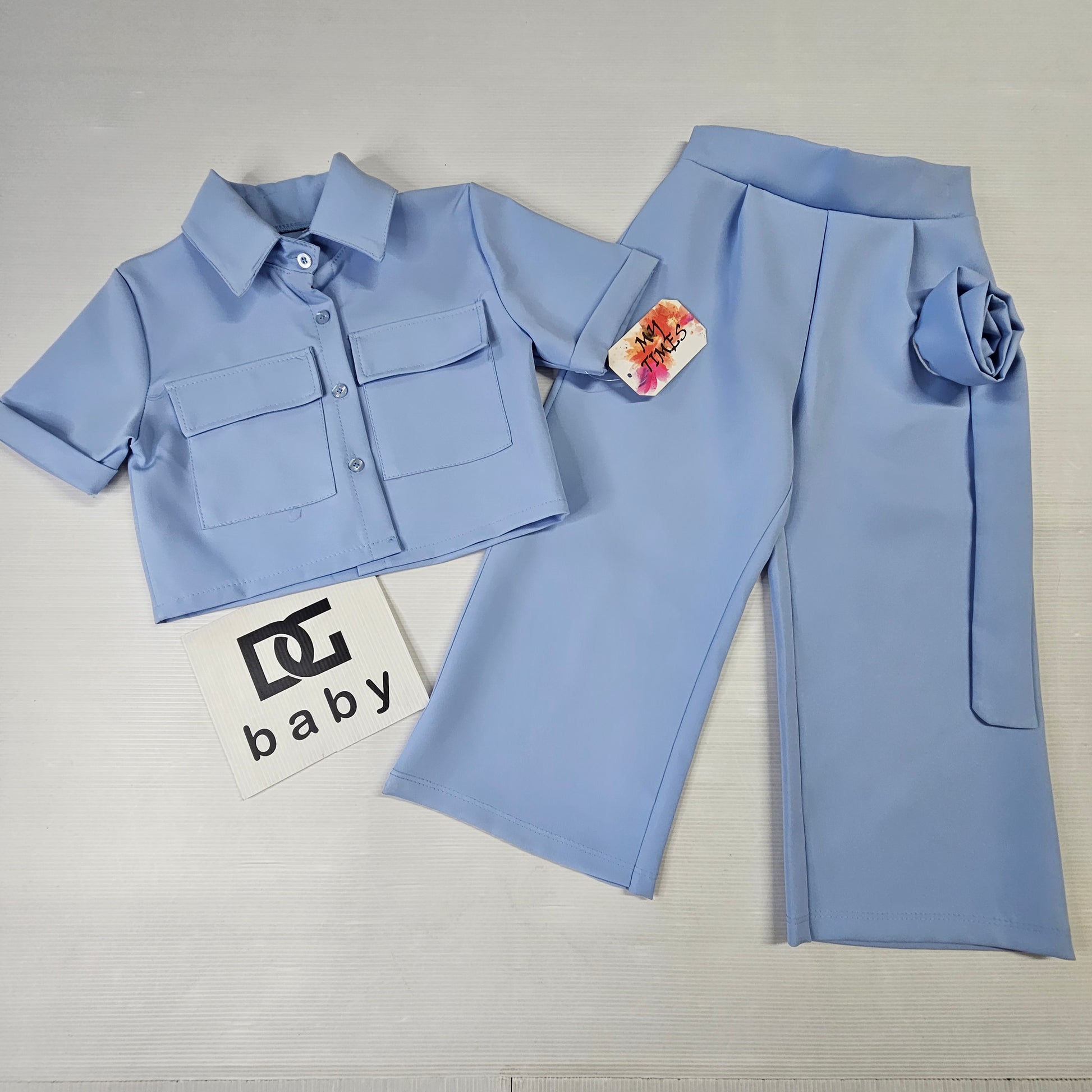 completo bambina ragazza MYTIMES GIRL composto da camicia mezza manica crop con tasconi applicati e pantapalazzo con rosa applicata