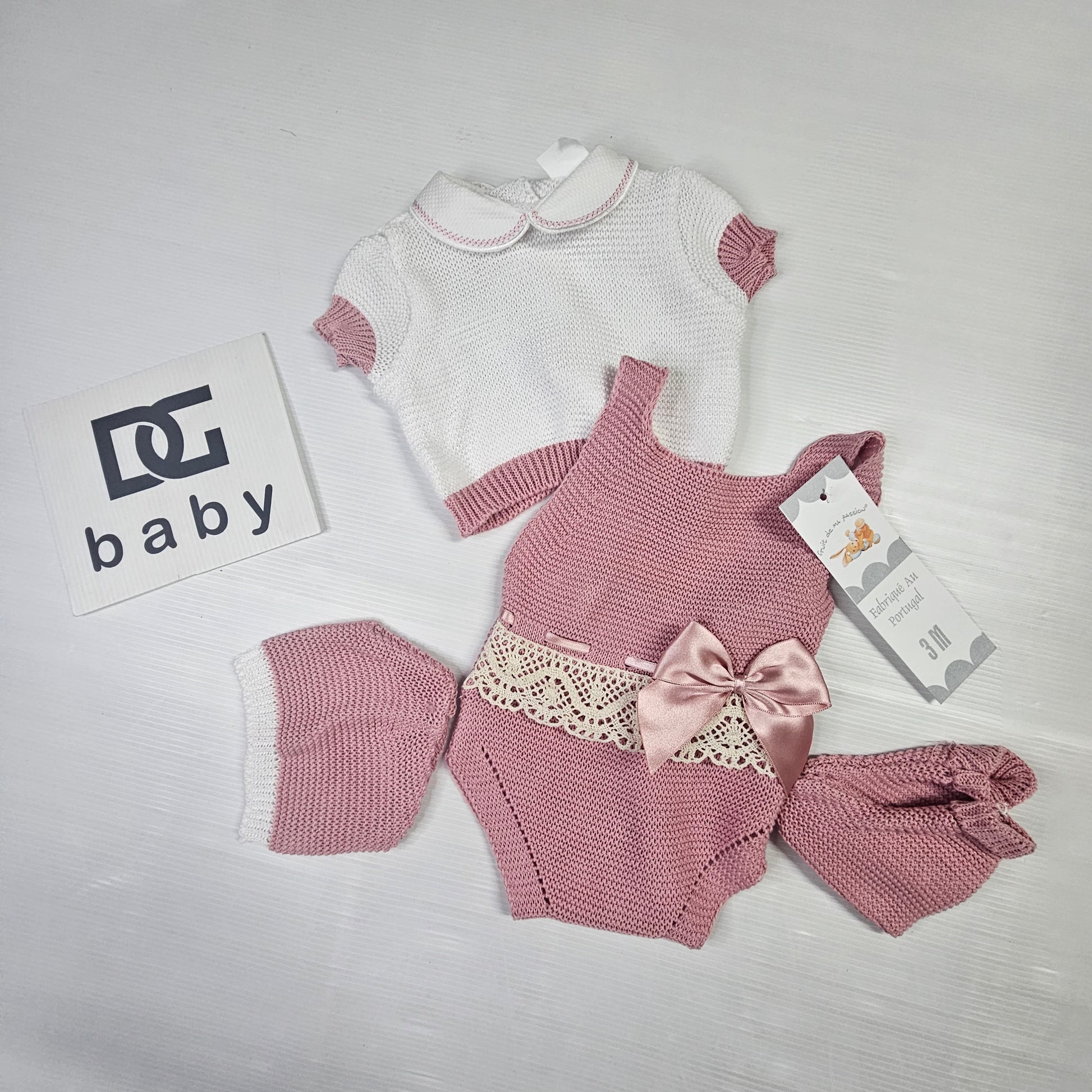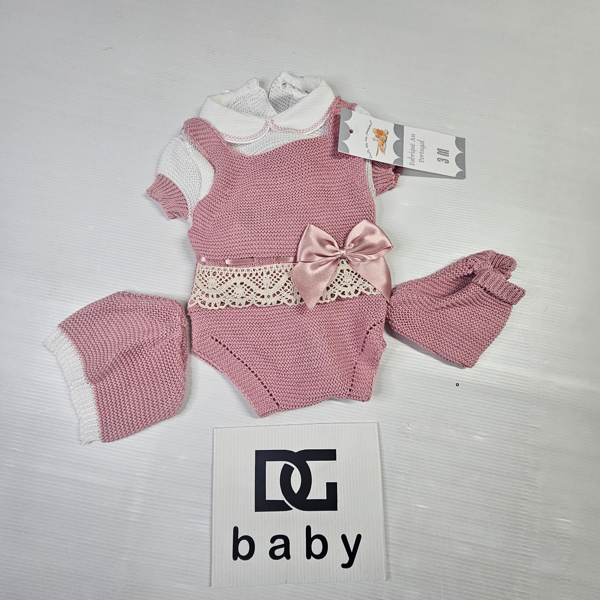 pagliaccetto neonata di filo CINZIA con maglietta mezza manica tutto in filo nuova collezione con cappellino e scarpine abbinate