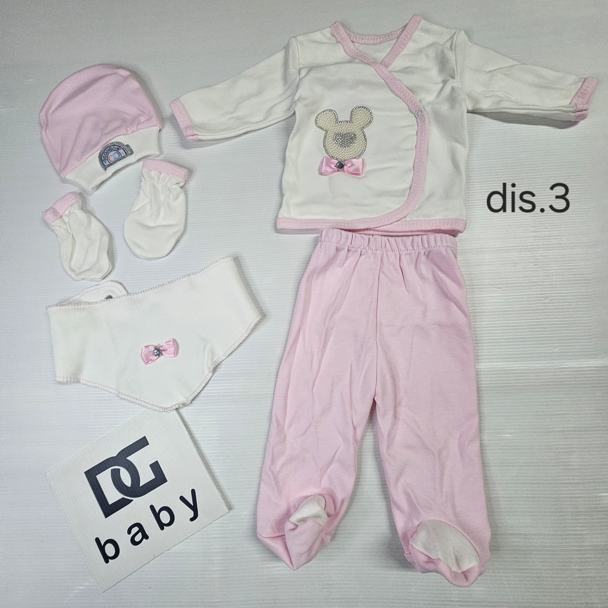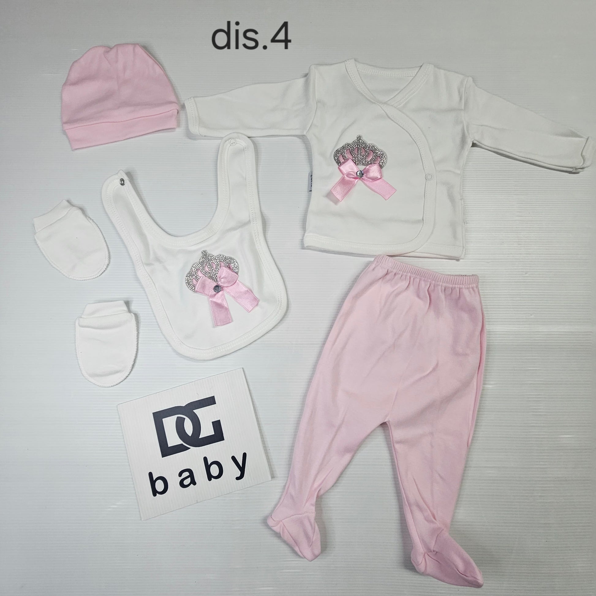 completo prima nascita 4PZ ROYAL composto da completo clinico bavetta miffole e cuffietta in cotone