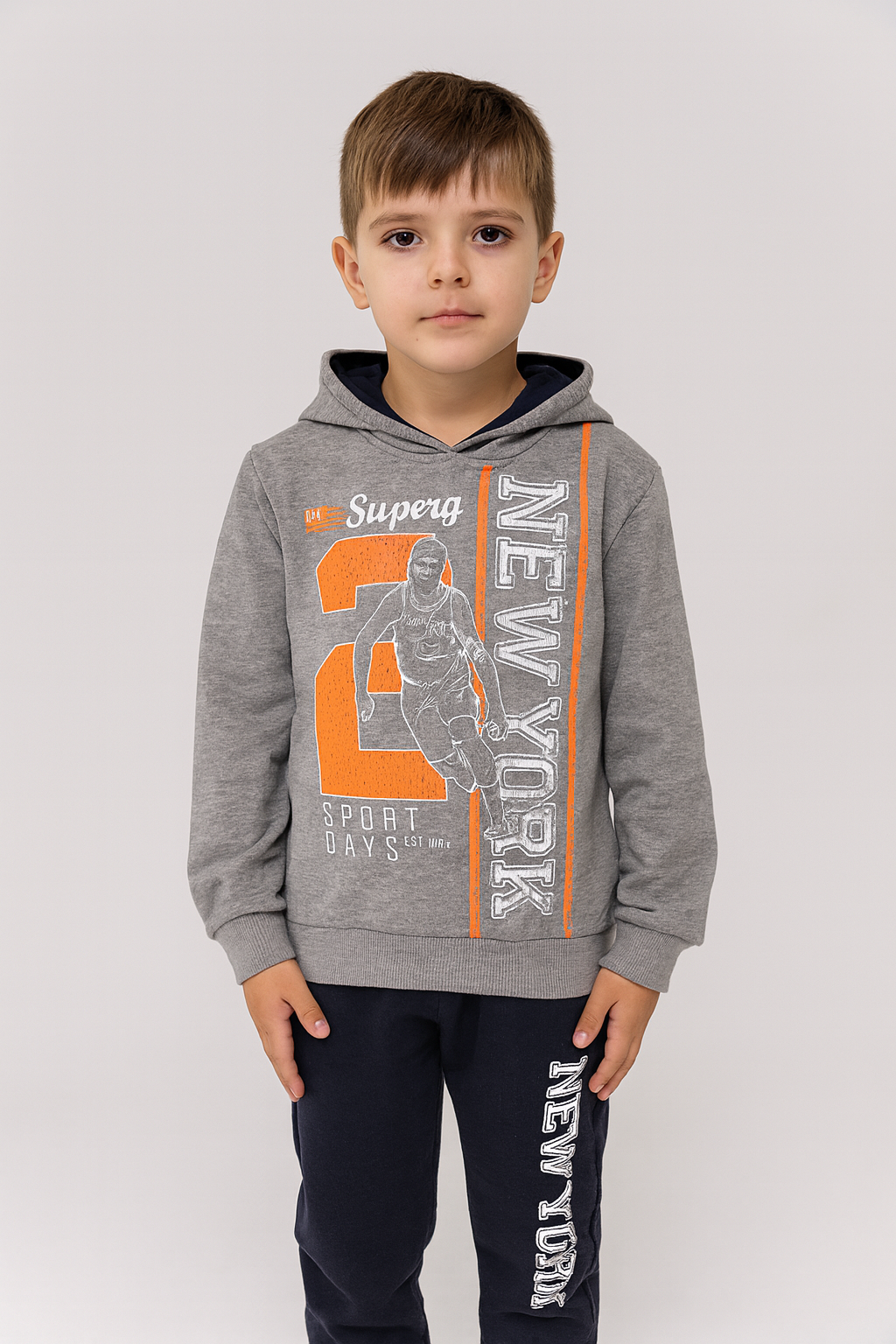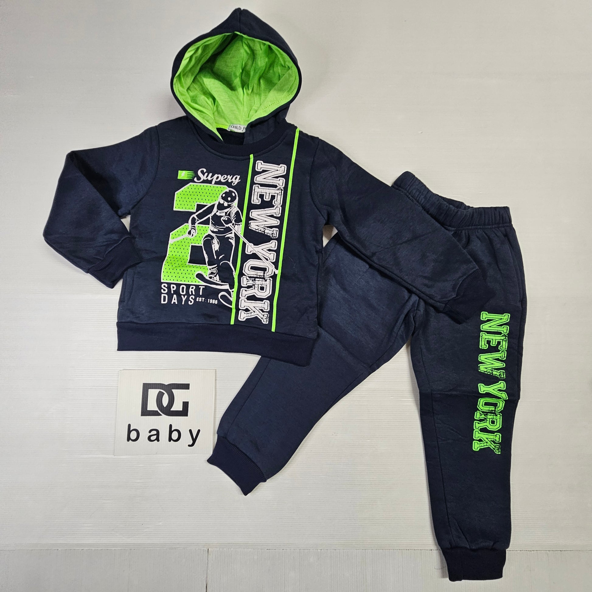 tuta bambino ragazzo NEW YORK FELPA con maglia cappuccio e pantatuta tutto in felpato
