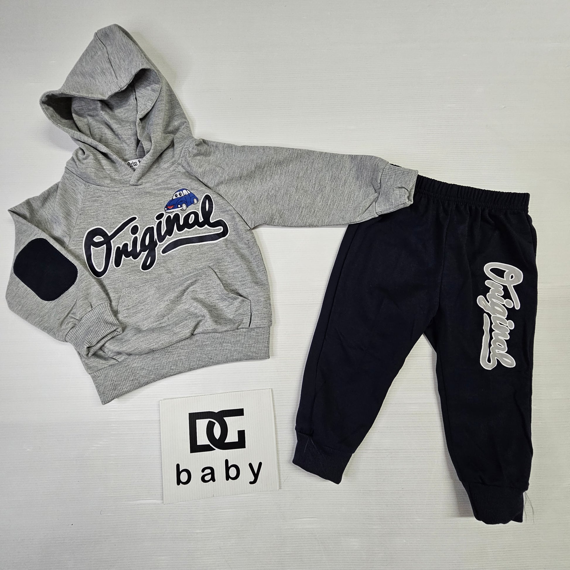 completo tuta neonato ORIGINAL composto da felpa con cappuccio e pantalone tutto in cotone